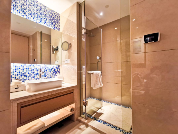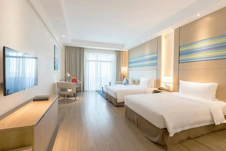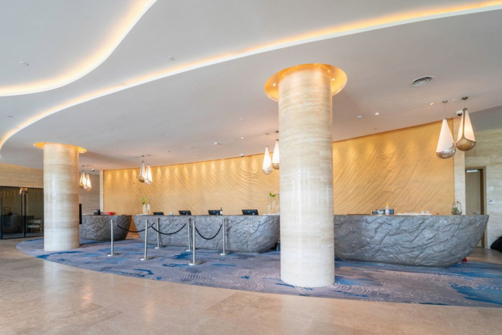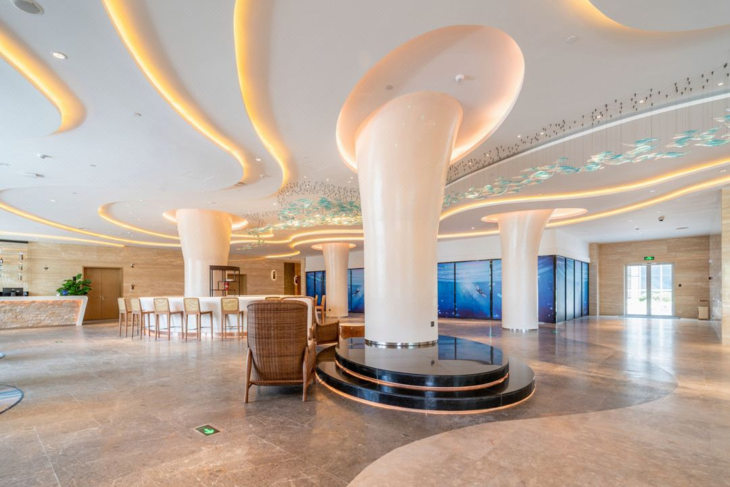 酒店于 2019 年开业,内部以海洋为主题精心设计。水滴造型的吊灯别致精巧,鱼群般的水晶吊饰灵动飘逸,蜿蜒的灯带营造梦幻氛围,海洋元素无处不在,瞬间将人带入浓郁的海洋风情之中。酒店拥有 670 间各类客房,分布于不同楼栋 ,为宾客提供多样选择。