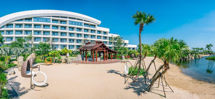 漫步过 1800 平方米的浪漫婚礼草坪,出门便是辽阔大海,毗邻南澳海滩。在这里,远离人潮喧嚣,尽情畅享独揽大海的惬意与欢乐~