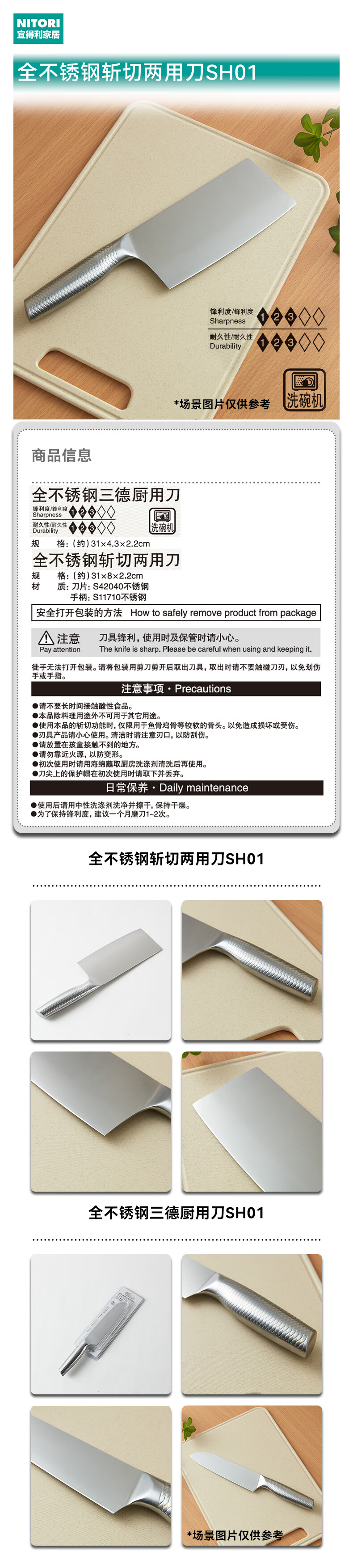 厨房菜刀多功能蔬果刀全不锈钢斩切两用刀三德刀SH01
