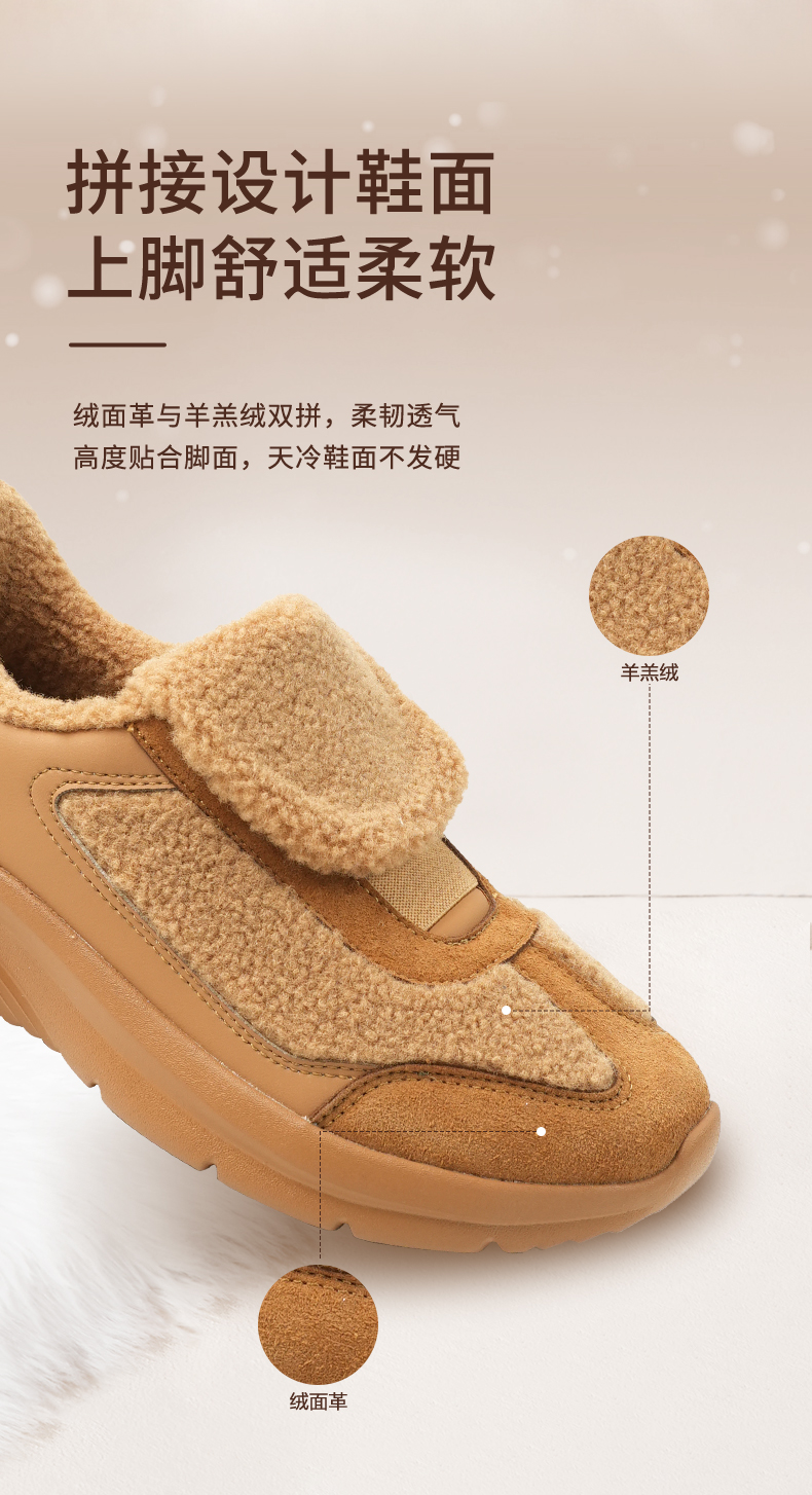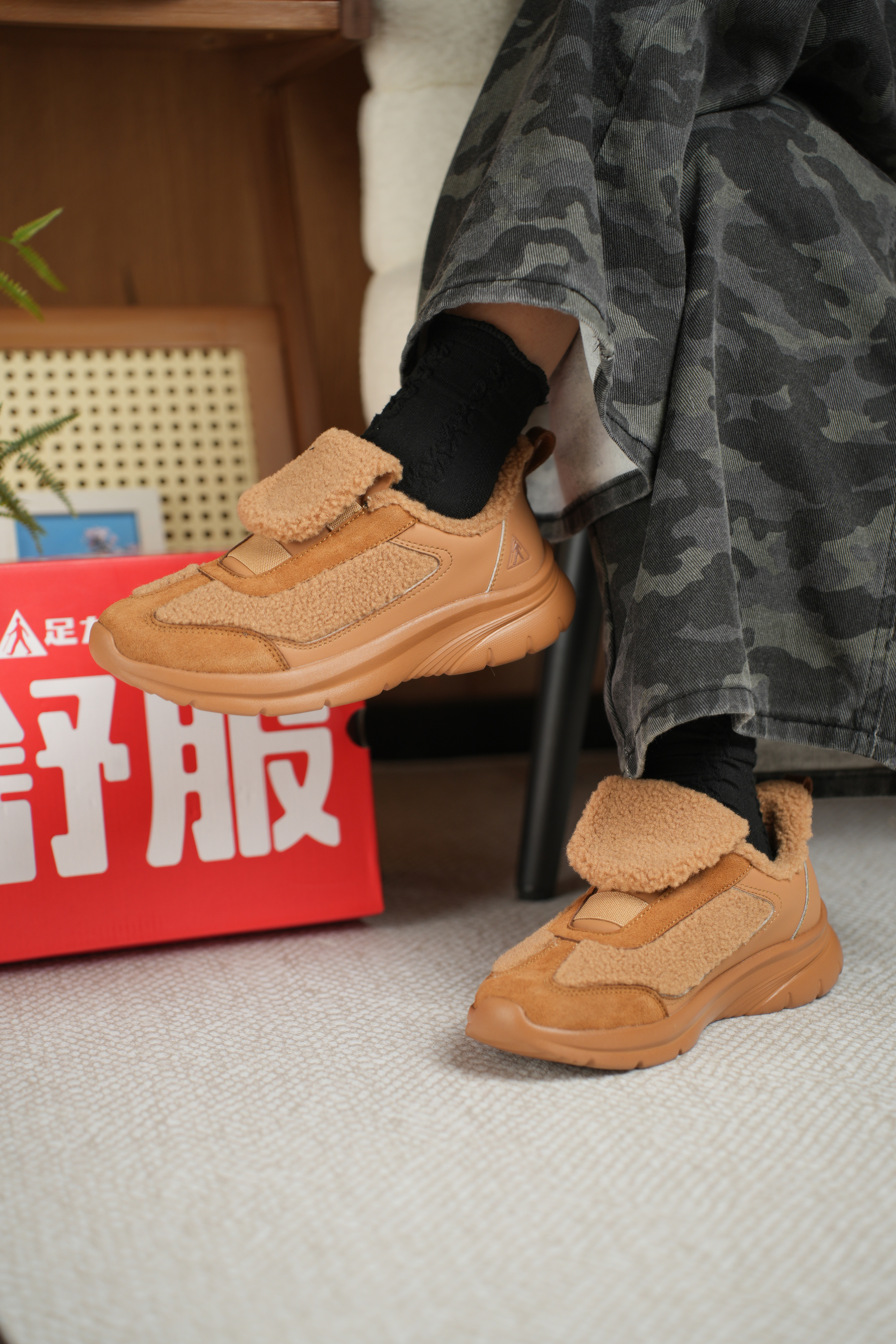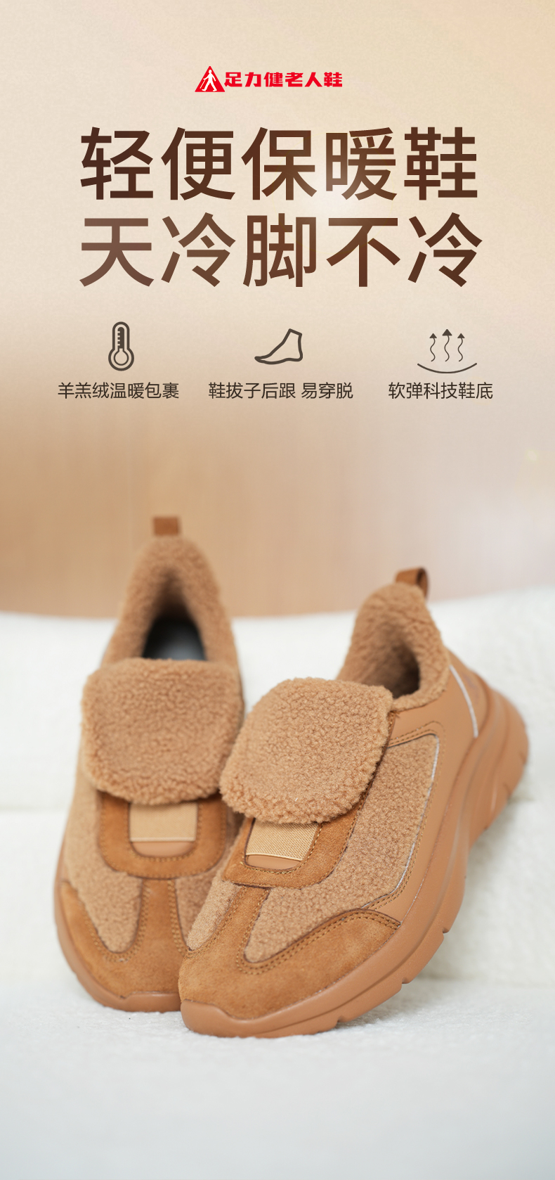 【轻便回弹】足力健 轻便保暖鞋25932006A 男款38-46码/女款35-41码 羊羔绒温暖包裹