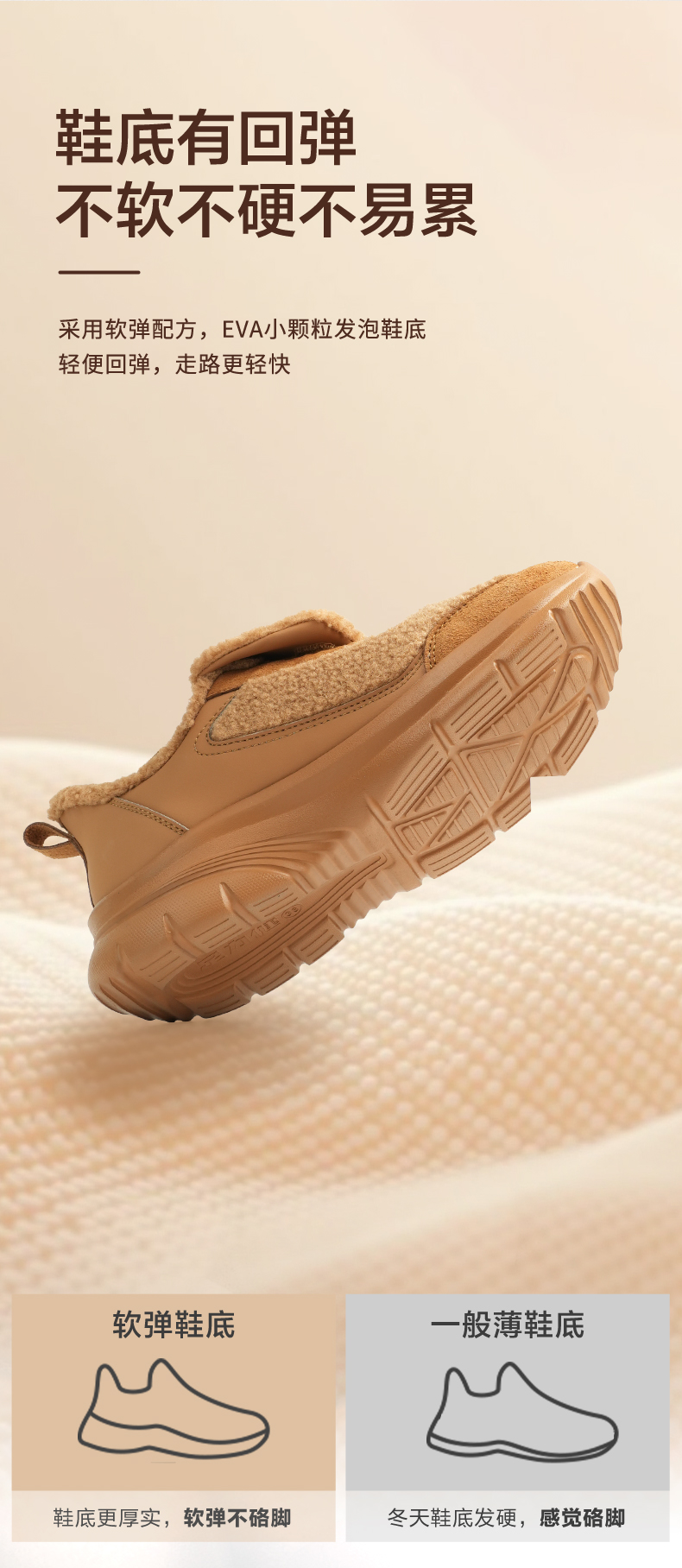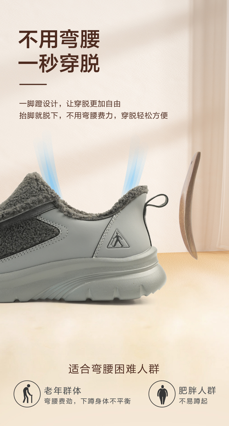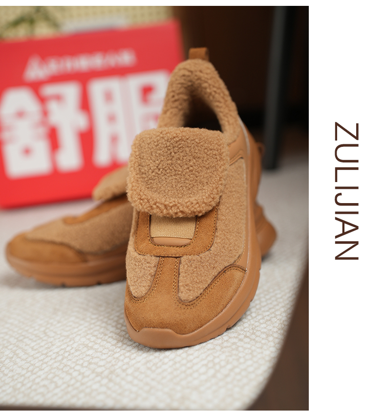【轻便回弹】足力健 轻便保暖鞋25932006A 男款38-46码/女款35-41码 羊羔绒温暖包裹