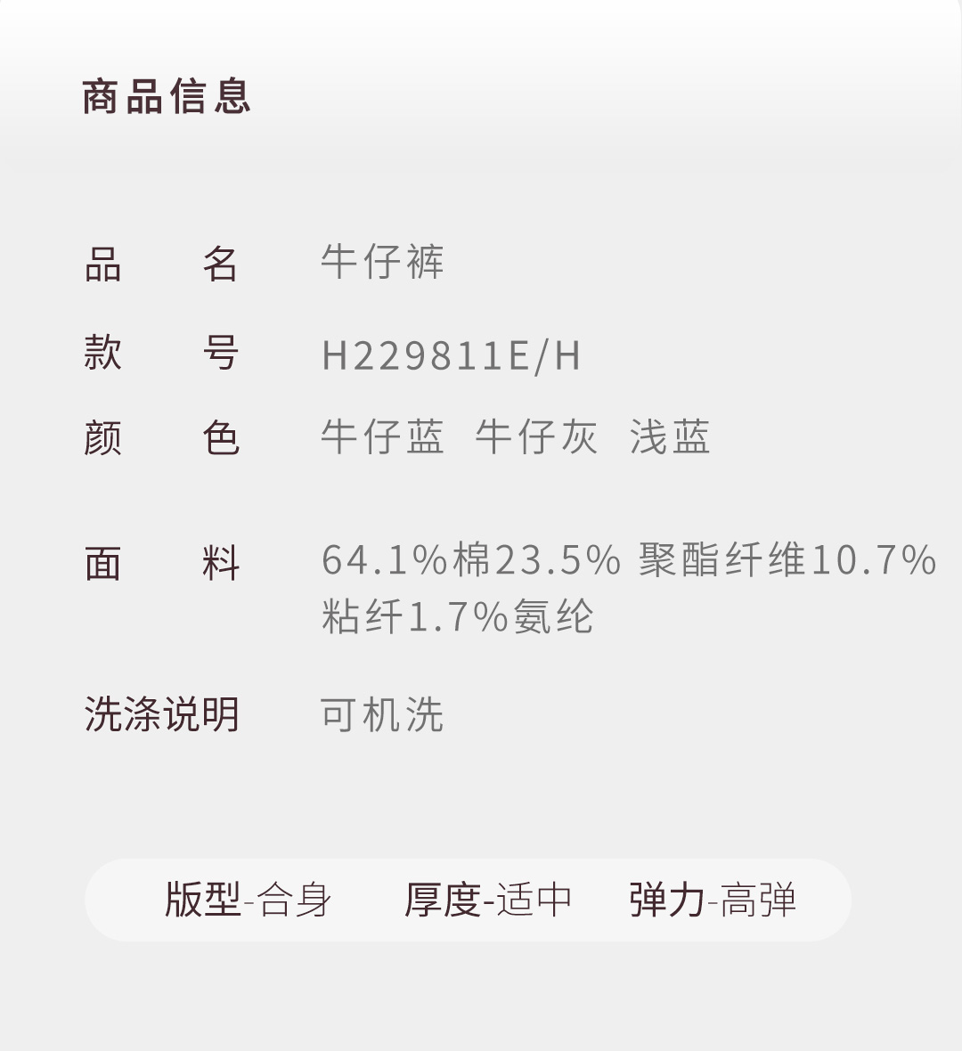 【轻旅系列】舒弹棉直筒牛仔长裤H229811