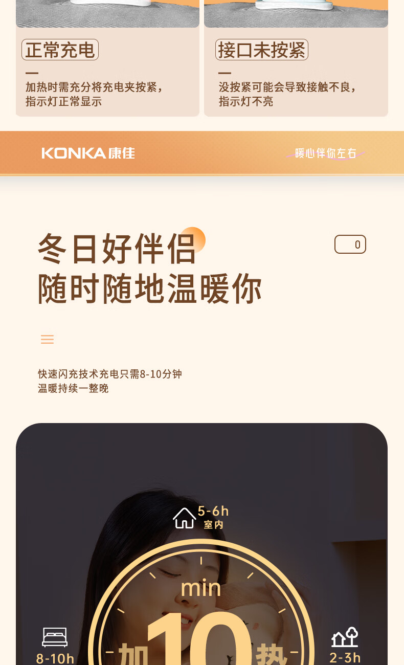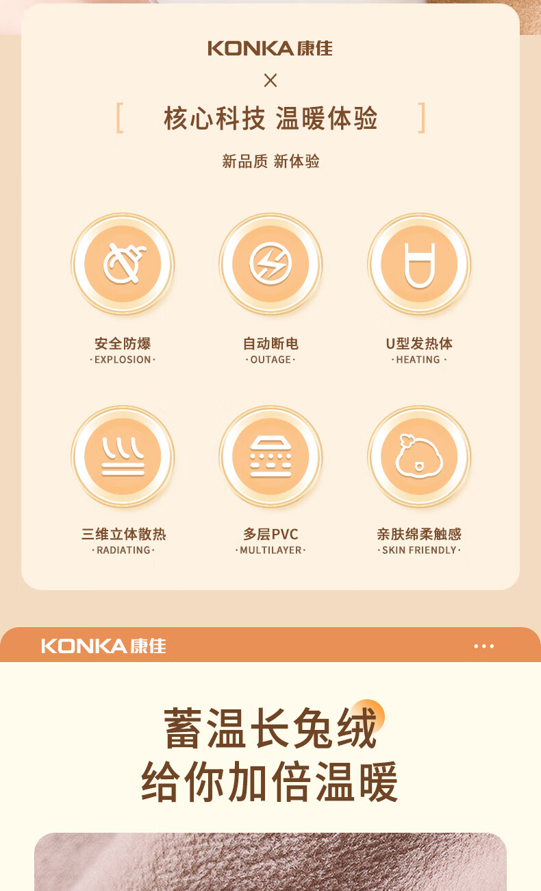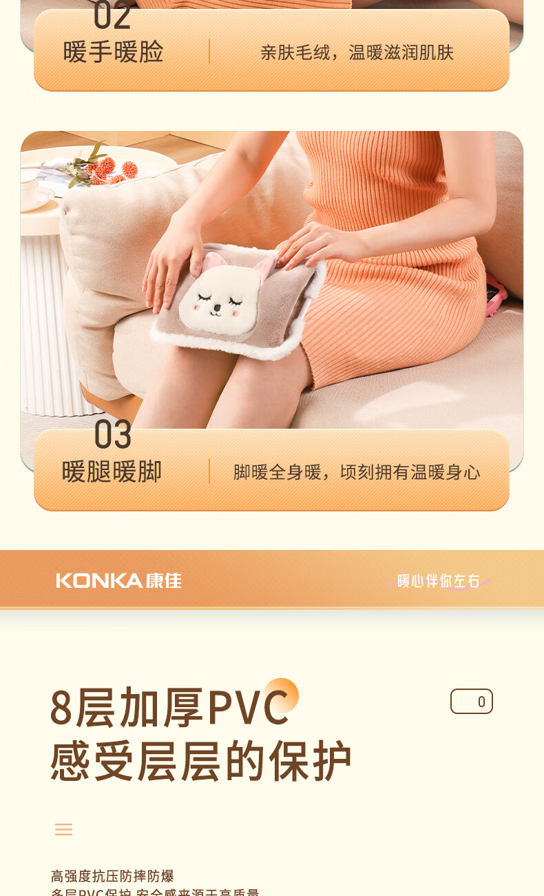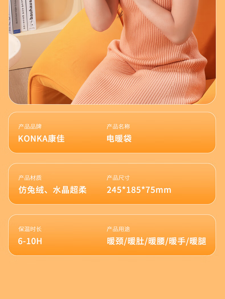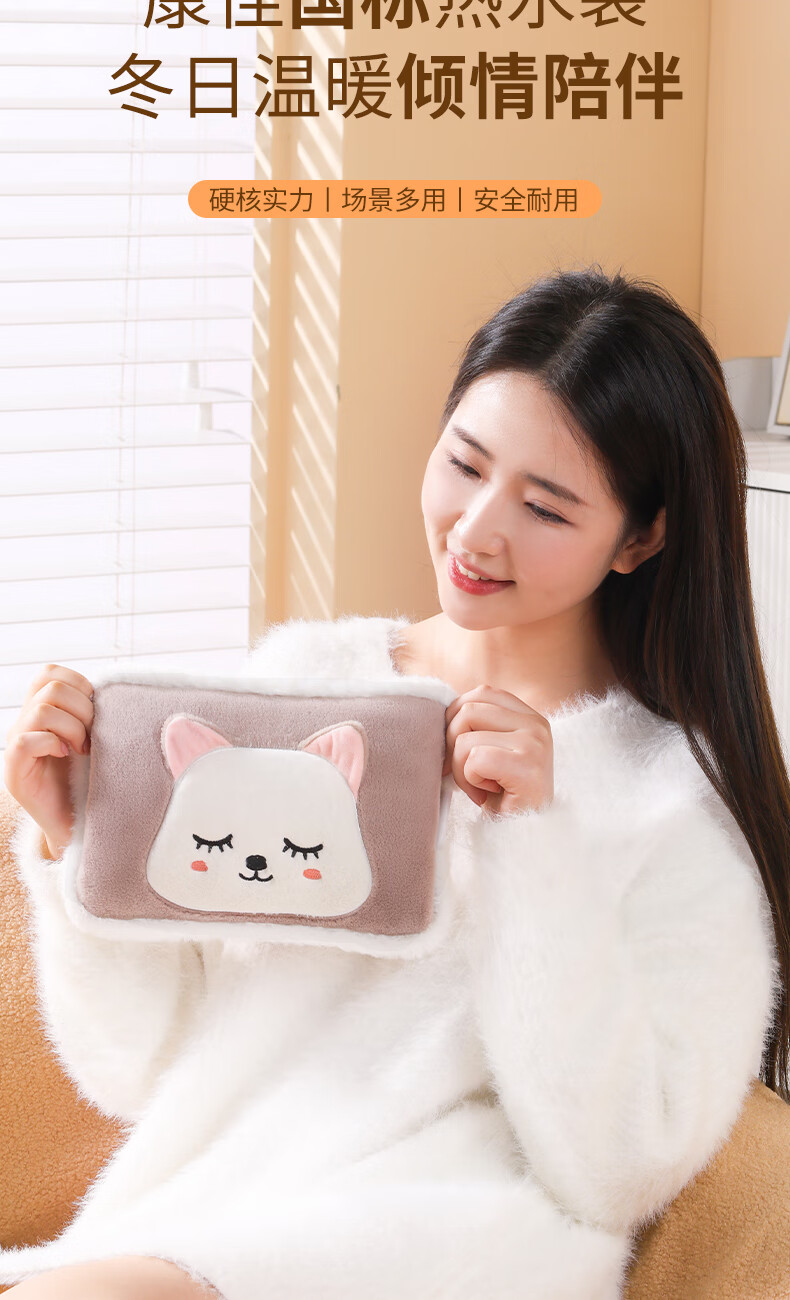 康佳 电热暖手袋暖手宝 KH2312 长绒双插连体款-撞色猫