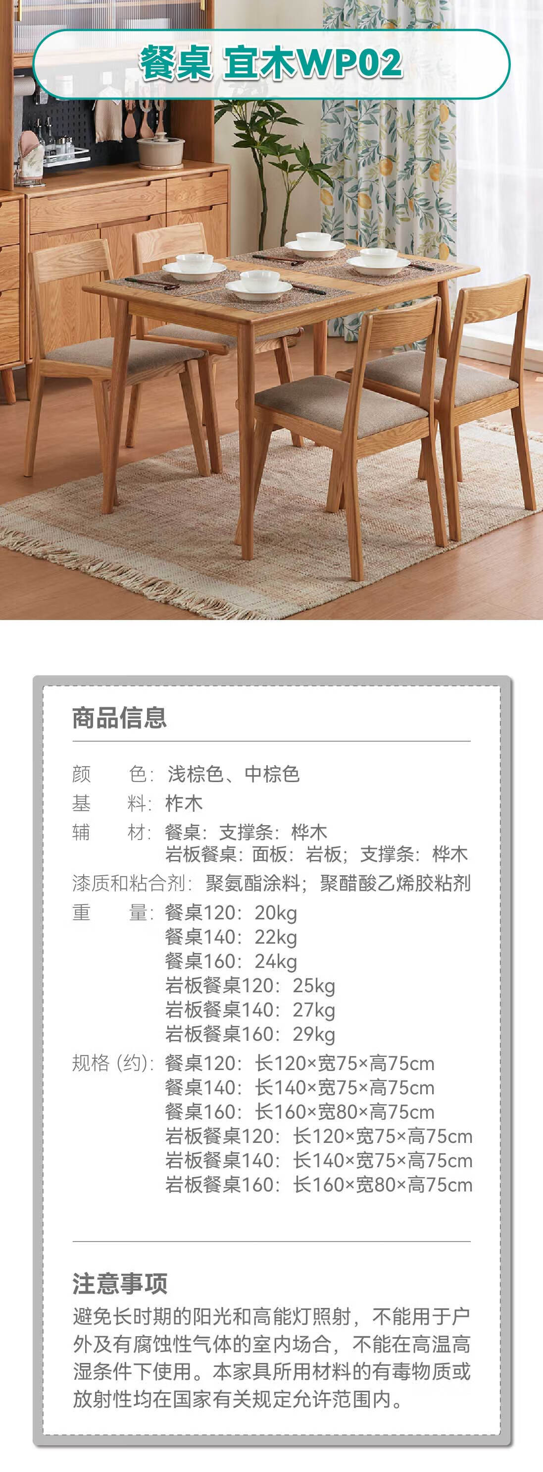 【家具】日式简约实木餐桌岩板餐桌 宜木WP02系列