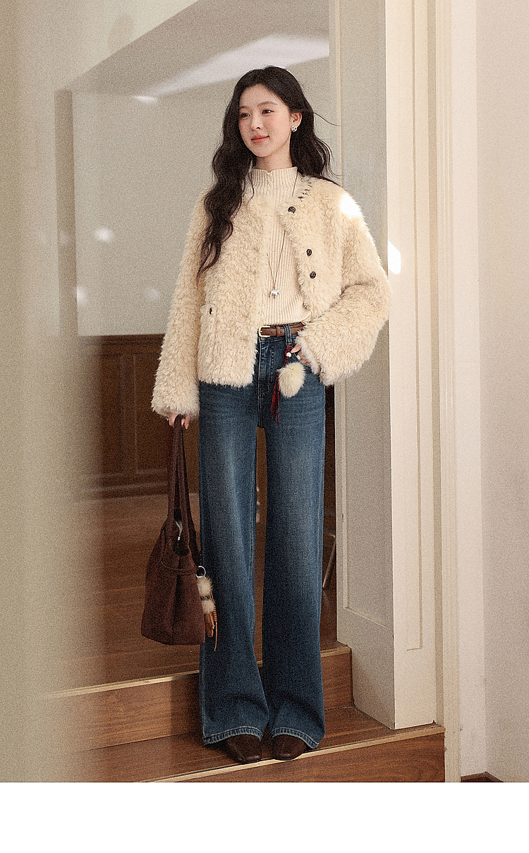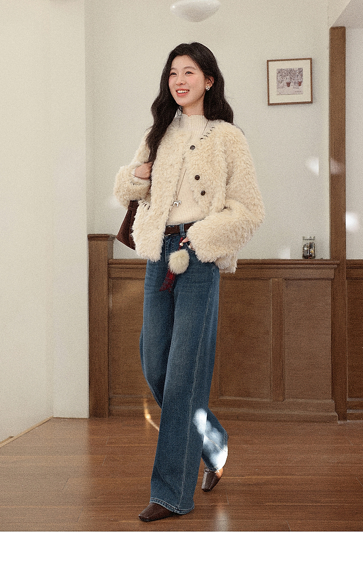 鹿向南【1220/20:00新品前1小时7折限量100件】蓝色加厚牛仔裤
