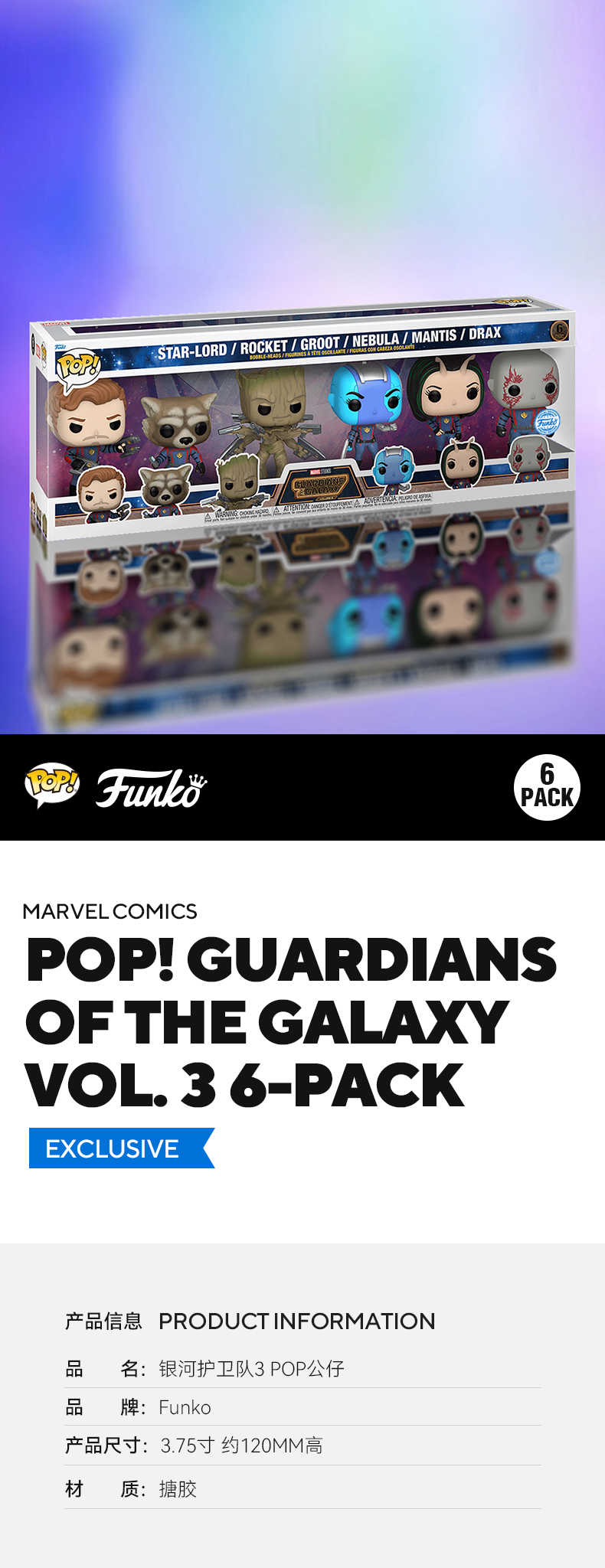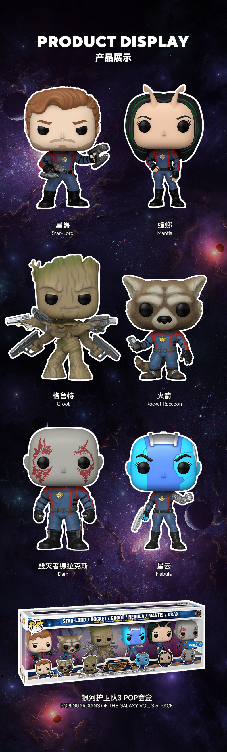 Funko POP! 美漫 银河护卫队3星爵螳螂女星云格鲁特火箭公仔手办摆件6个装套盒 69375