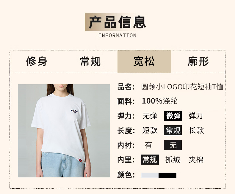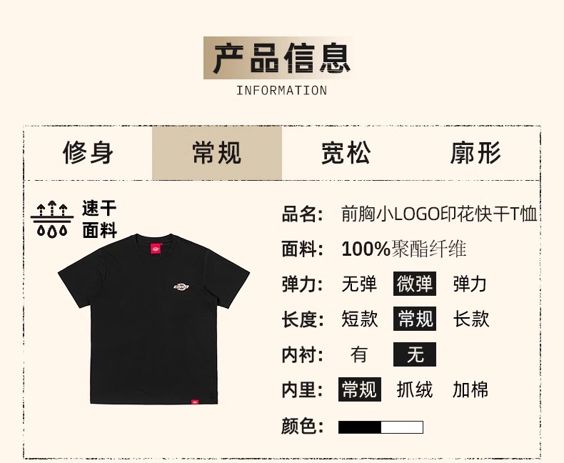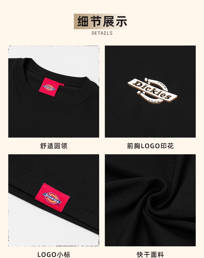 Dickies圆领小LOGO印花速干短袖T恤 简约百搭短袖 男女同款