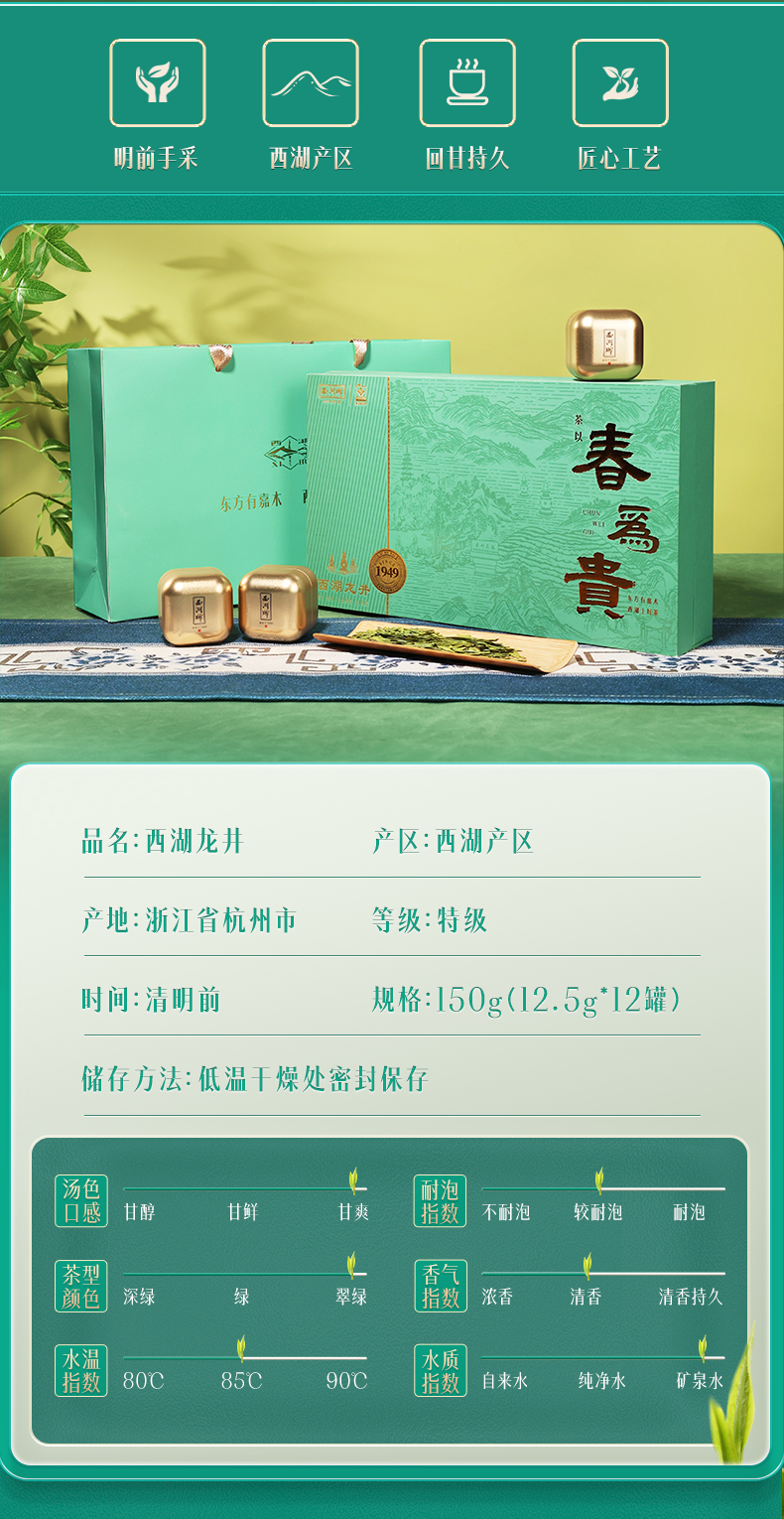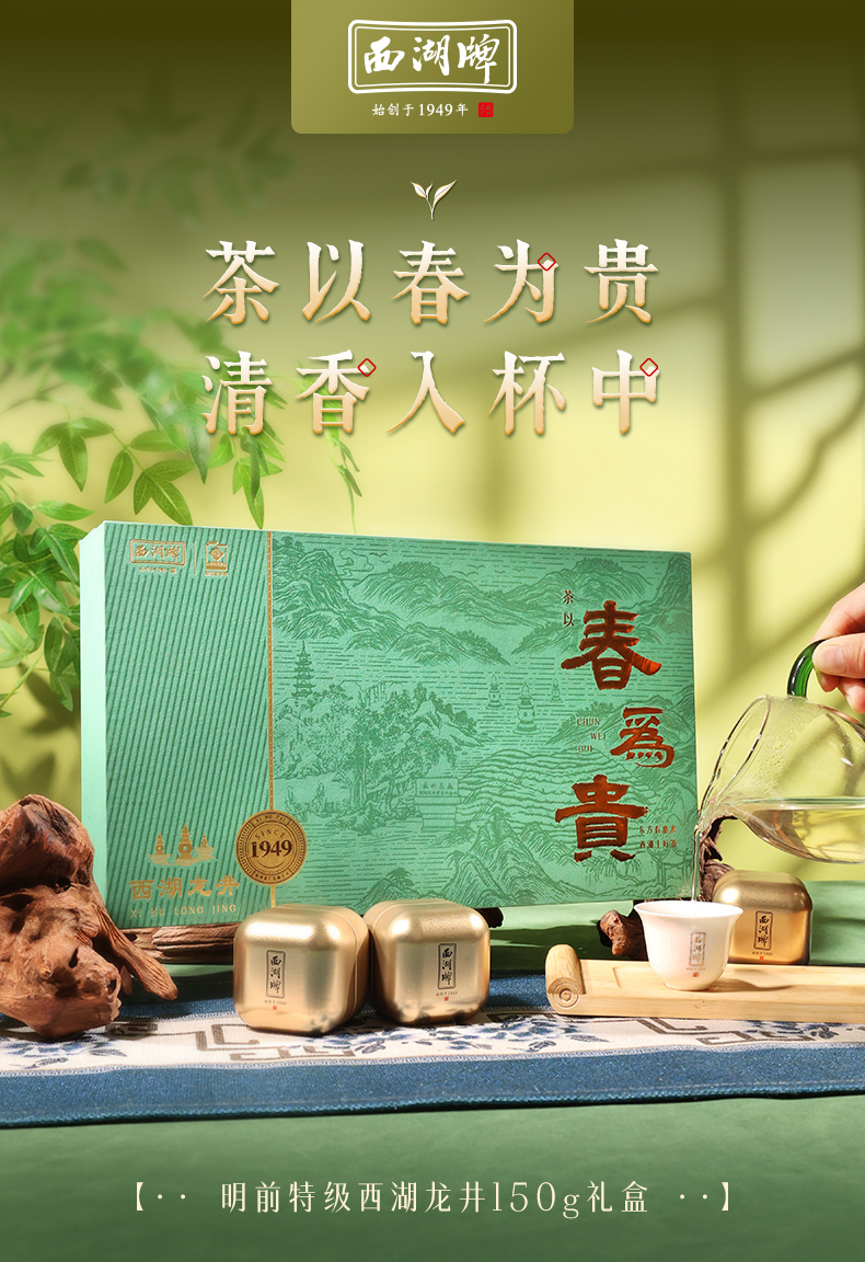 【西湖牌西湖产区龙井】2026新茶 西湖牌《春为贵》特级龙井150g礼盒 西湖产区