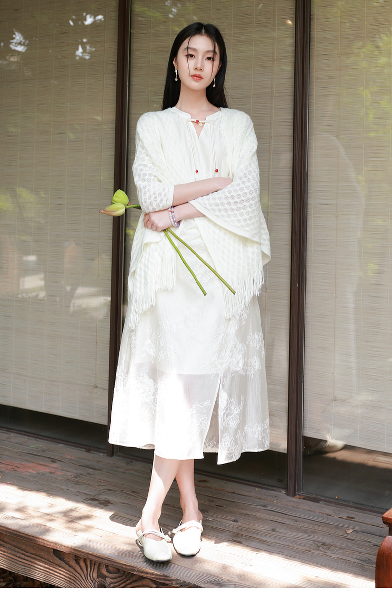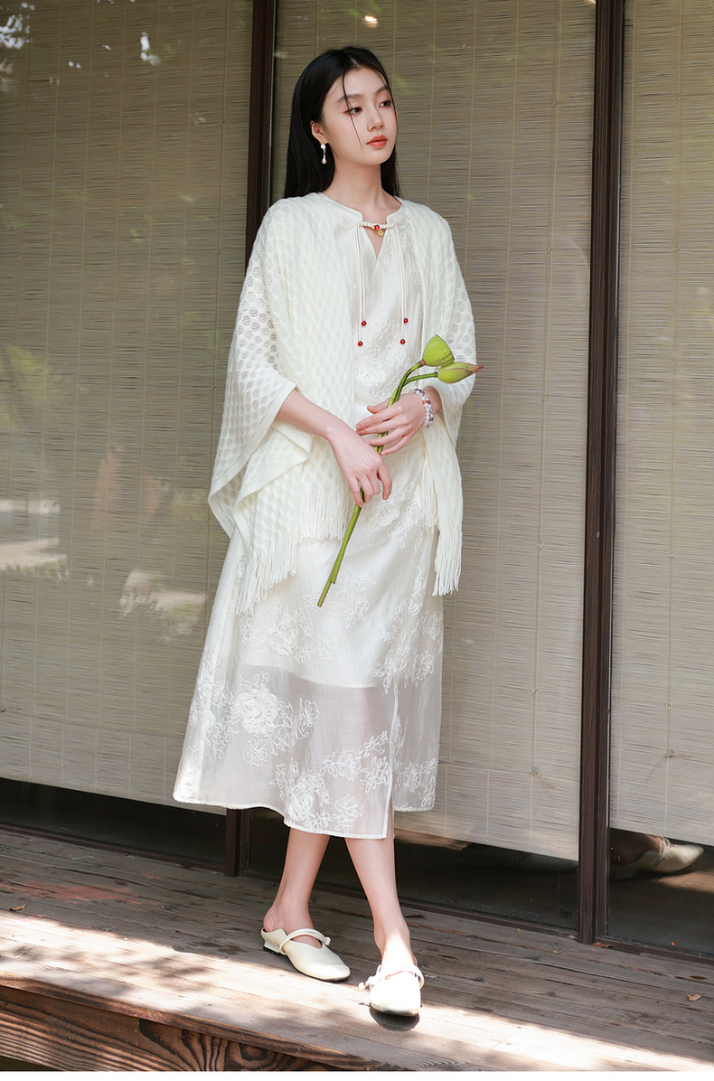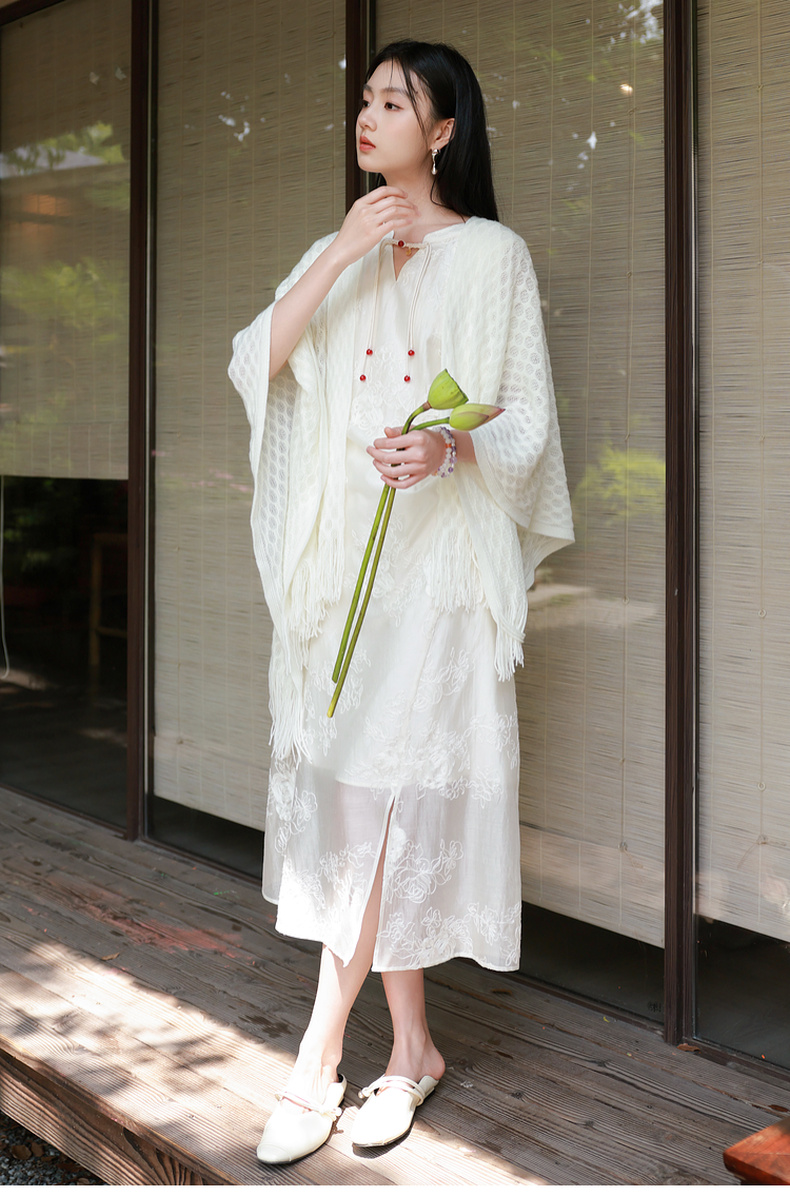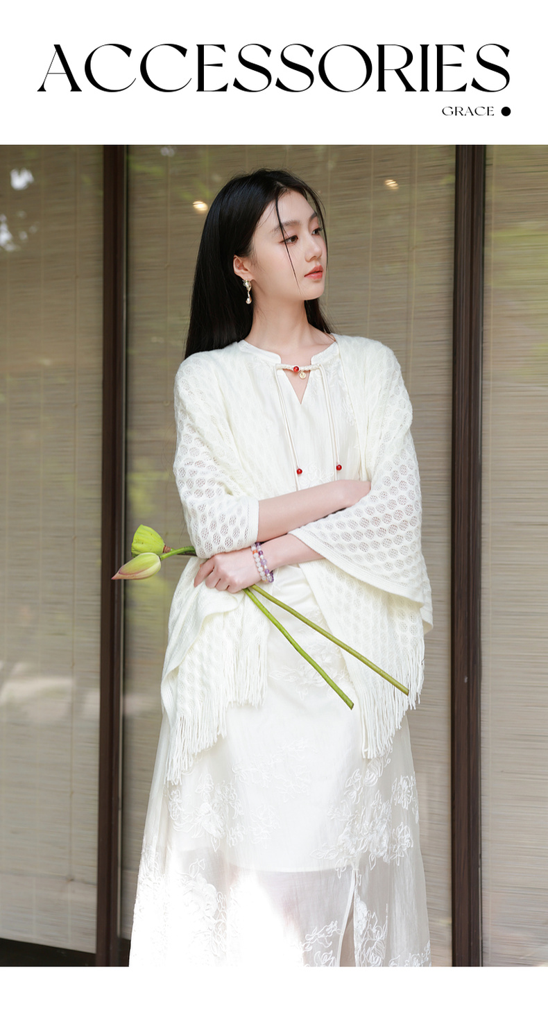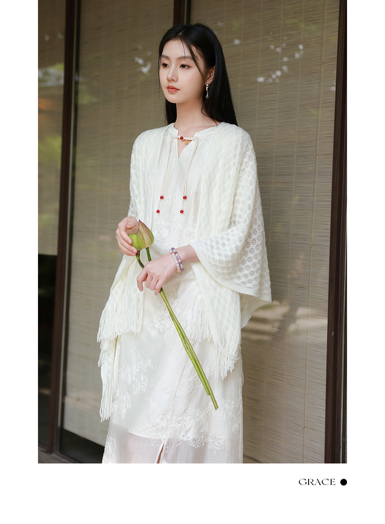 三彩2025新款【国风系列】外搭镂空针织披肩流苏复古优雅约会出游