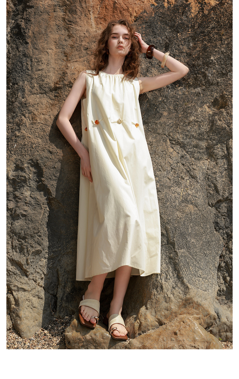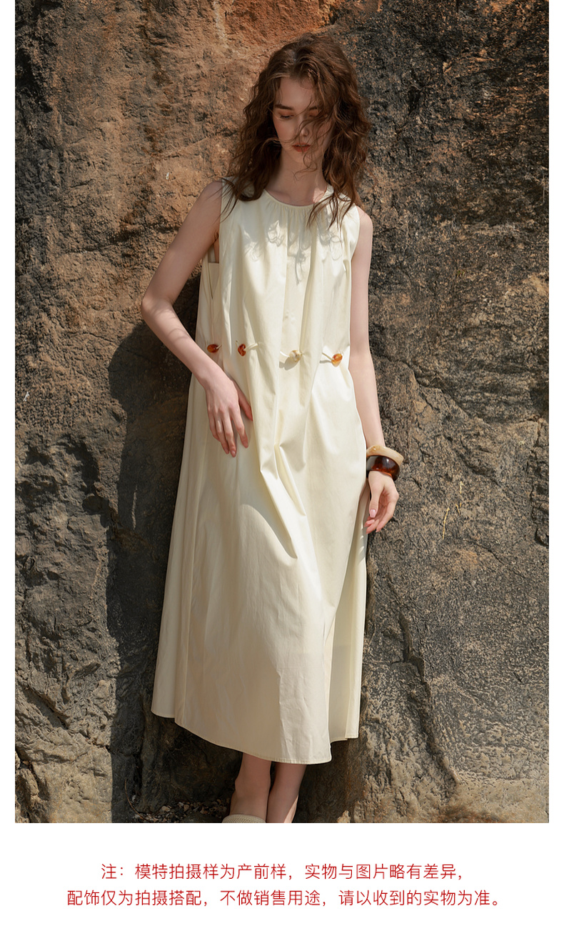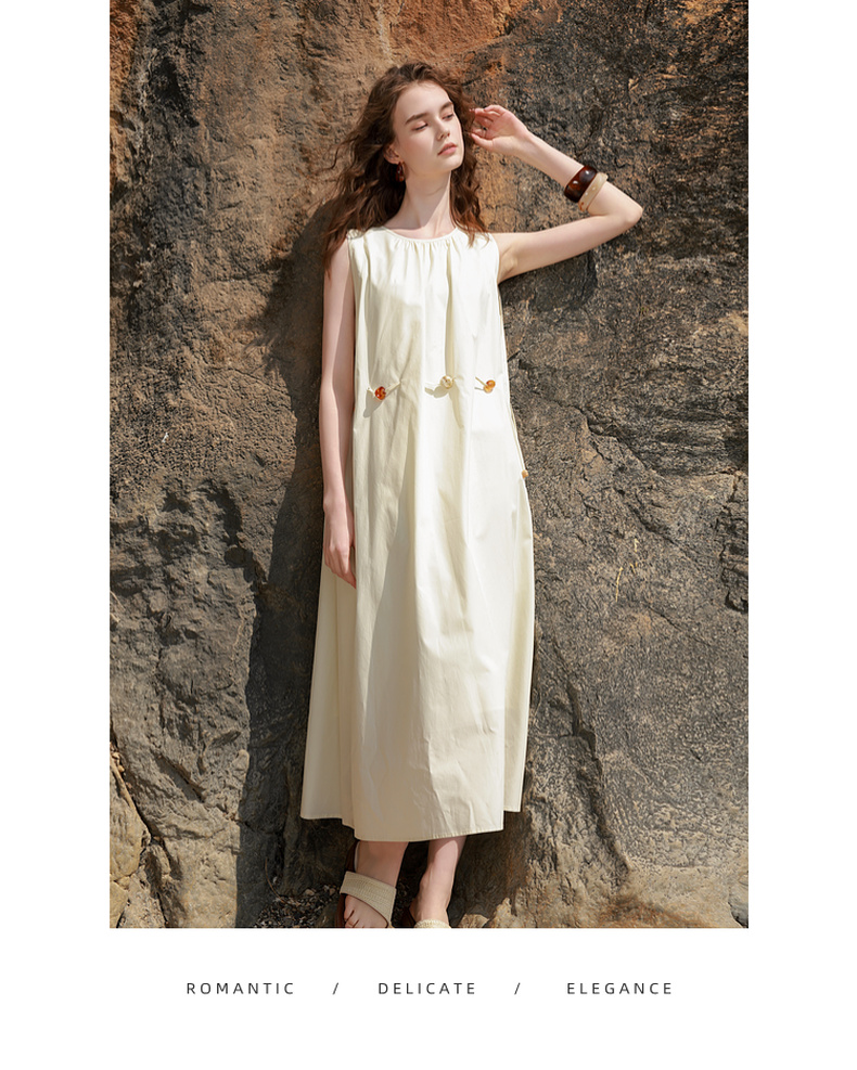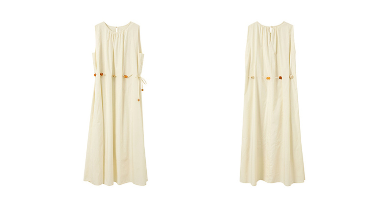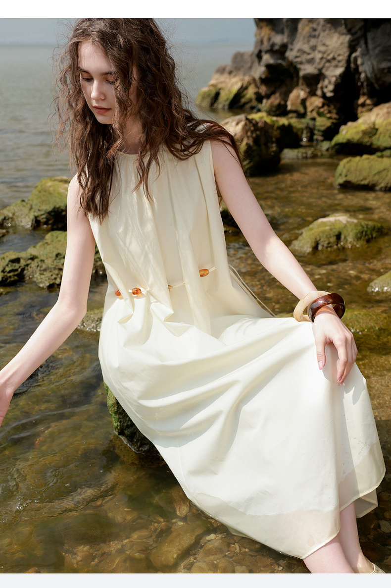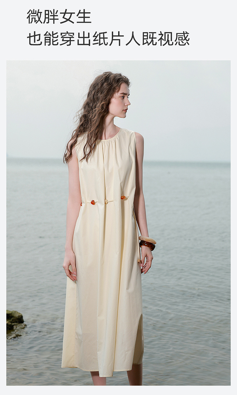 三彩2025夏季新款法式背心裙莱赛尔连衣裙圆领串珠腰绳长裙M