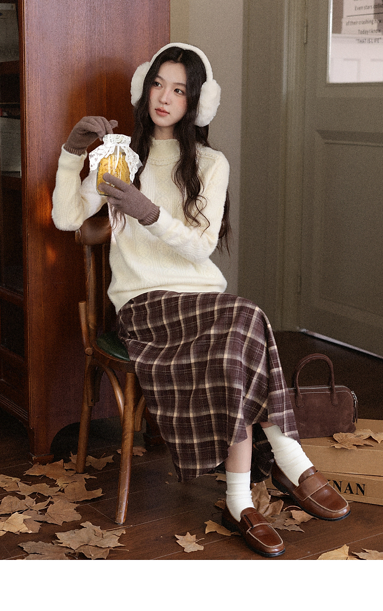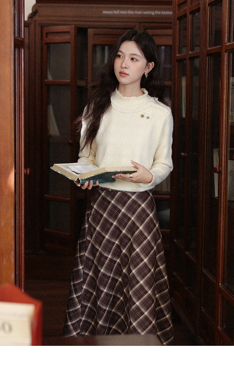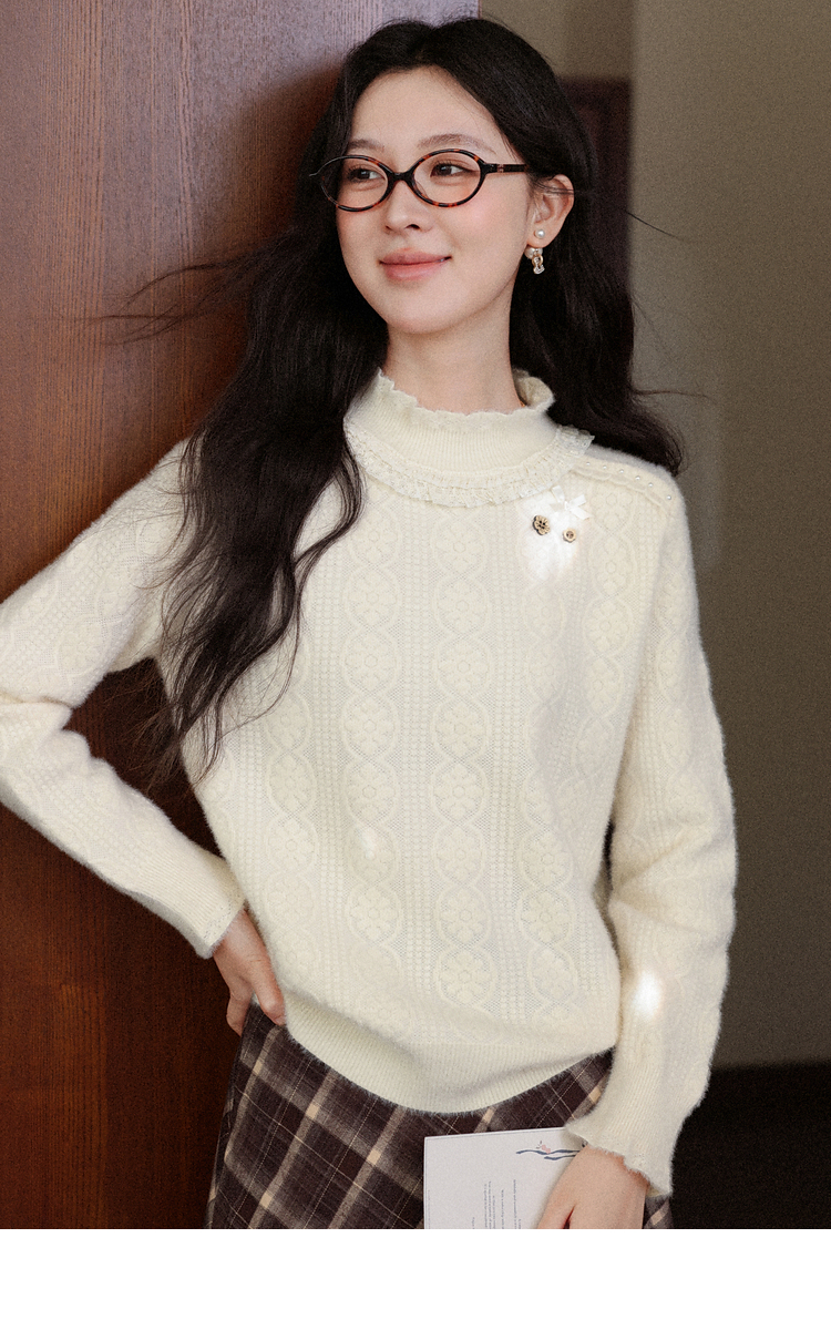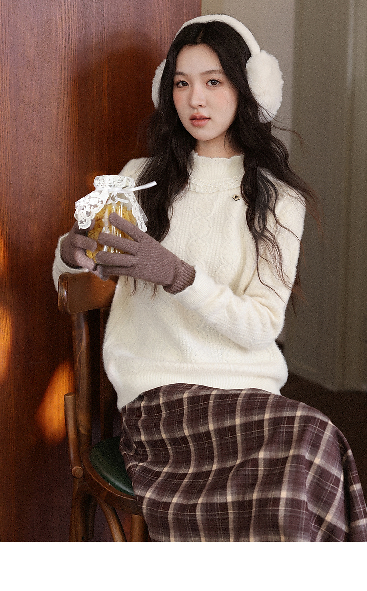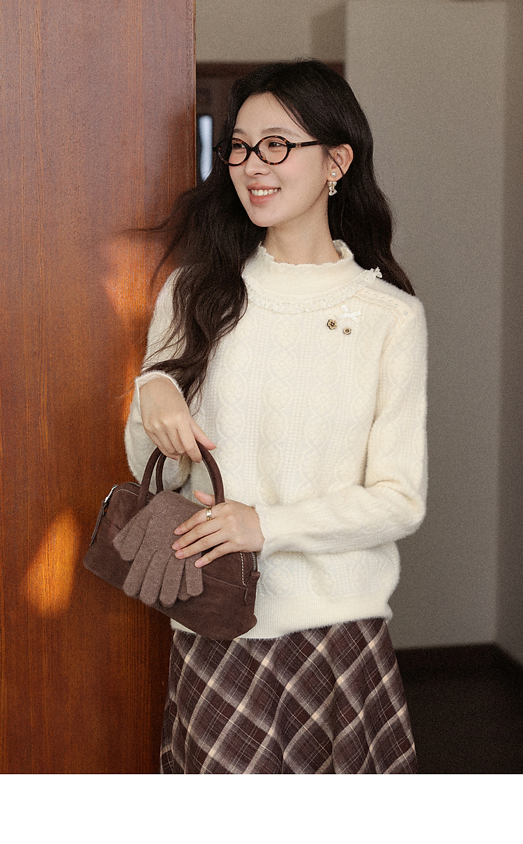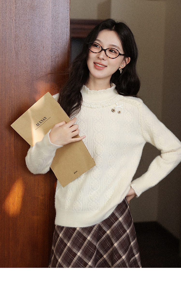 鹿向南「腔调雍容」半高领杏色毛衣秋季新款休闲女款长袖打底上衣