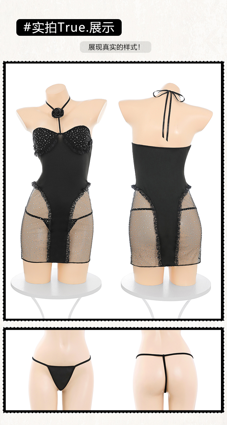 【情趣内衣】霏慕 午夜星芒烫钻透臀连衣裙ZY187