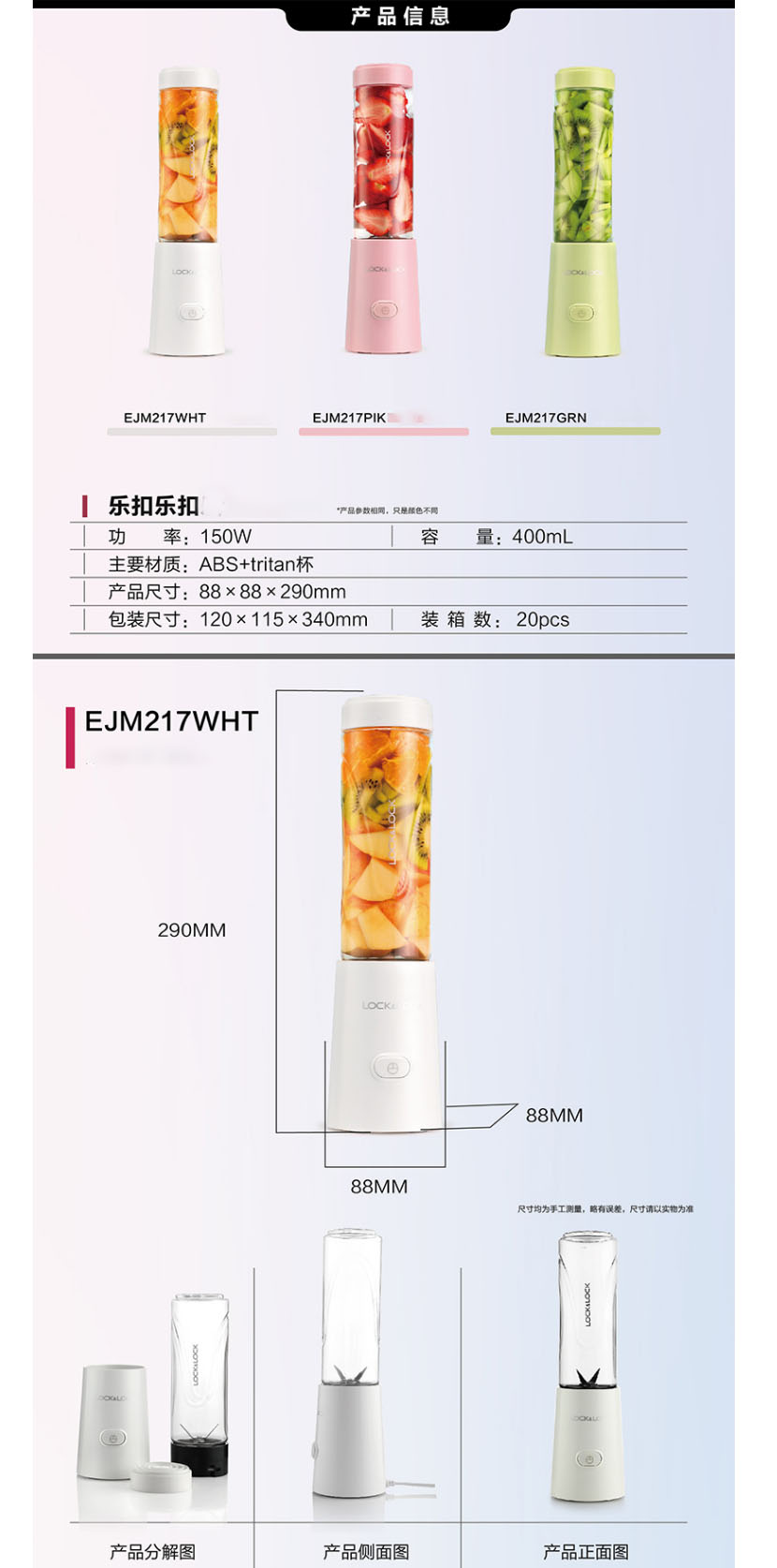 乐扣乐扣(LOCK&LOCK)EJM217WHT迷你果汁机果汁杯 白色400ml