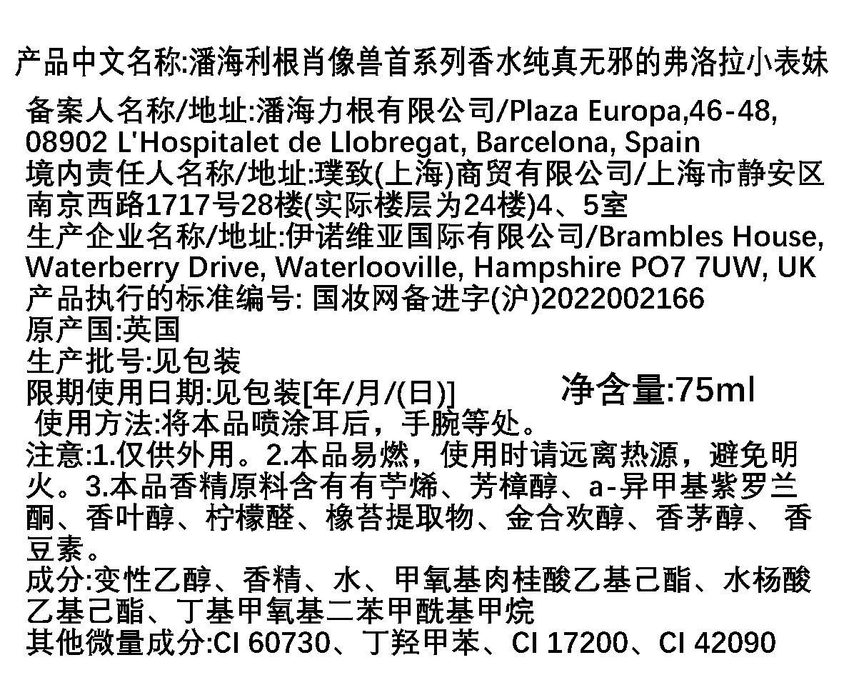 Penhaligon's潘海利根兽首系列 纯真无邪的弗洛拉小表妹/知更鸟/麻雀香水(绝版/停产/收藏级)