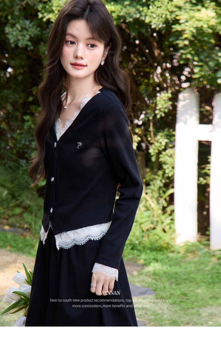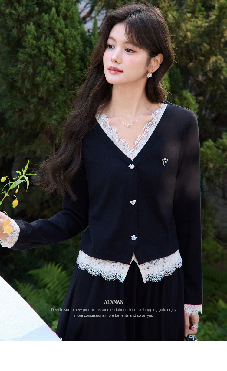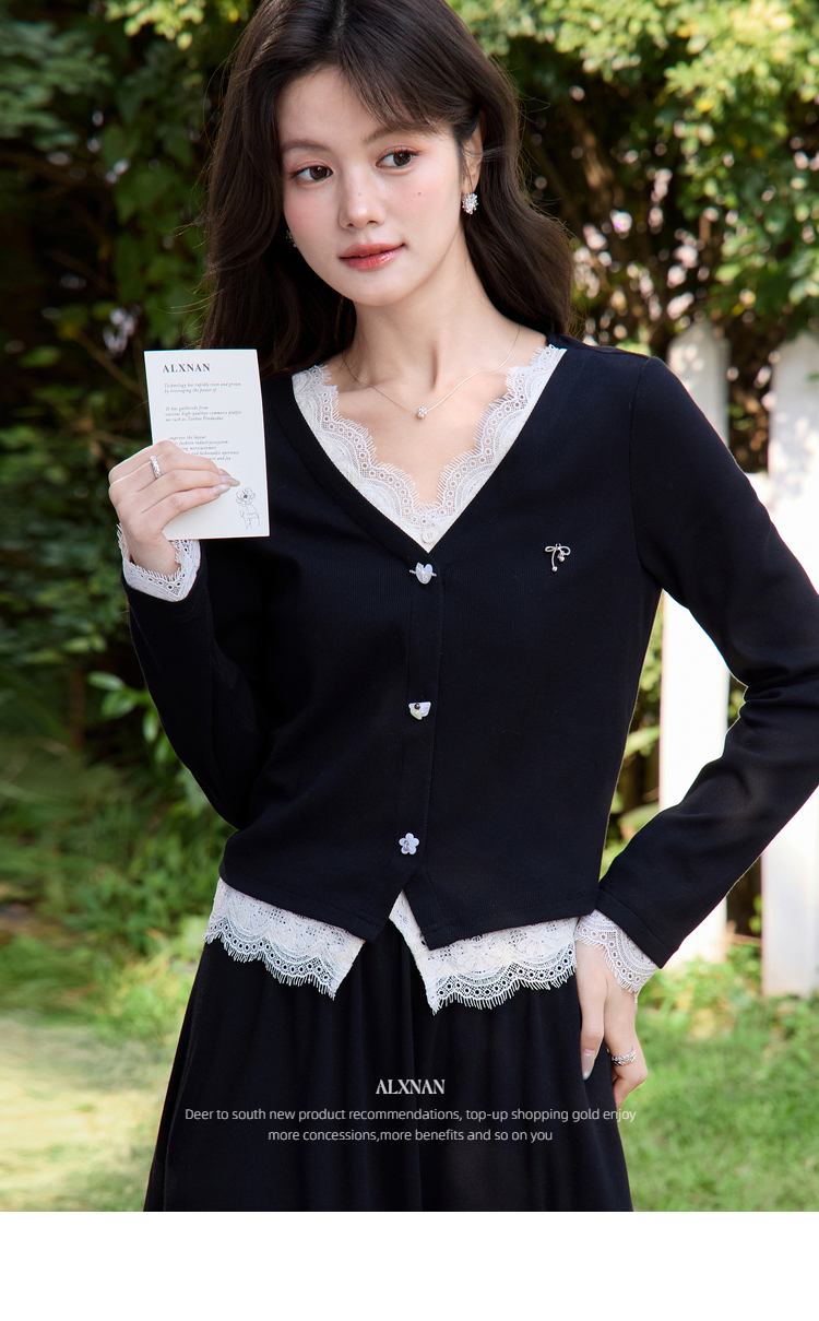 鹿向南「旷野风眠」黑色蕾丝拼接设计感长袖T恤女春季巨好看上衣
