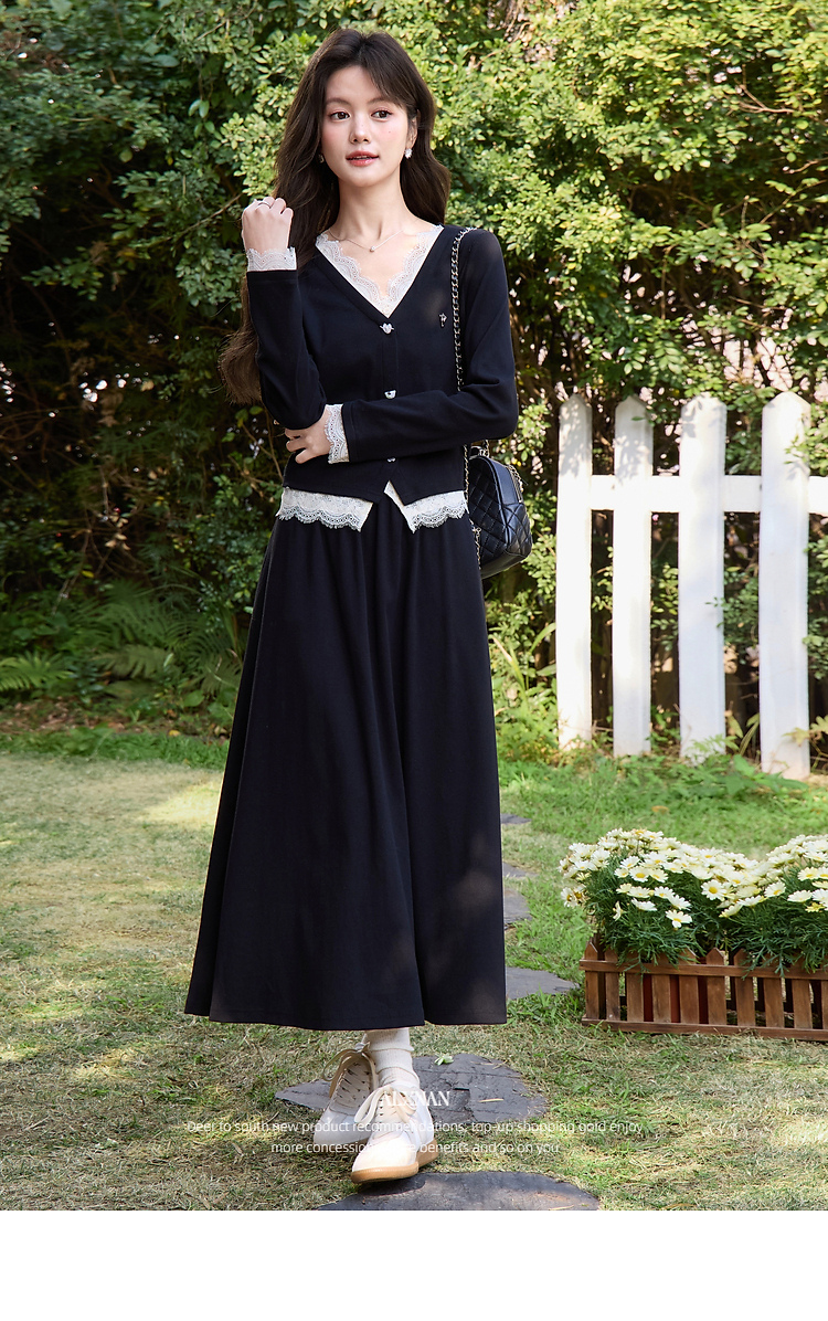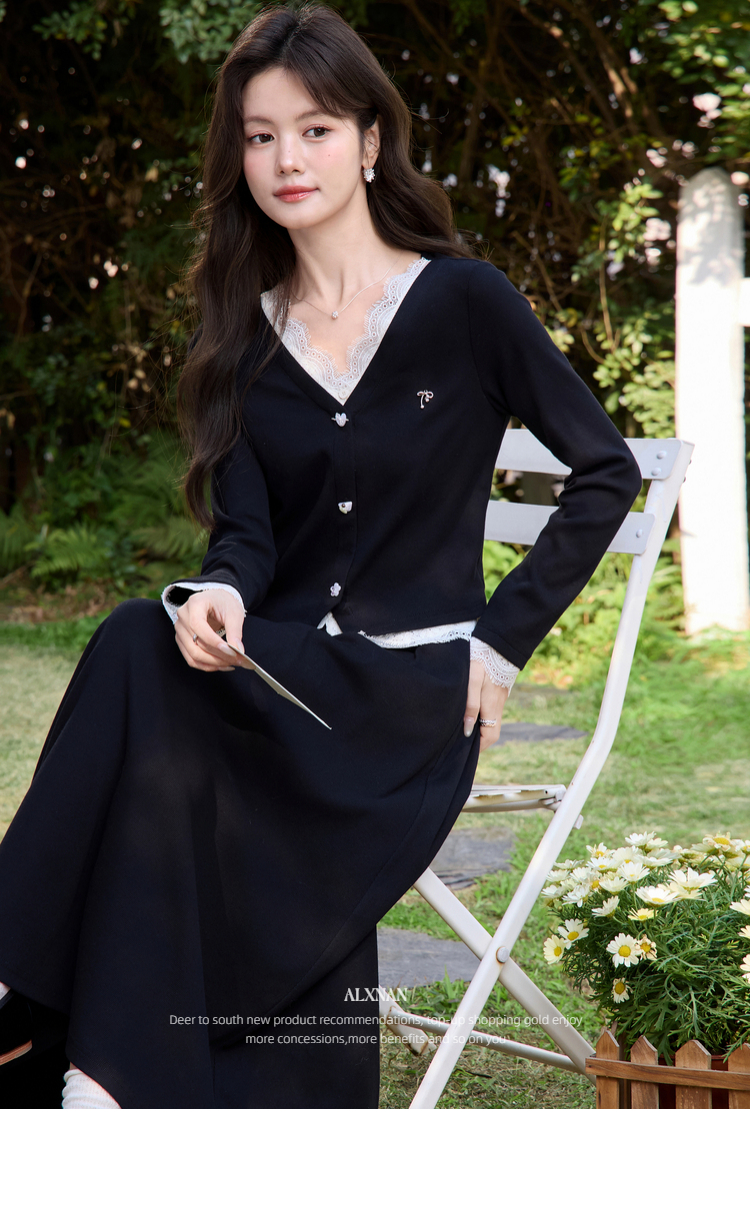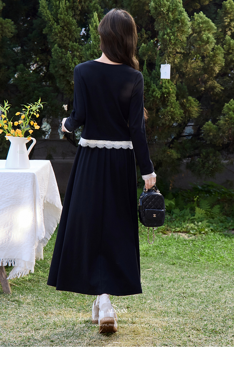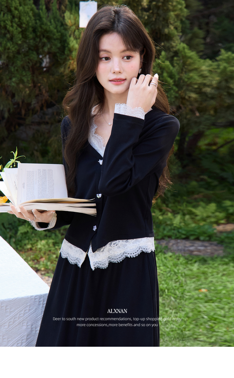 鹿向南「旷野风眠」黑色蕾丝拼接设计感长袖T恤女春季巨好看上衣
