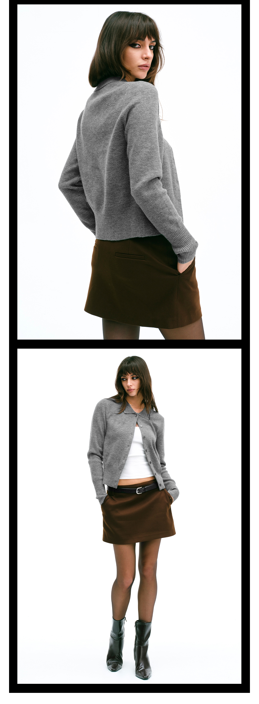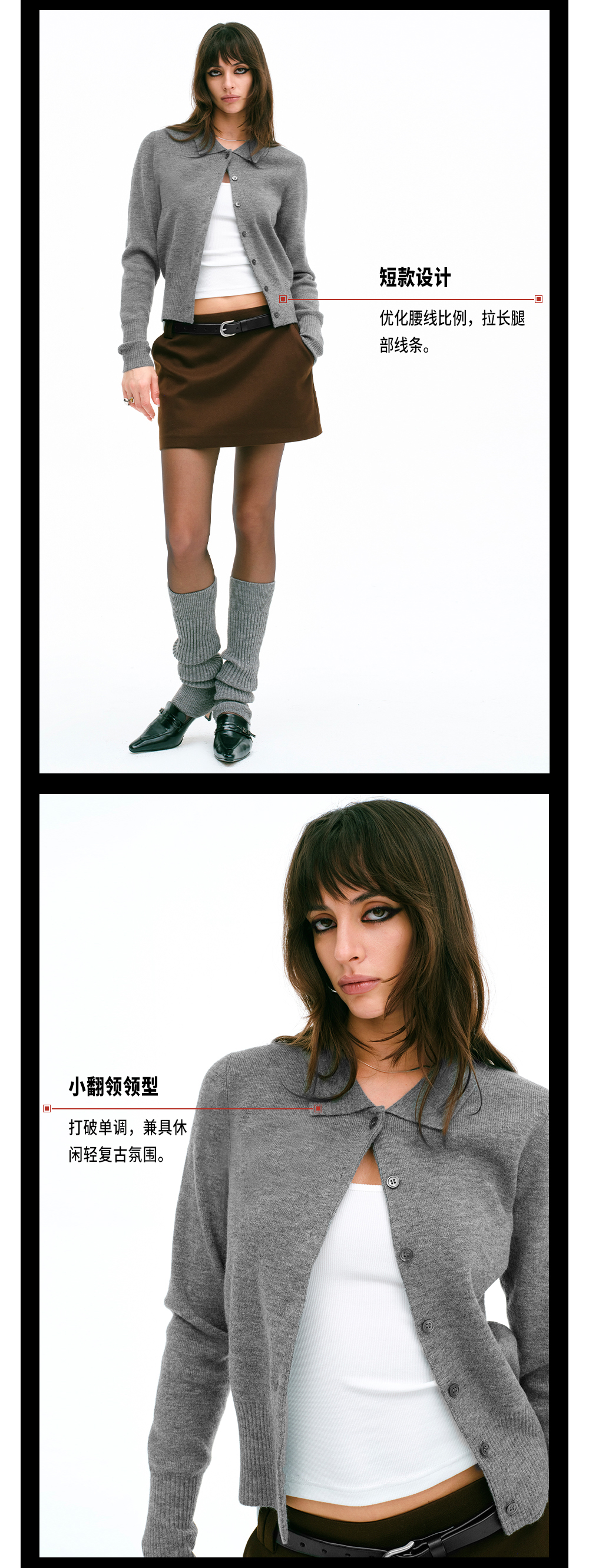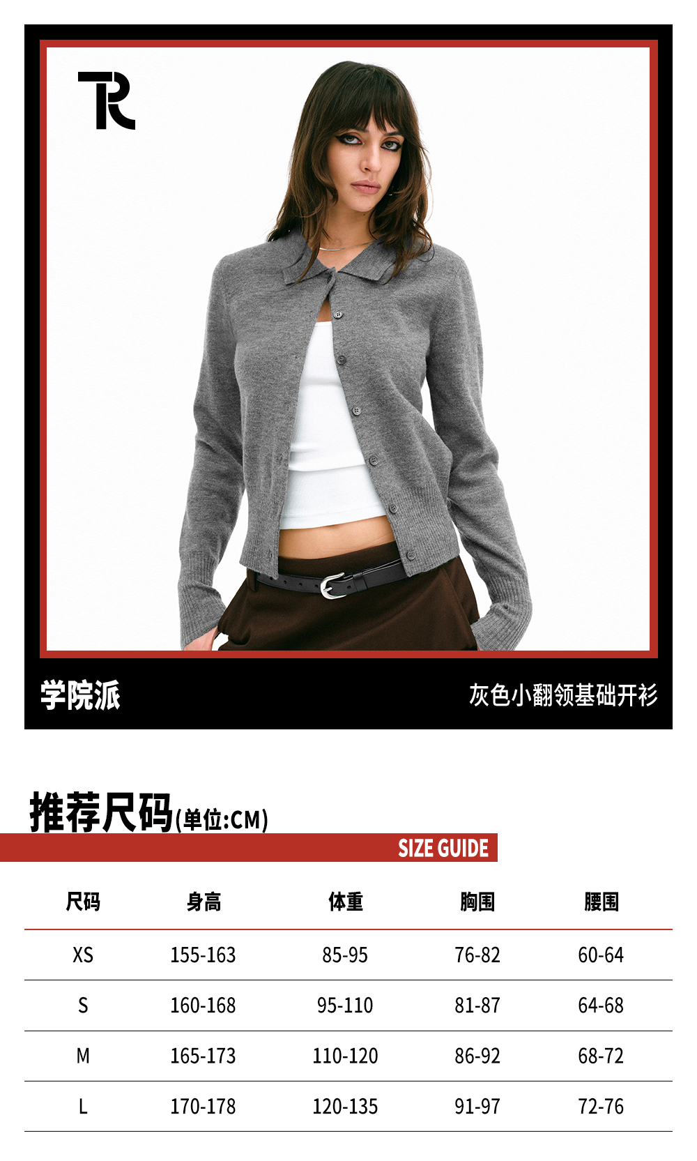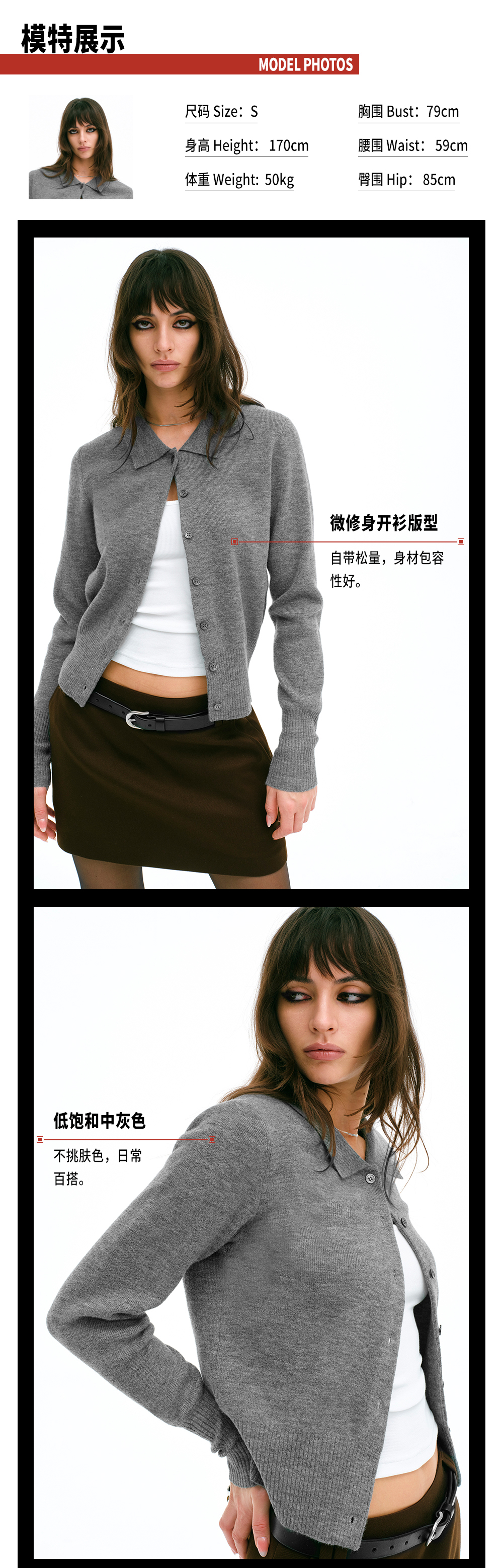 TR她热 学院派 灰色针织羊毛复古百搭基础款翻领开衫上衣