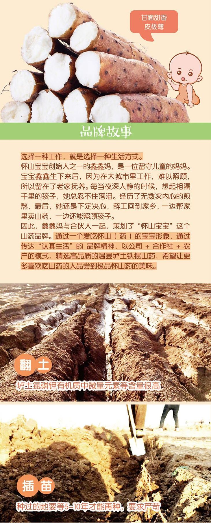 我们有严格的挑选规范,在包装时也会为每根山药都套上防撞网套,减少运输过程中的断损。但由于山药的长度比较长,快递路上路途遥远,可能会出现摔断现象,属于正常范围,但不影响食用。如果非常建议者慎拍。 【产品基础信息】 【产品名称】怀山宝宝*温县垆土地铁棍山药 【销售规格】4.5斤/箱 1、净重4.5斤家庭装普A -15根左右,单根约35cm 2、净重4.5斤家庭装普B -12根左右,单根约45cm 3、净重4.5斤礼盒粉宝宝-12根左右,单根约45cm 4、净重4.5斤礼盒蓝宝宝-10根左右,单根约55cm 【生产日期】最新日期 【保质期】20天 【产地及发货地】河南焦作温县 【发货快递】顺丰,京东 【加运费地区】黑龙江,内蒙,海南,辽宁,吉林,云南,青海➕11元 【不发货地区】新疆、西藏、港澳台,其他地区包邮 【发货时间】48小时 【是否可以开票】:开普通农业票 【包装标准】:礼盒装➕家庭装 【售后标准】 1、不支持7天无理由退换货; 2、收到货后如有错发,少发或质量问题请在签收24小时内拍摄产品图+快递面单+包装图+购买记录截图联系客服进行售后(缺少以上内容的将无法进行售后,超时不售后。) 3、山药本身形状又长又脆,在快递过程中难免出现折断,根据以往经验,客户遇到这种情况都可以理解,如果折断过多,拍照和单号给我们酌情处理。 4、外包装快递运输过程中难免会有些磨损,属于正常现象,不例入售后范围。 5、因个人行为发生拒收,丢件,拦截等原因需扣除发出运费及承担相应的来回运费。