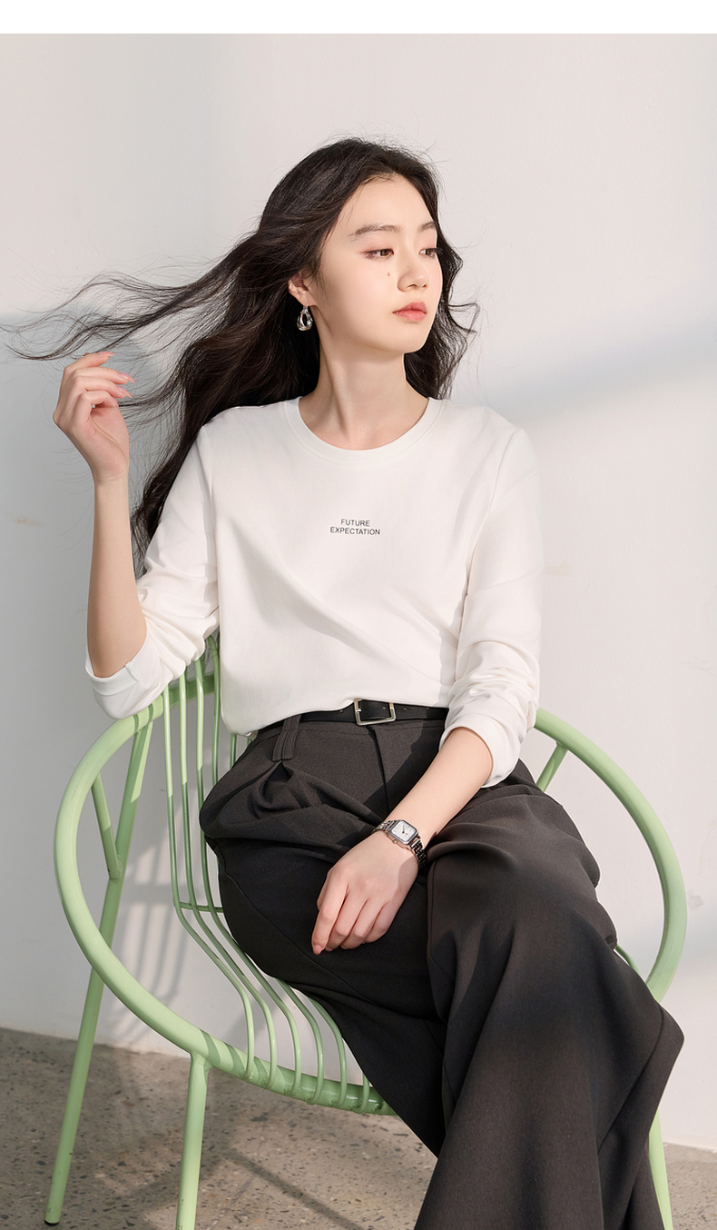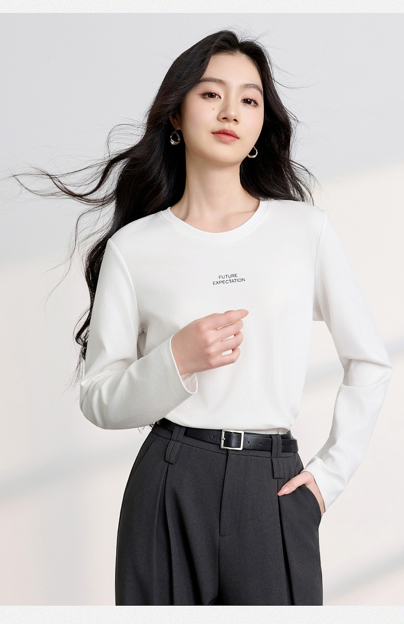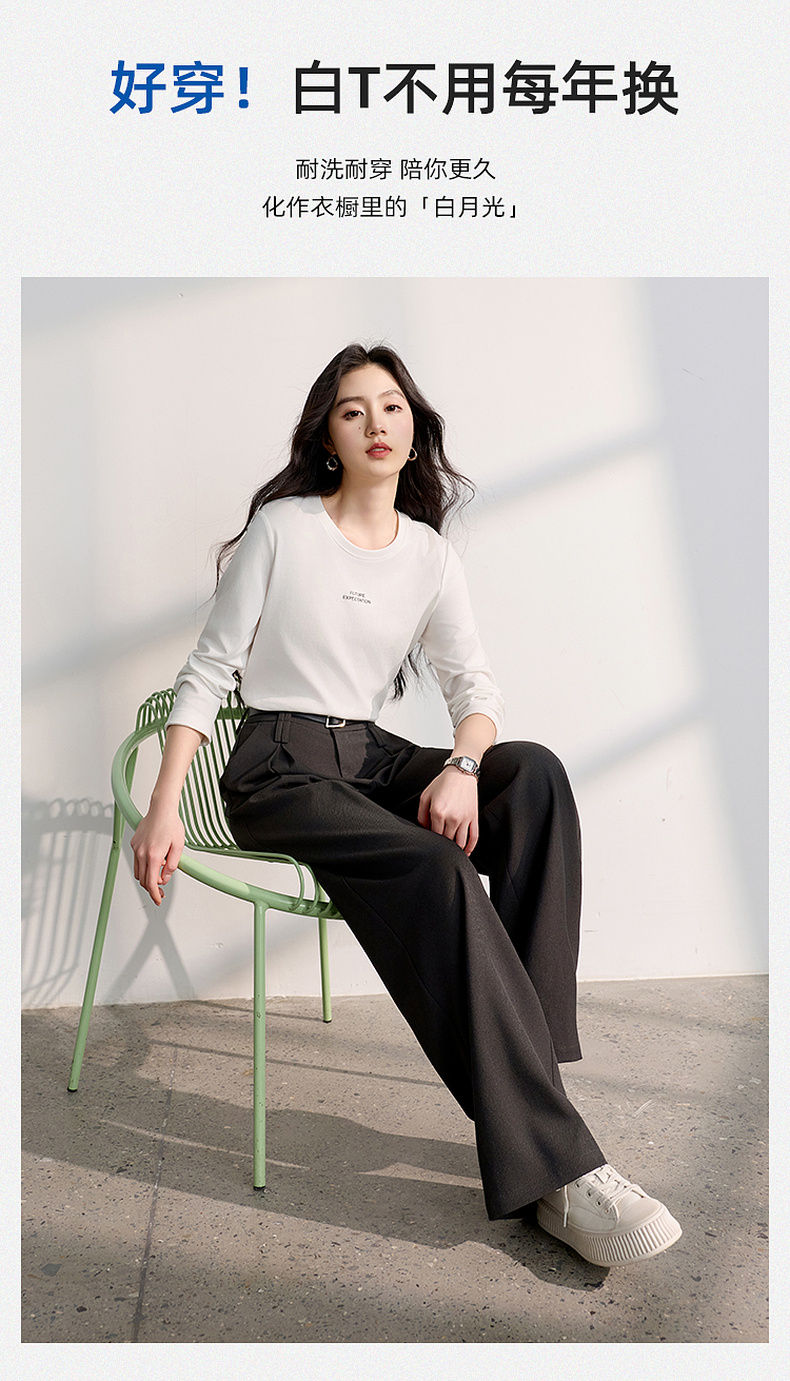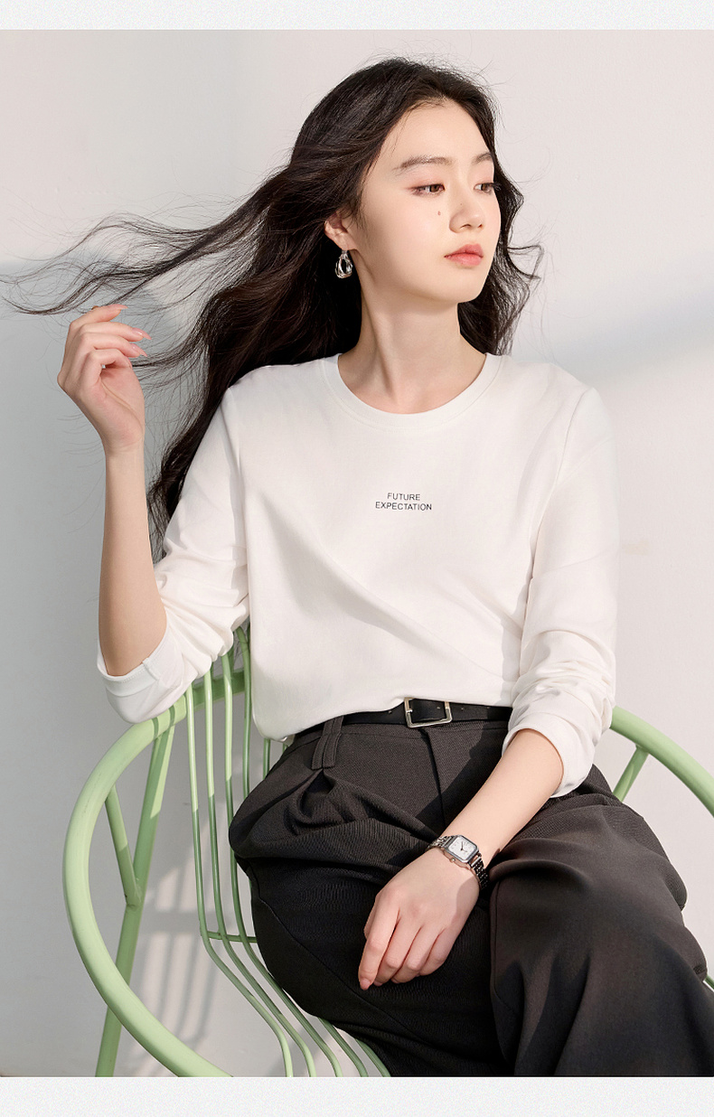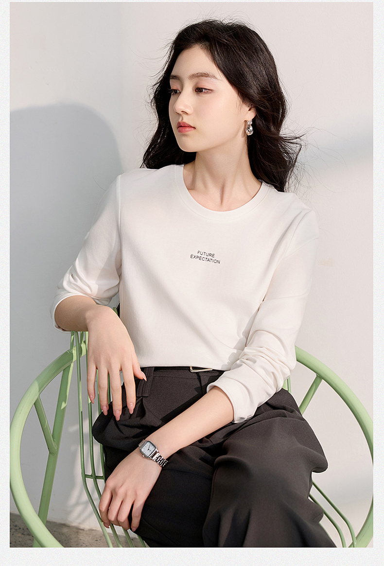 【匹马棉】三彩2026春季新款圆领字母T恤宽松长袖基础套头衫休闲Z