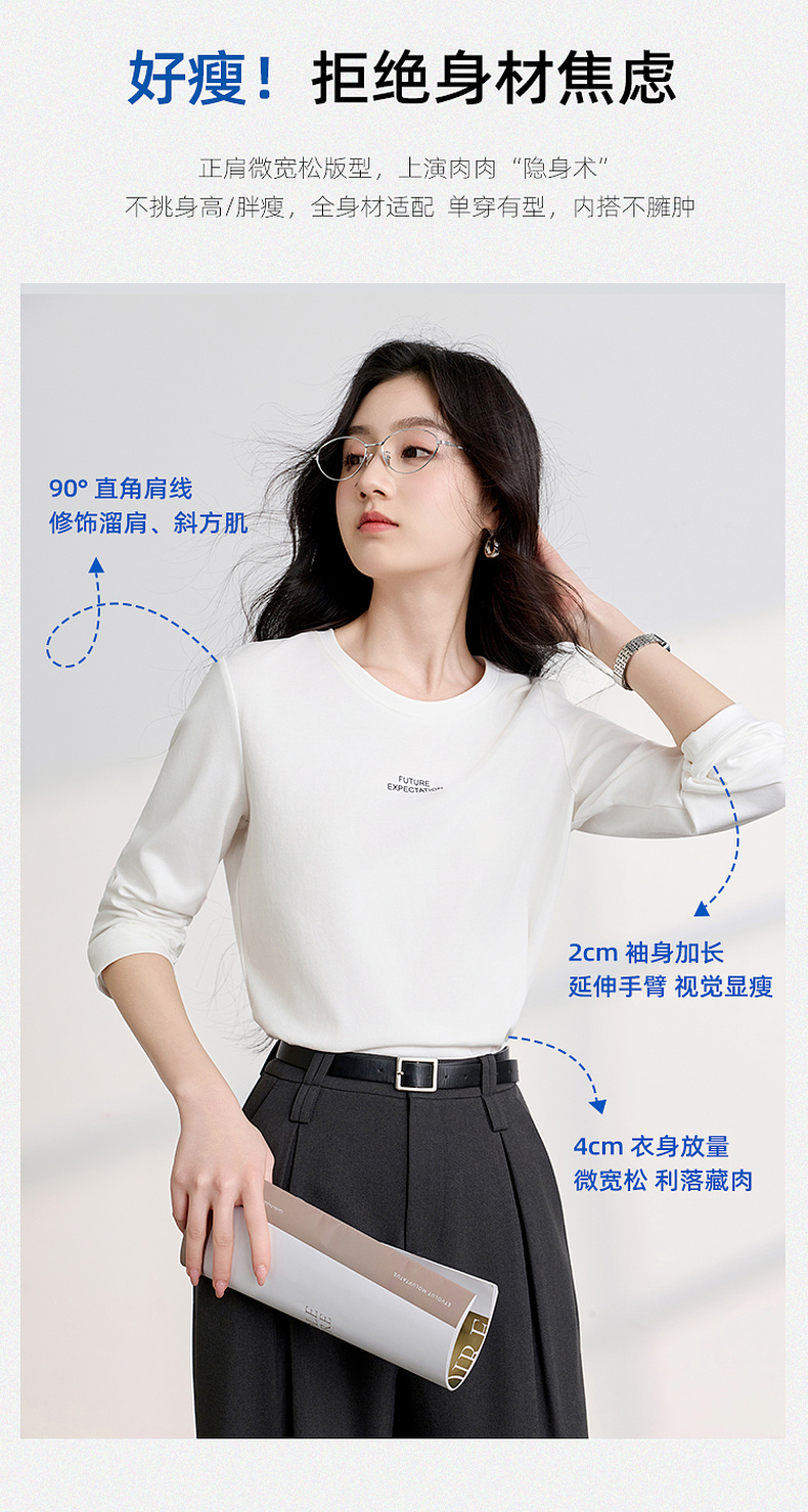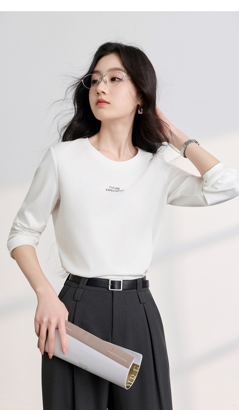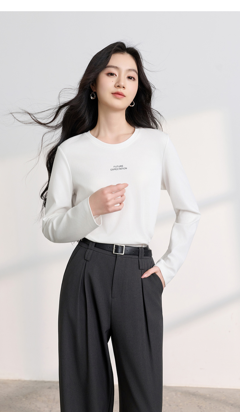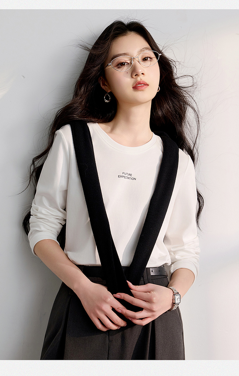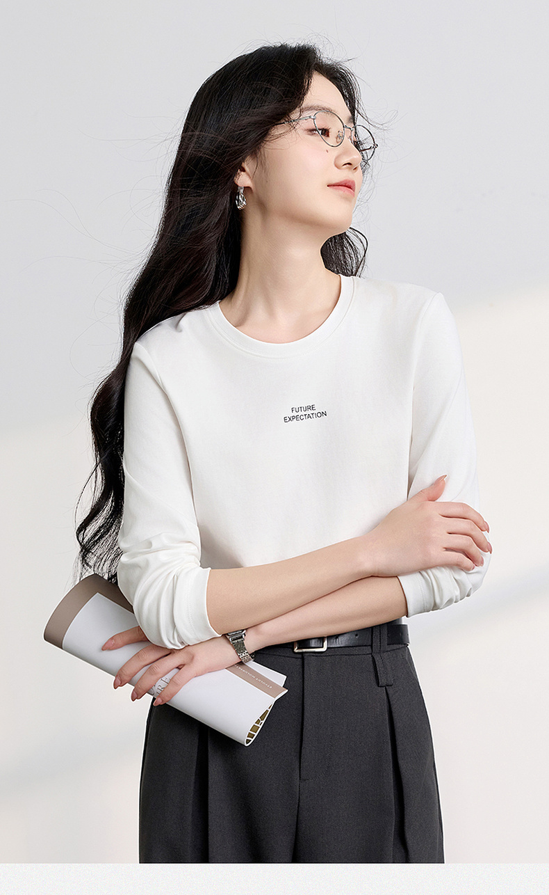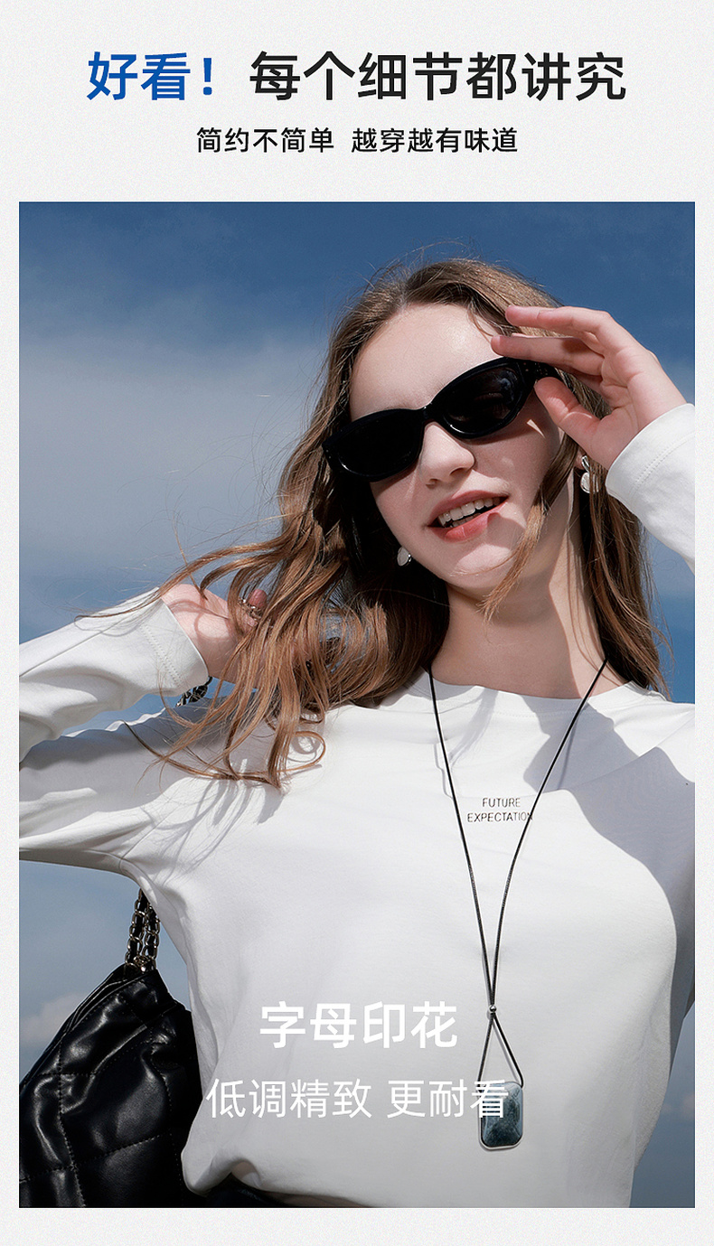 【匹马棉】三彩2026春季新款圆领字母T恤宽松长袖基础套头衫休闲Z