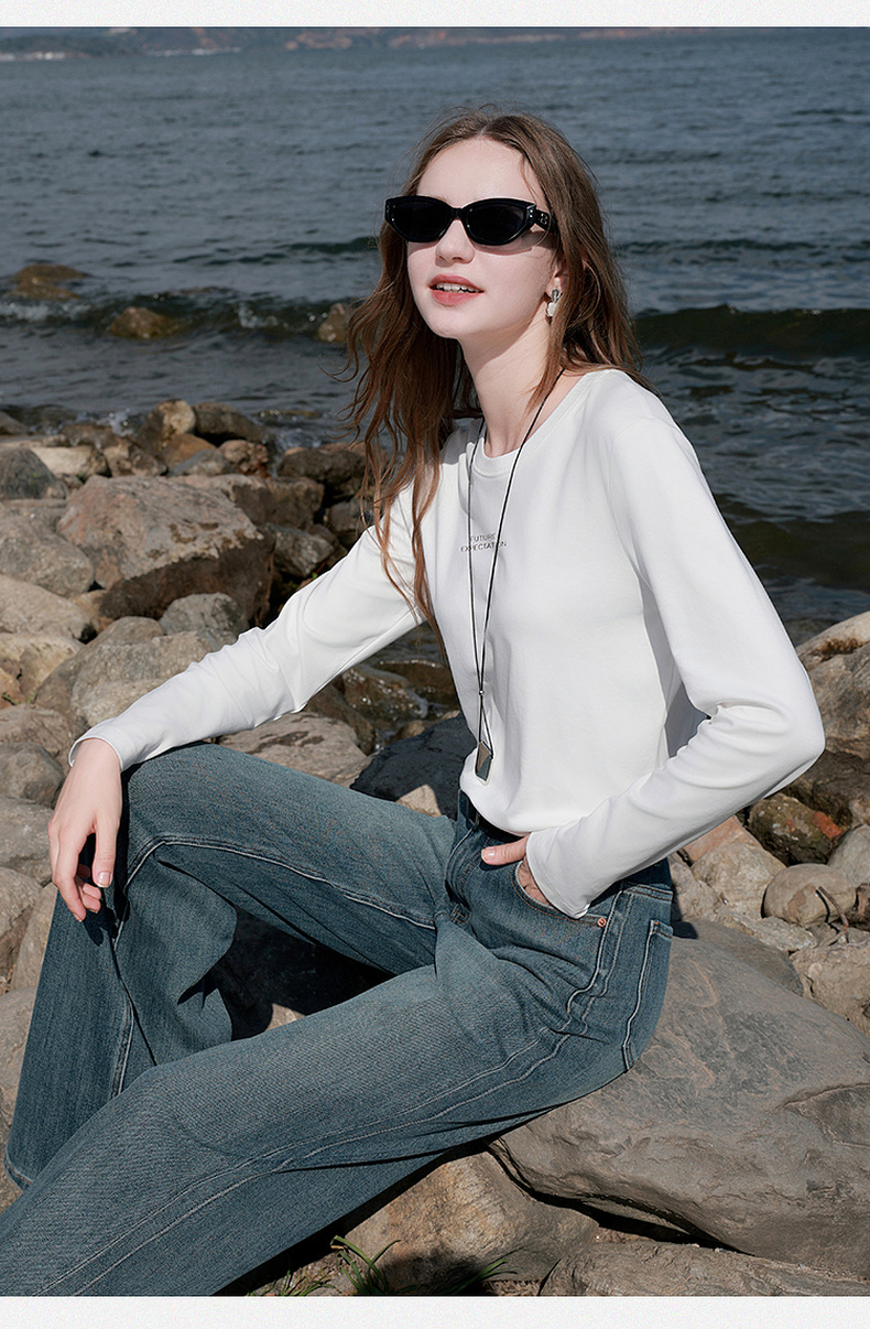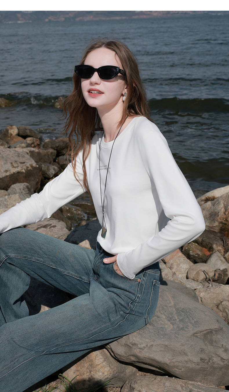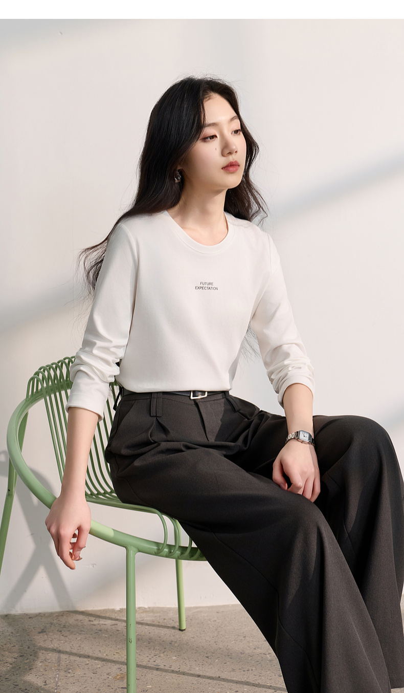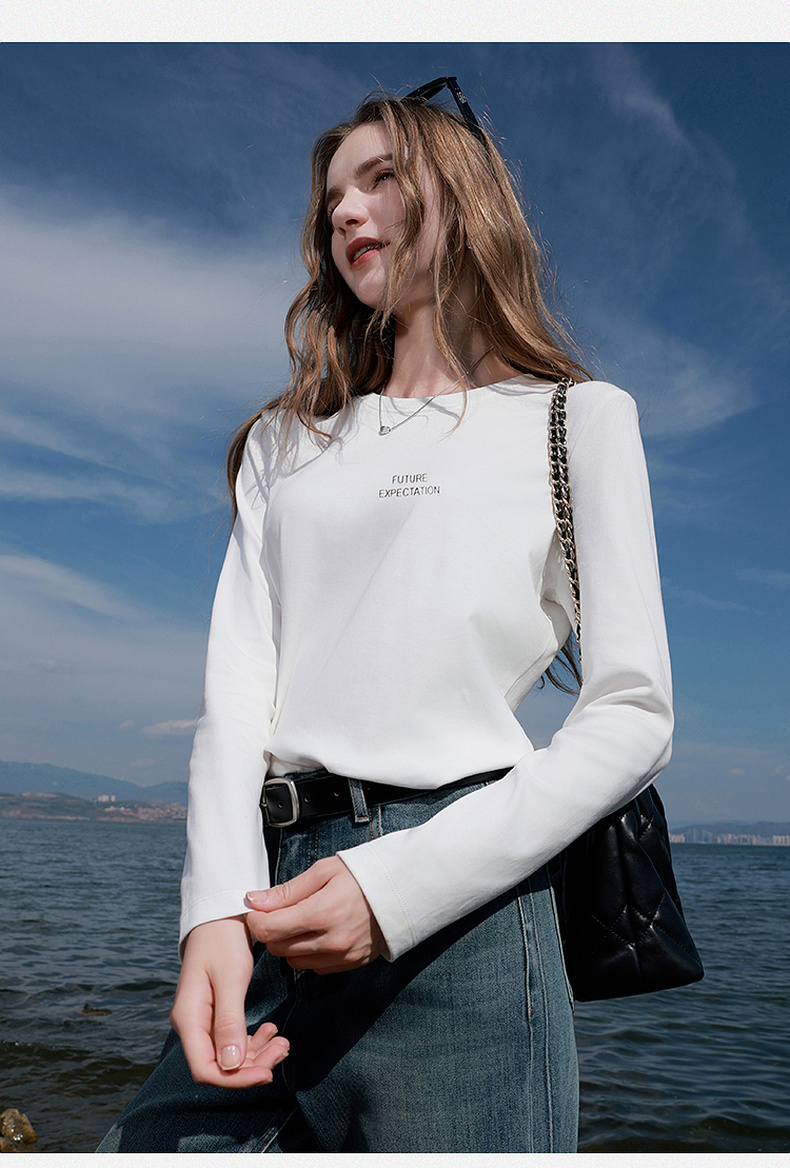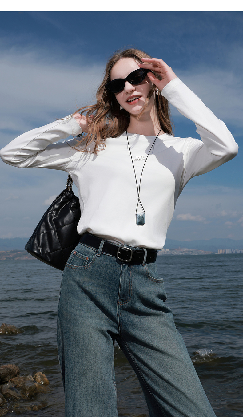 【匹马棉】三彩2026春季新款圆领字母T恤宽松长袖基础套头衫休闲Z