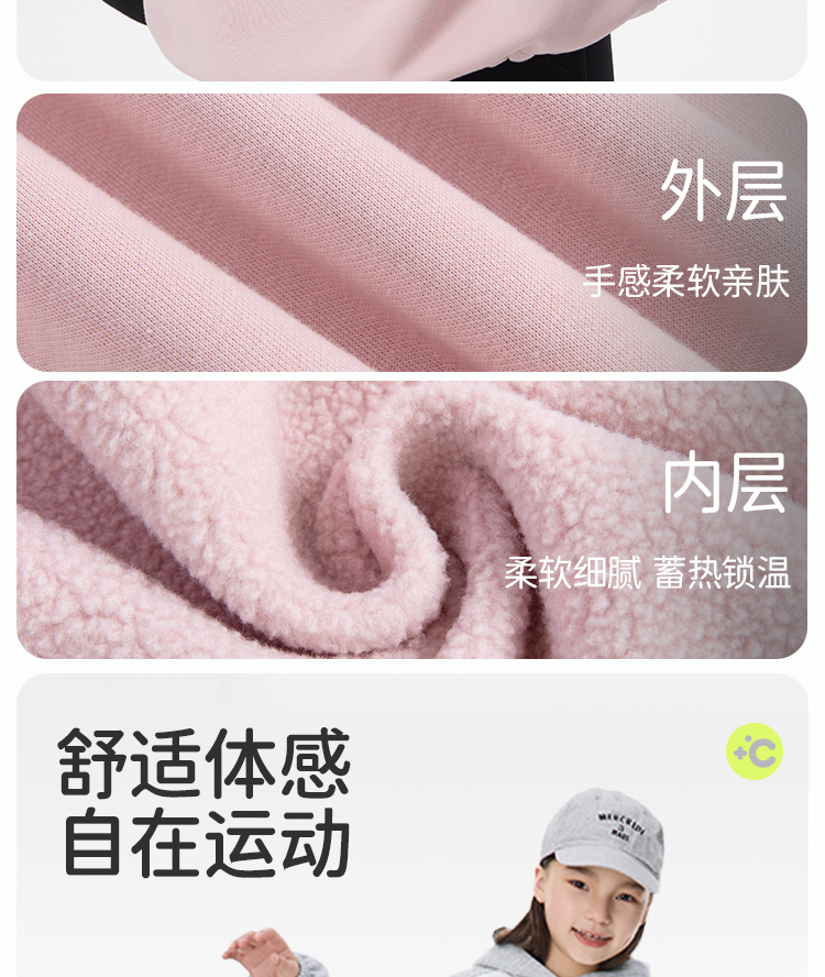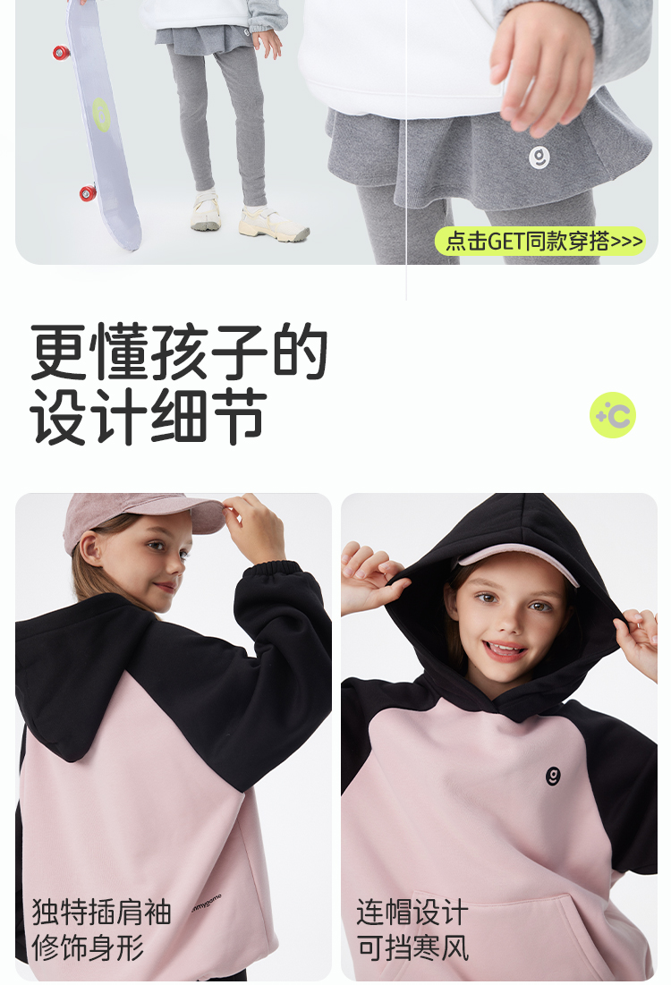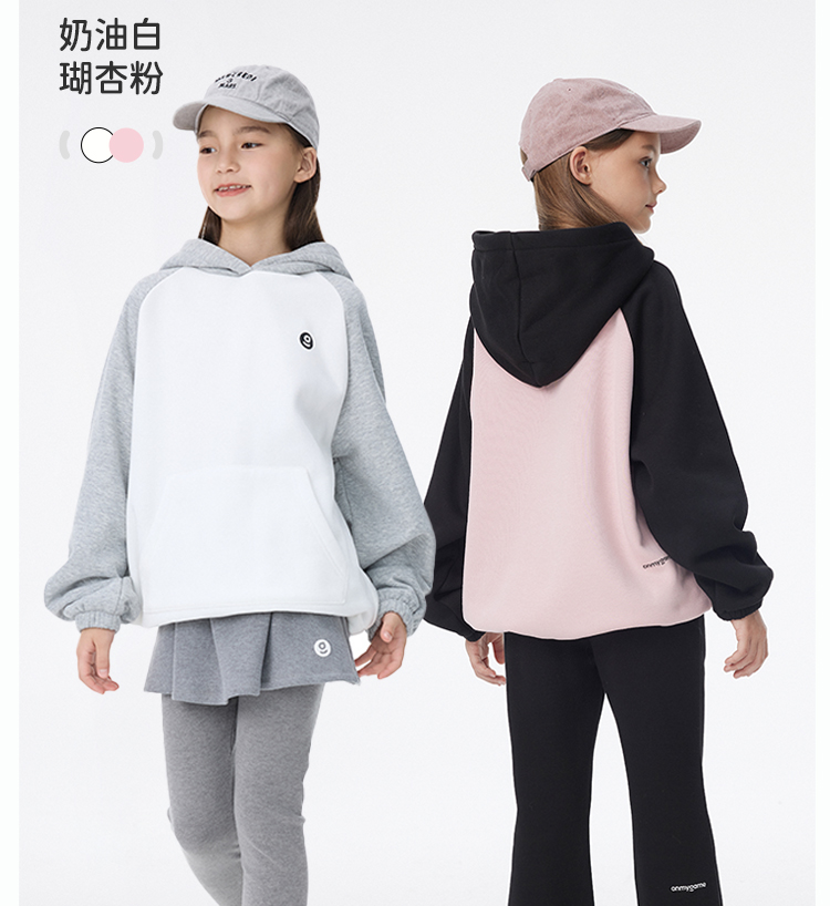 onmygame【远红外发热】男女童加绒卫衣2024新秋冬季儿童连帽上衣