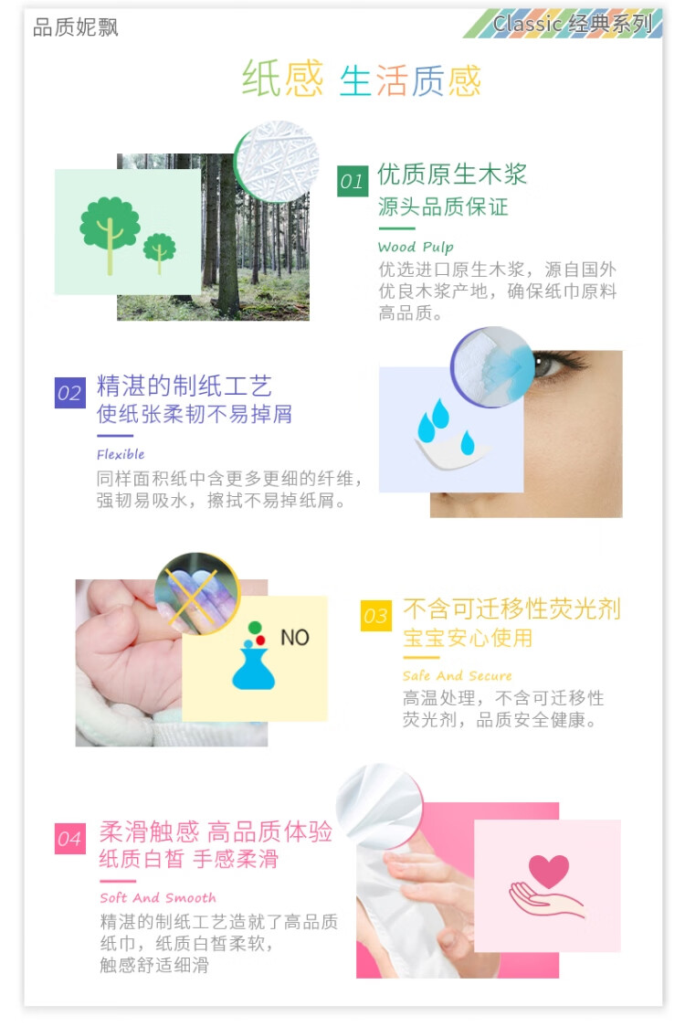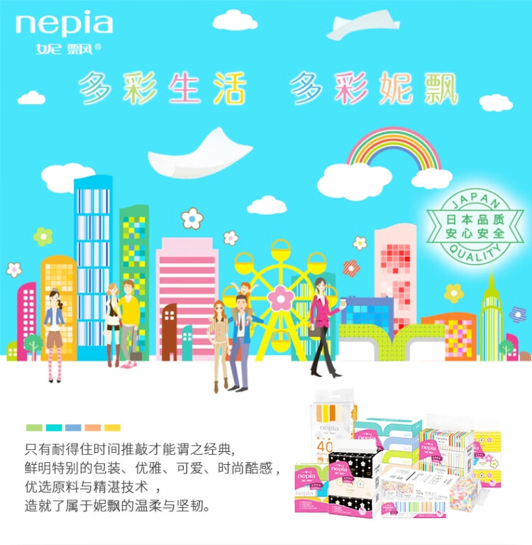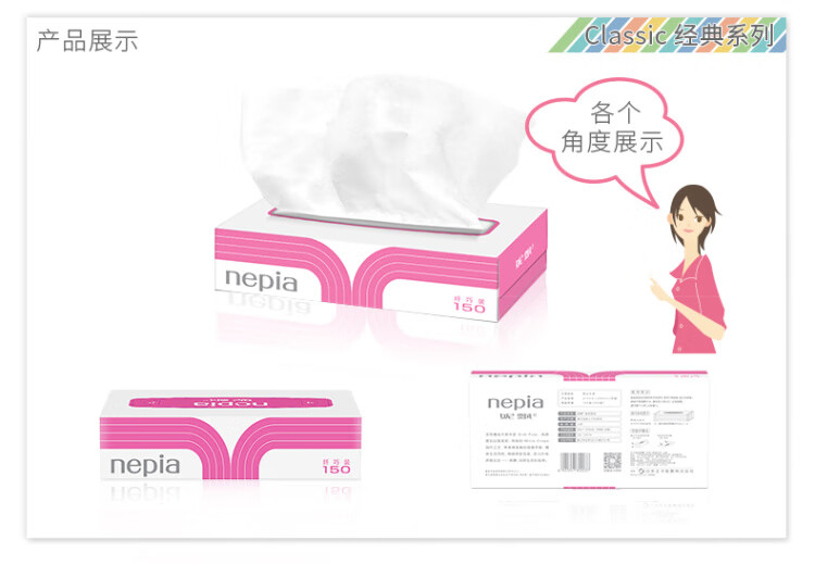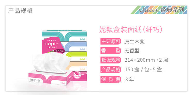 妮飘(Nepia)经典纤巧抽纸盒装餐巾纸150抽5盒无香家用办公车用抽取式高端纸巾_MW