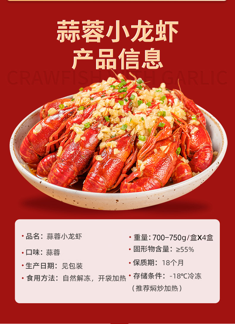 苏霸王麻辣/蒜蓉小龙虾700g/盒, 加热即食, 肉质鲜嫩 麻辣爆爽
