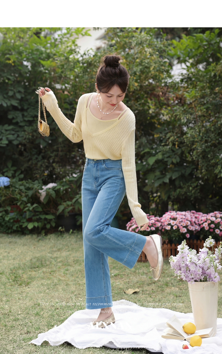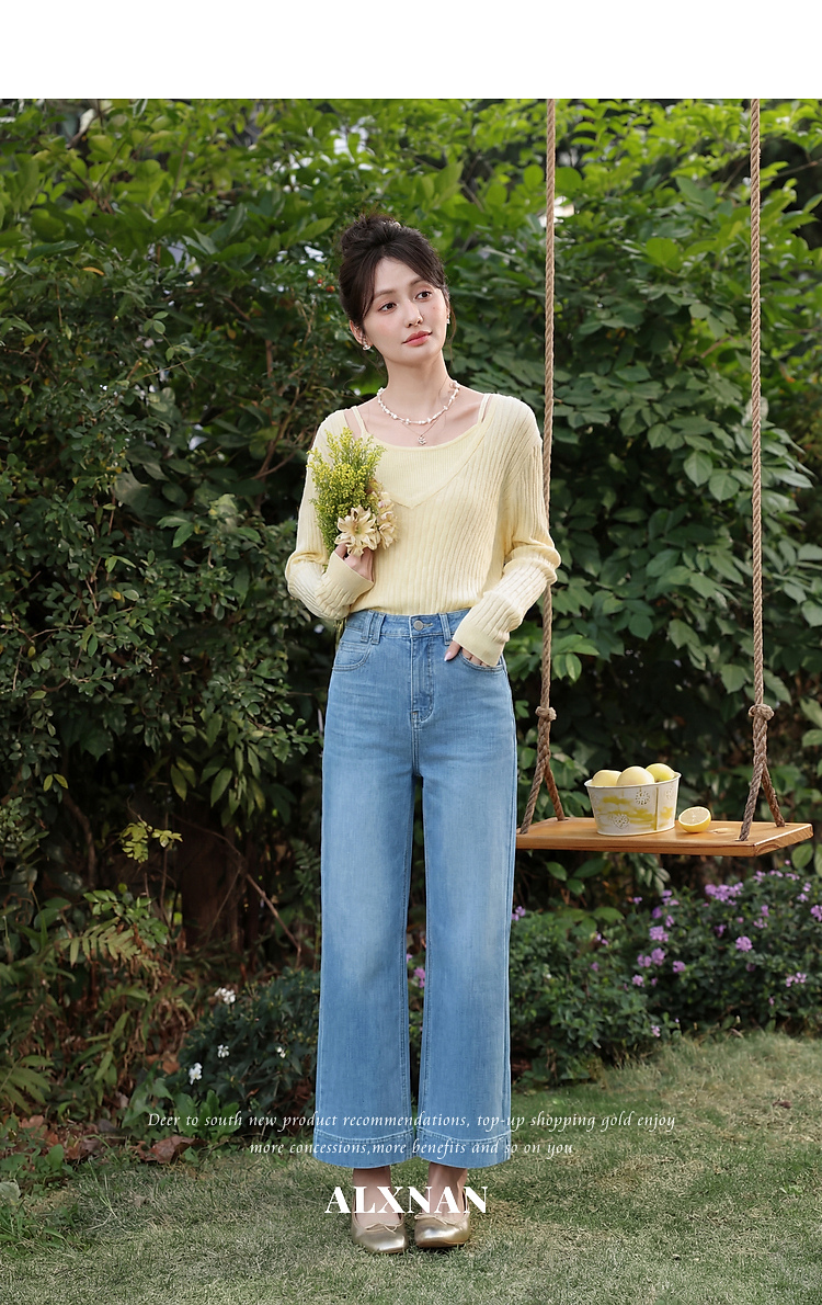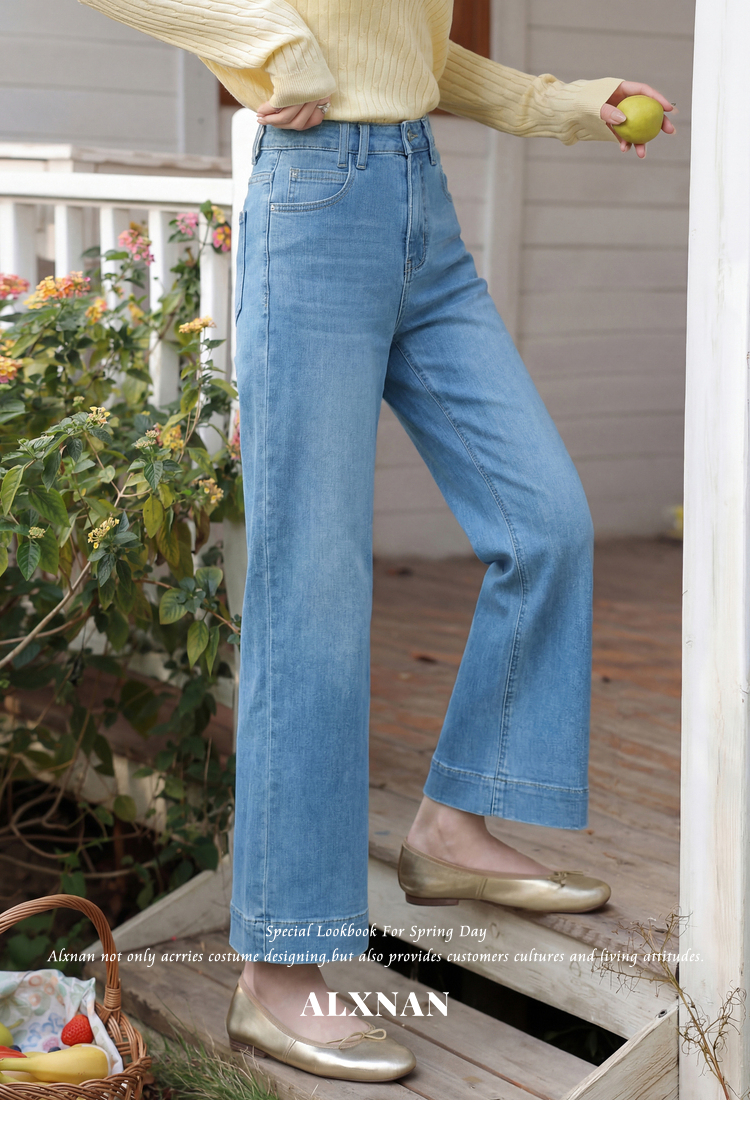 鹿向南「软蓝阔境」蓝色阔腿牛仔裤女夏季最新款百搭垂感显瘦长裤