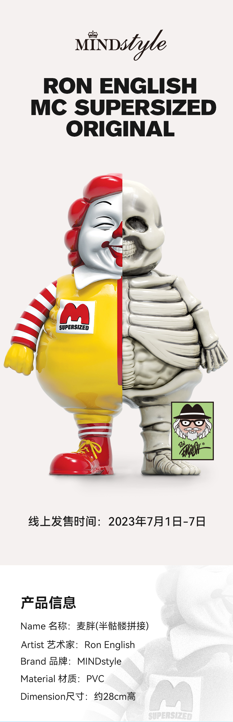 MINDstyle Ron English MC Supersized Original 麦胖(半骷髅拼接)艺术收藏手办摆件 3547