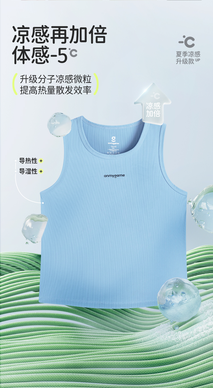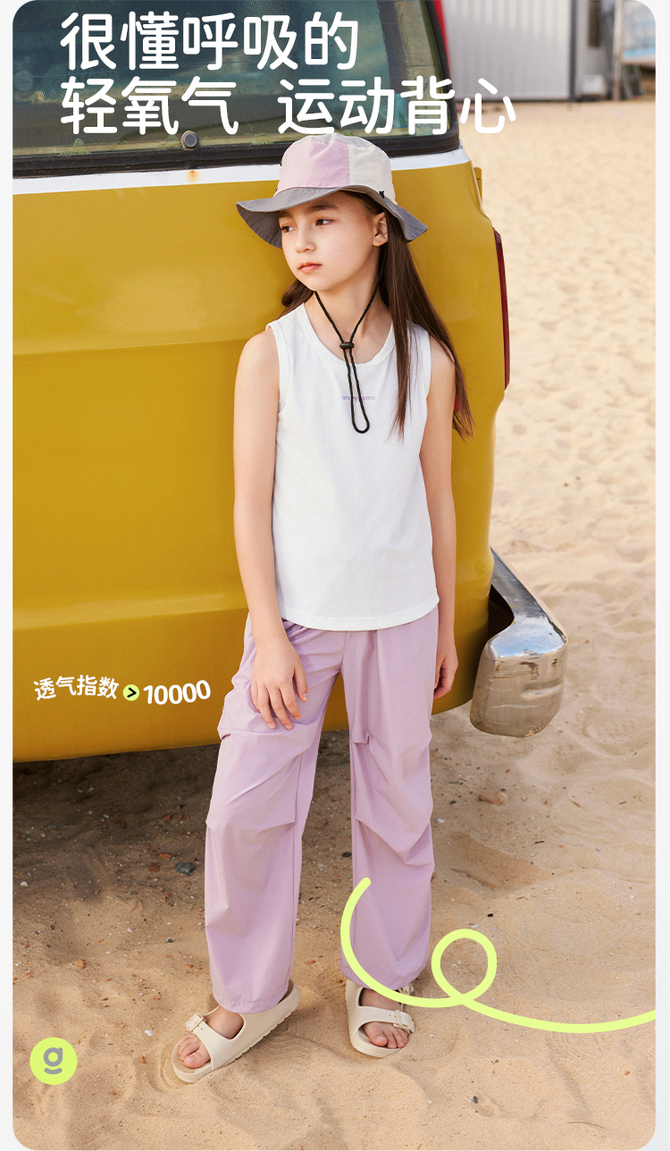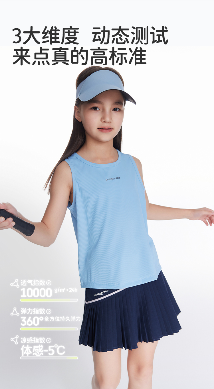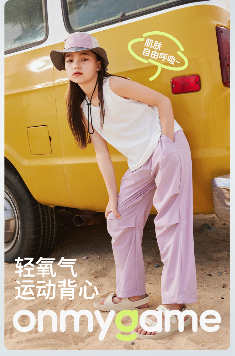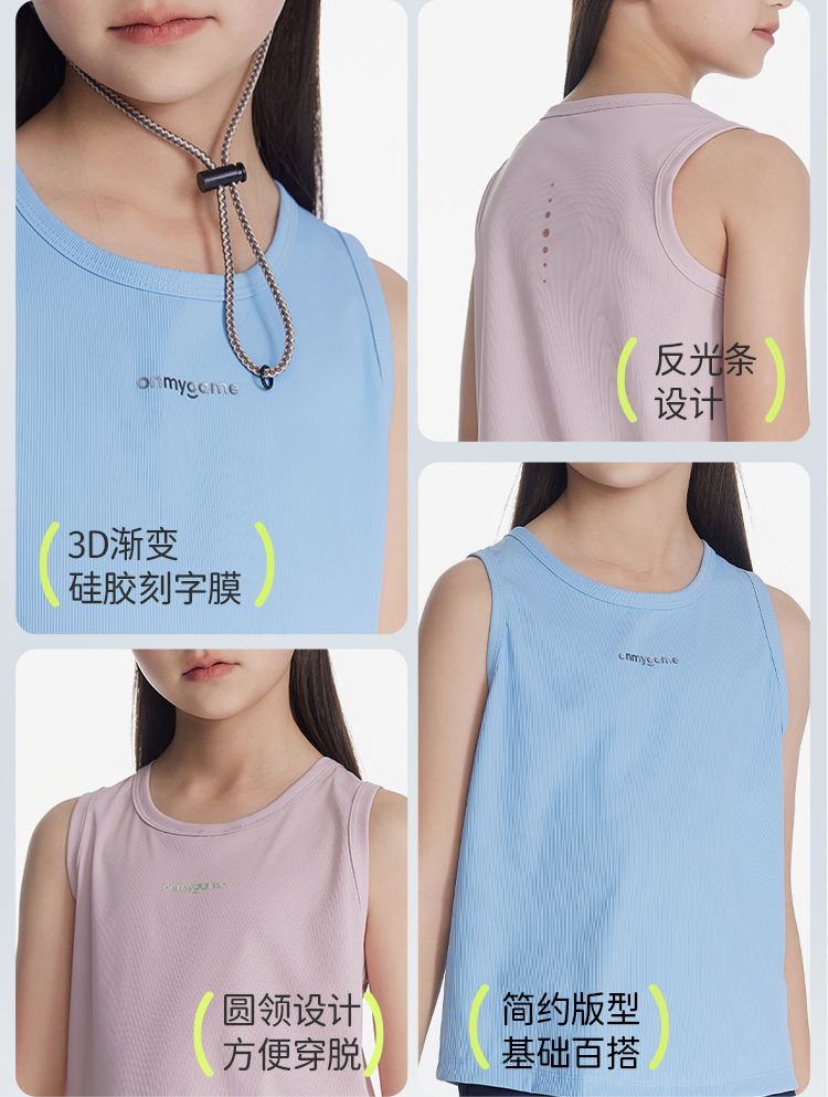 onmygame女童背心夏季外穿薄款凉感儿童工字无袖运动上衣2024新款