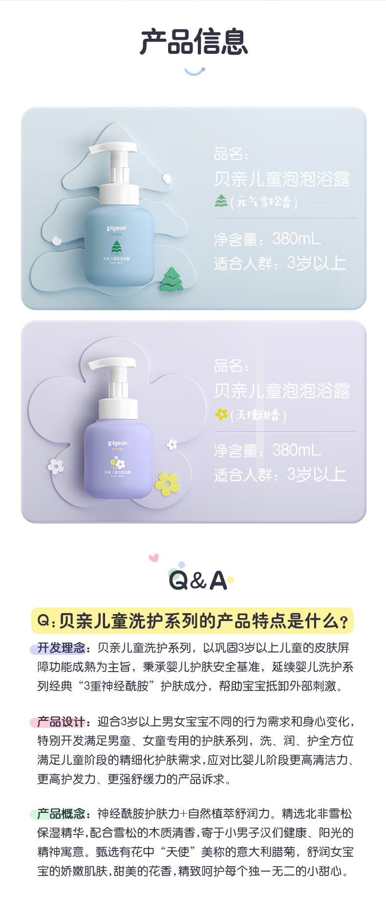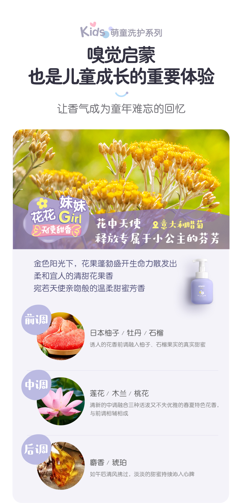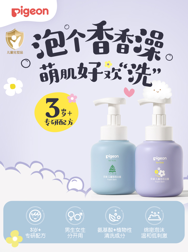 【官方自营】奚梦瑶推荐!PIGEON/贝亲女童洗护天使甜香系列(新品上市)3岁+儿童可用洗发水/护发素/面霜/沐浴露/洁面/身体乳