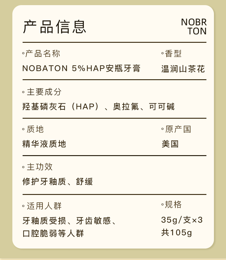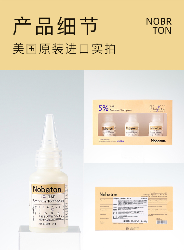 Nobaton诺巴顿农场5%HAP安瓶牙膏35g×3支