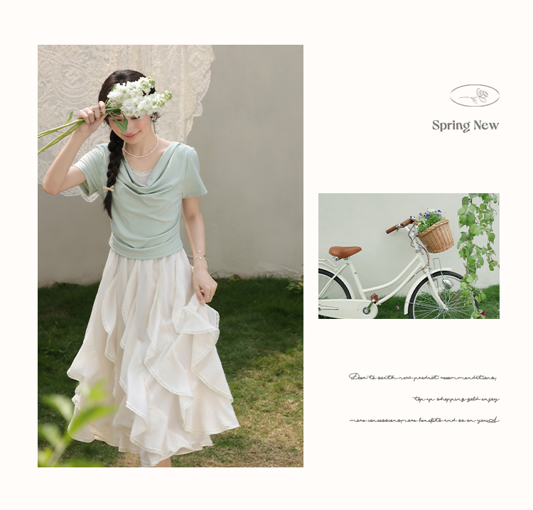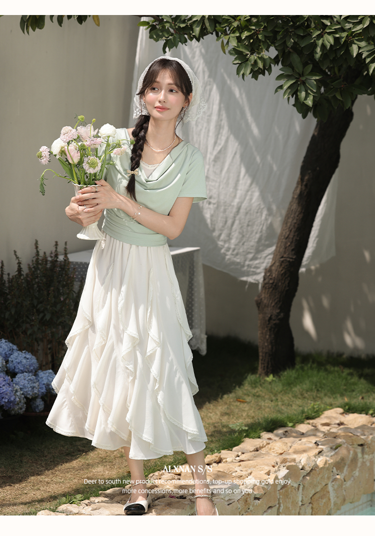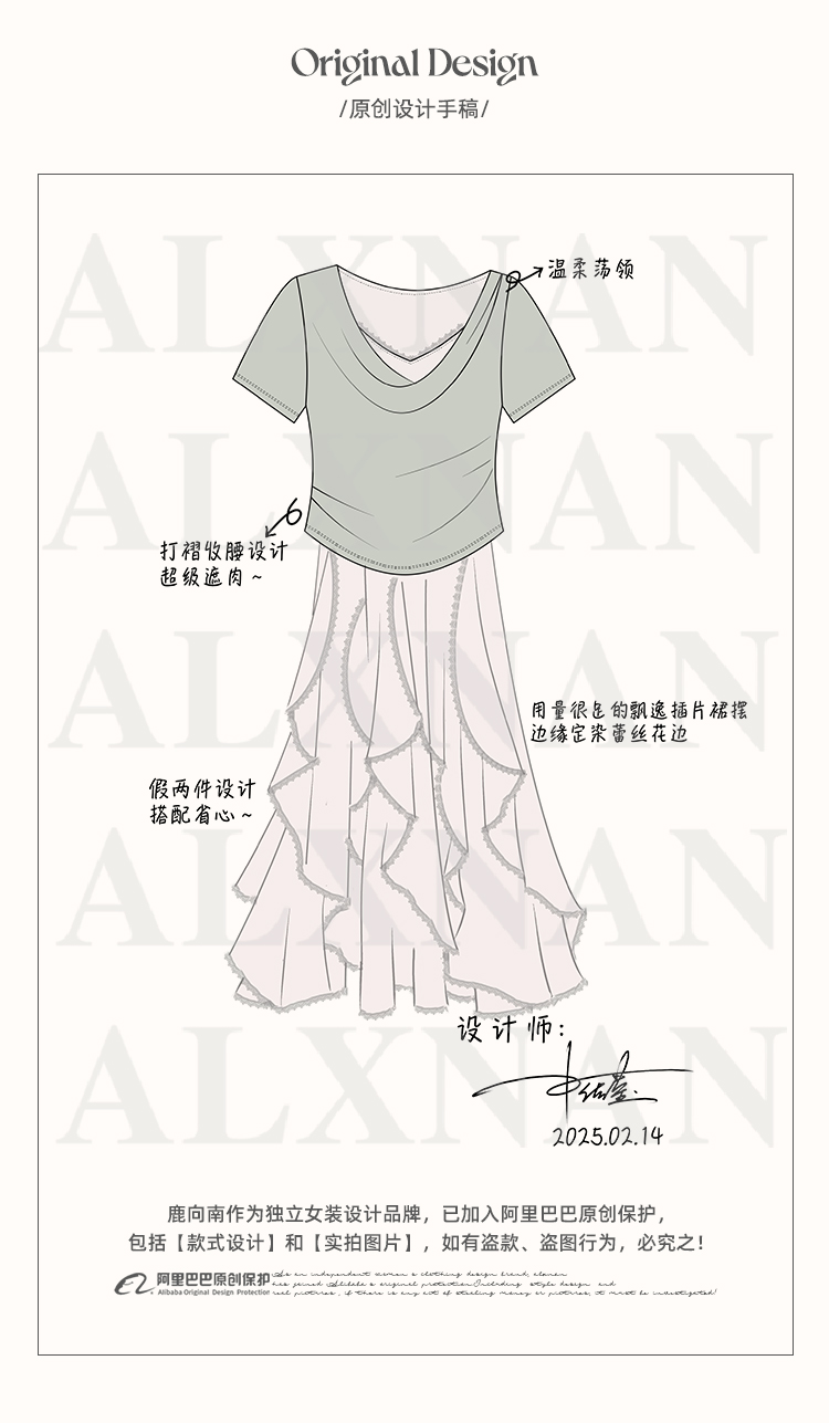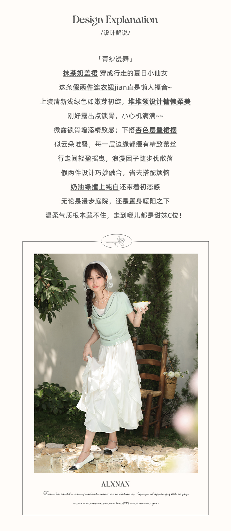鹿向南「眠枝织影」假两件拼接连衣裙女夏季设计感收腰显瘦长裙子L53969