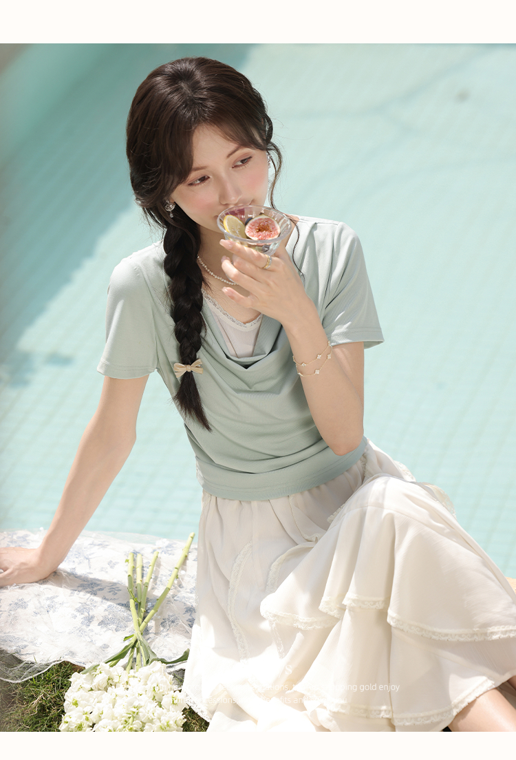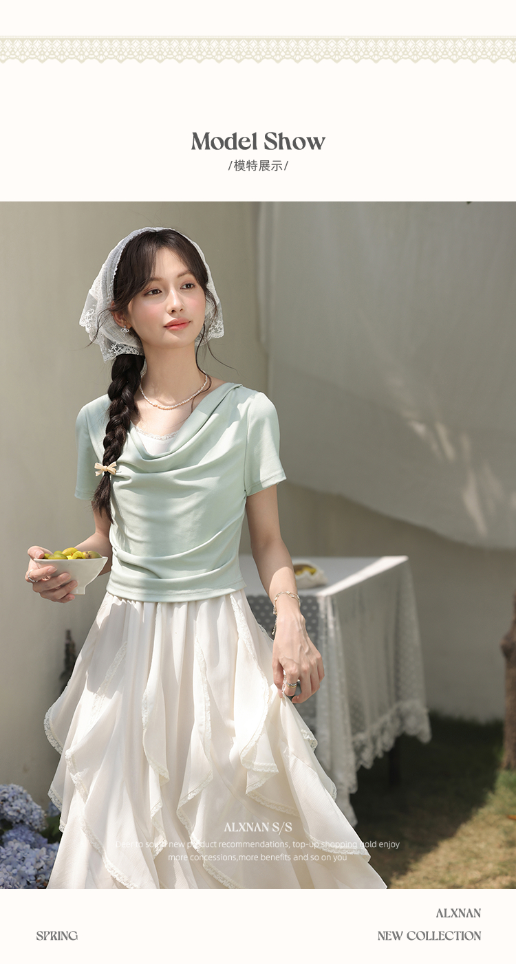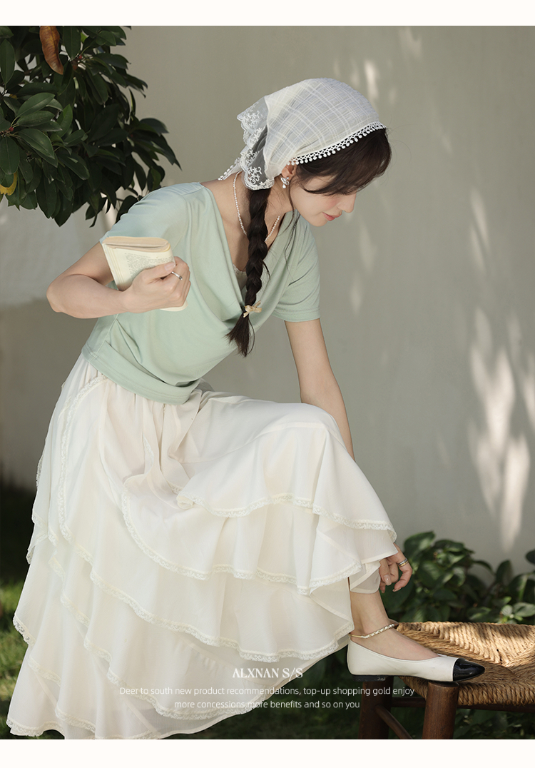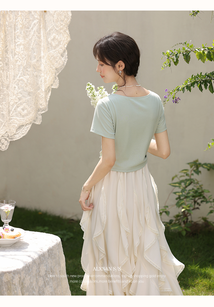 鹿向南「眠枝织影」假两件拼接连衣裙女夏季设计感收腰显瘦长裙子L53969