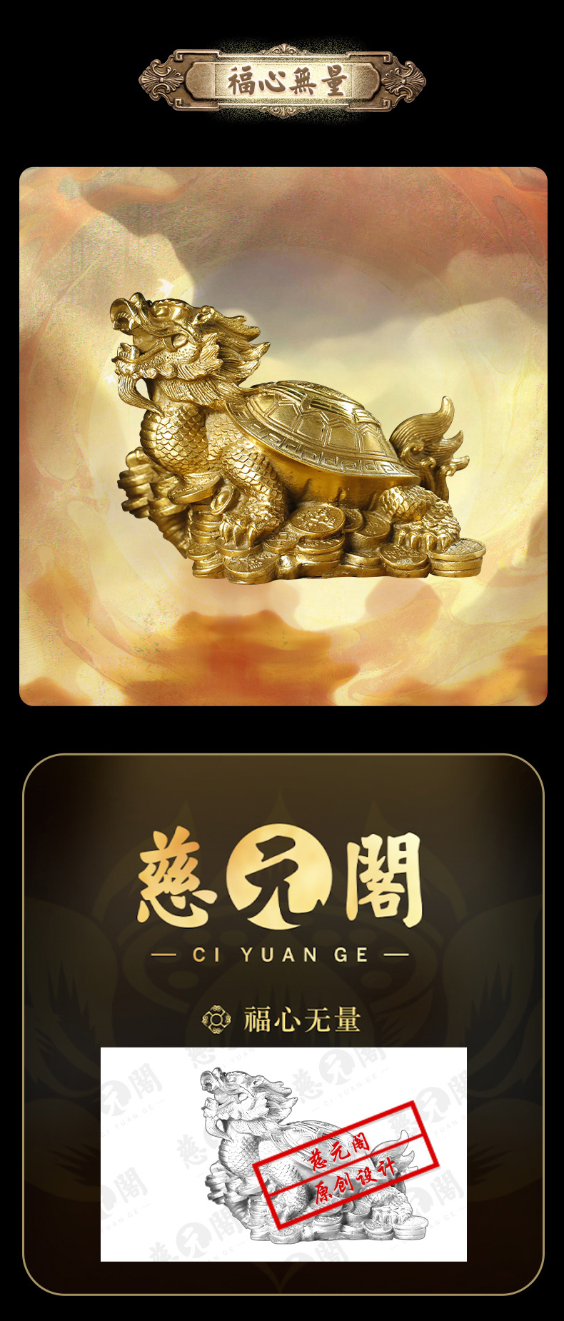 慈元阁定制黄铜龙龟摆件家居办公室装饰门店开业礼品