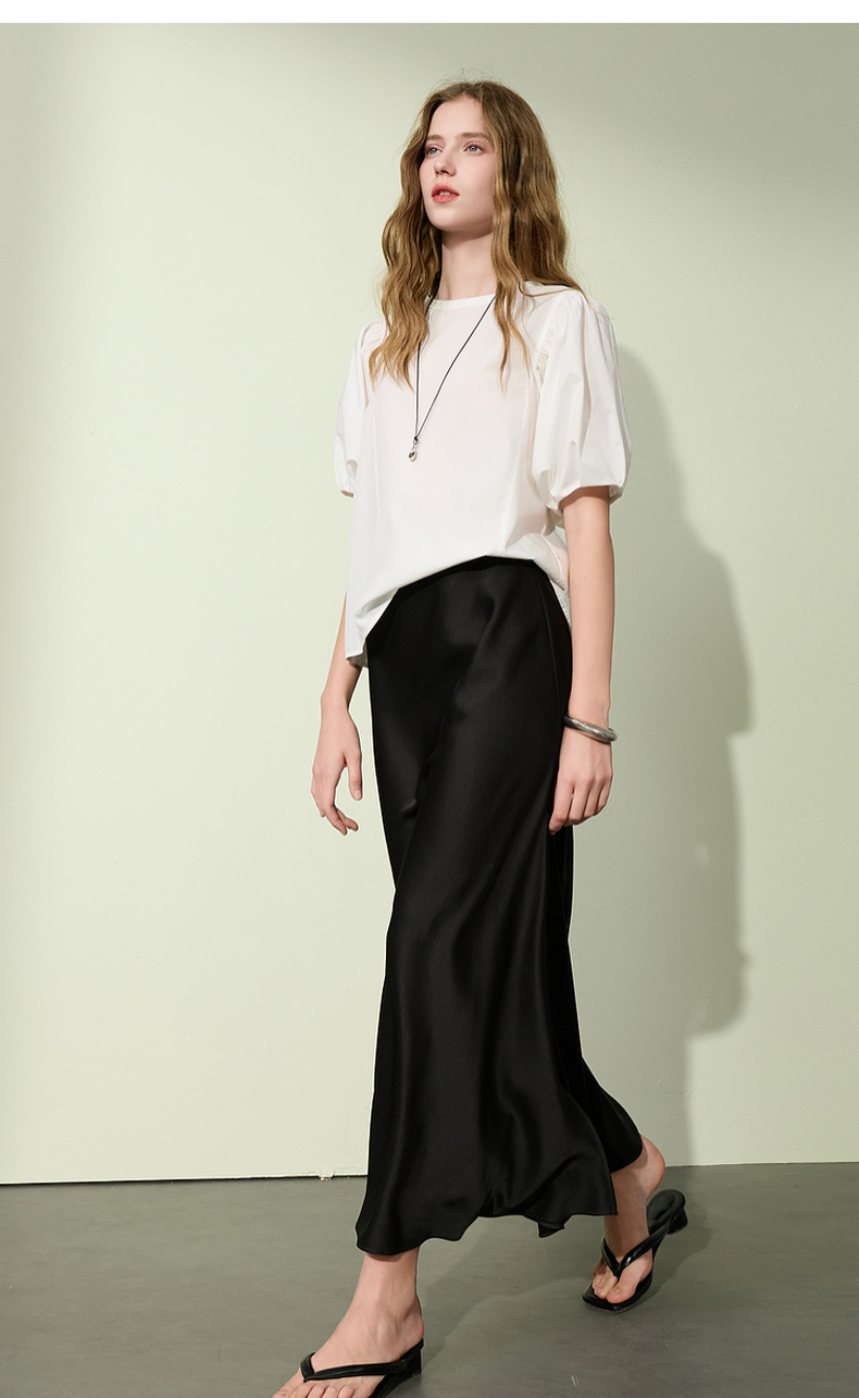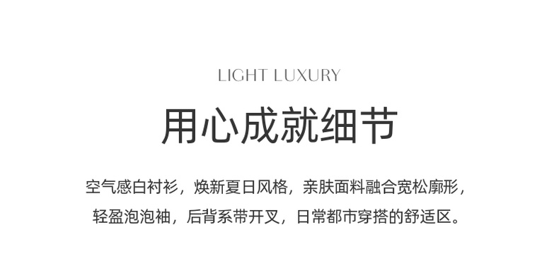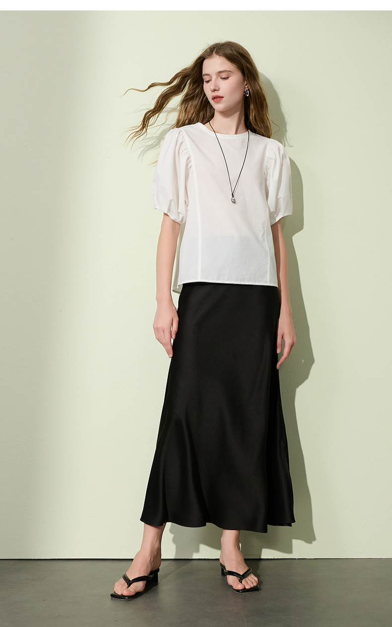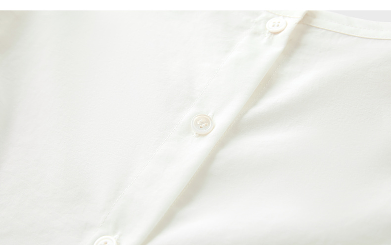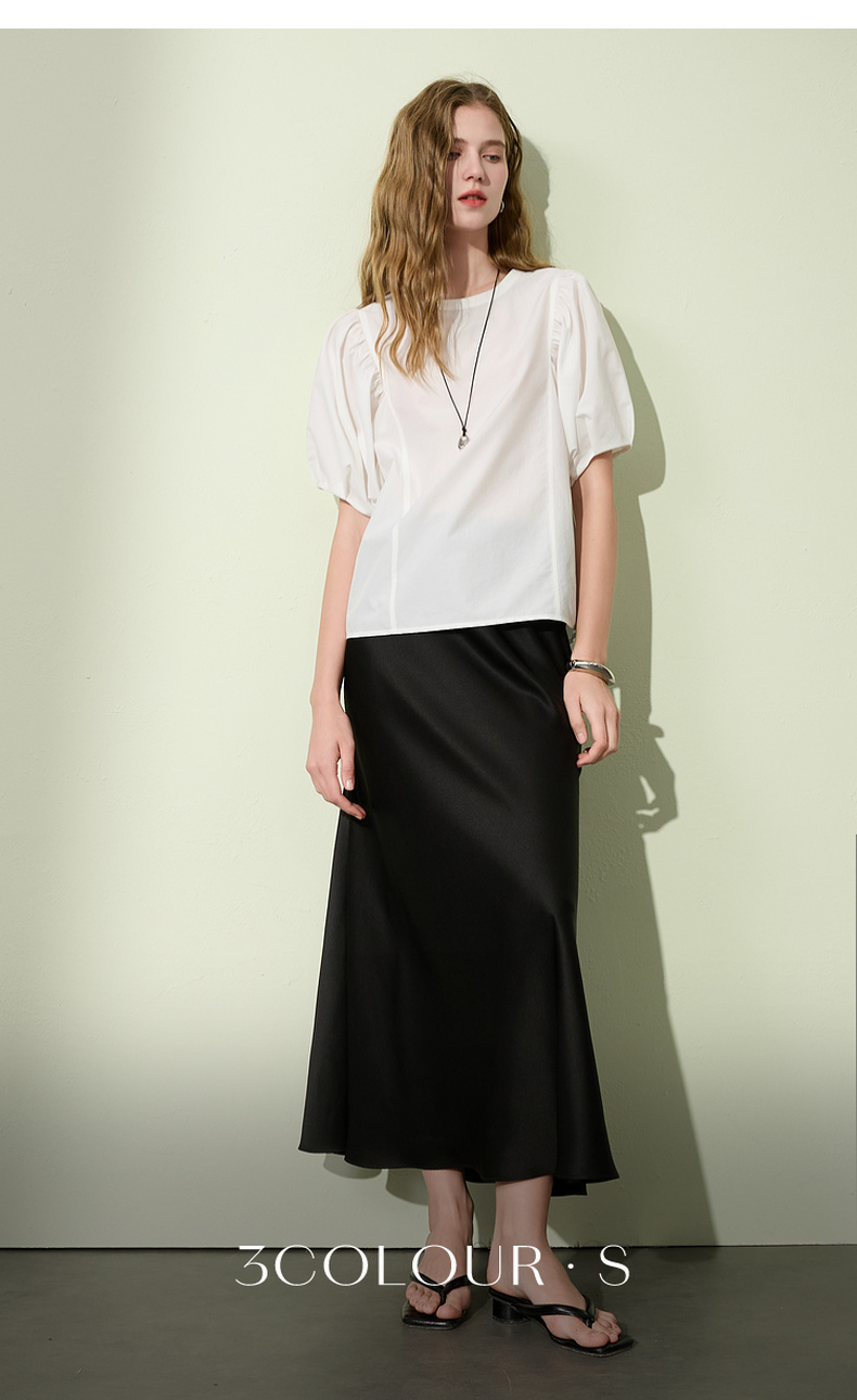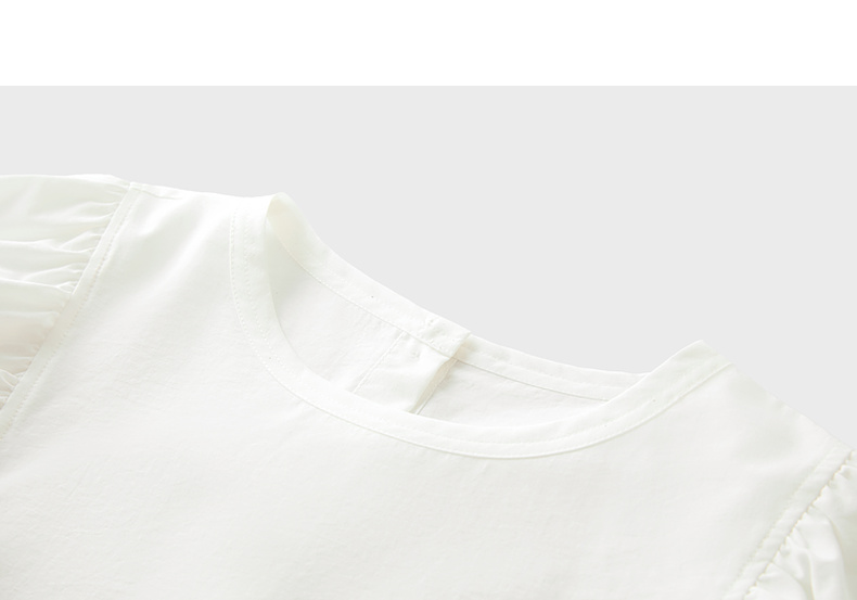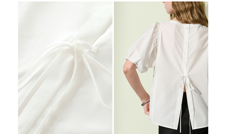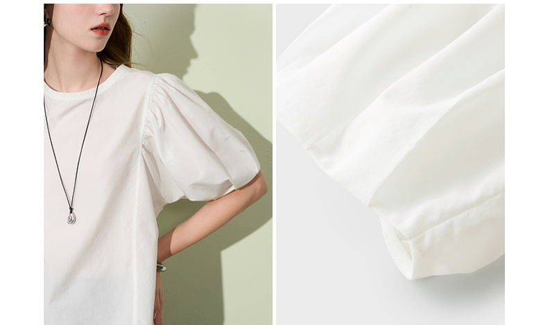 三彩2025夏季新款泡泡袖圆领白衬衫上衣宽松衬衣小衫简约S