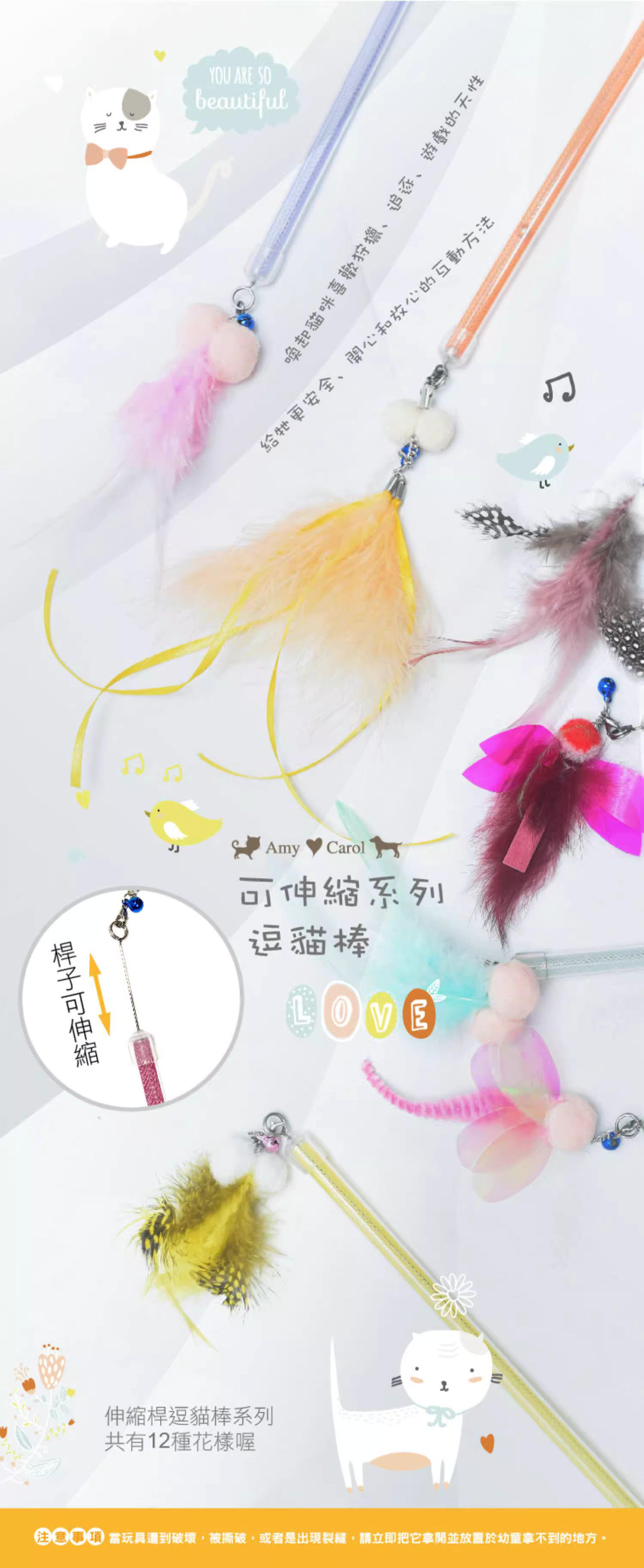 Amy Carol可伸缩系列蝴蝶逗猫棒毛绒飘带羽毛仿生吸引猫咪互动玩具