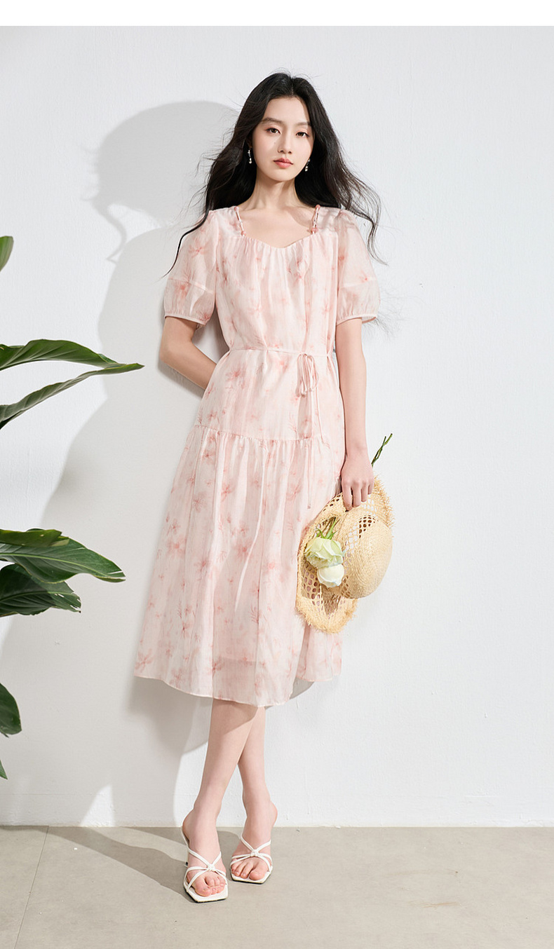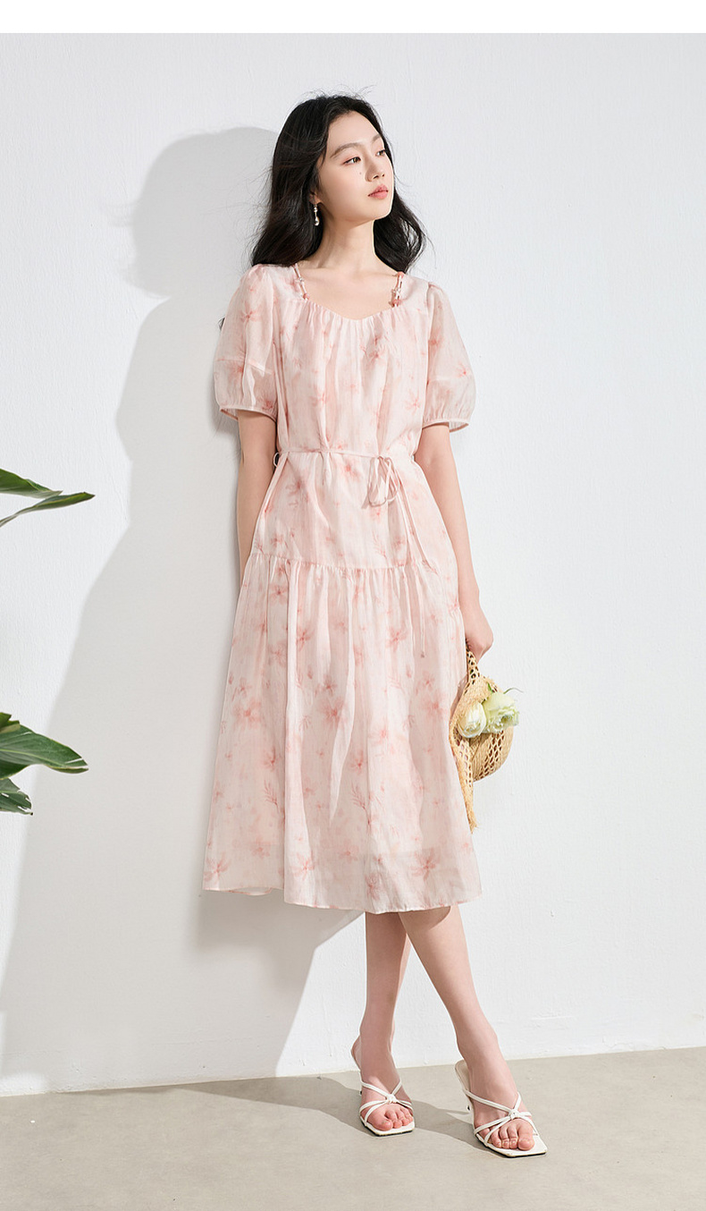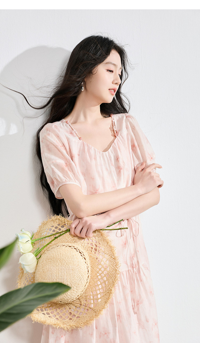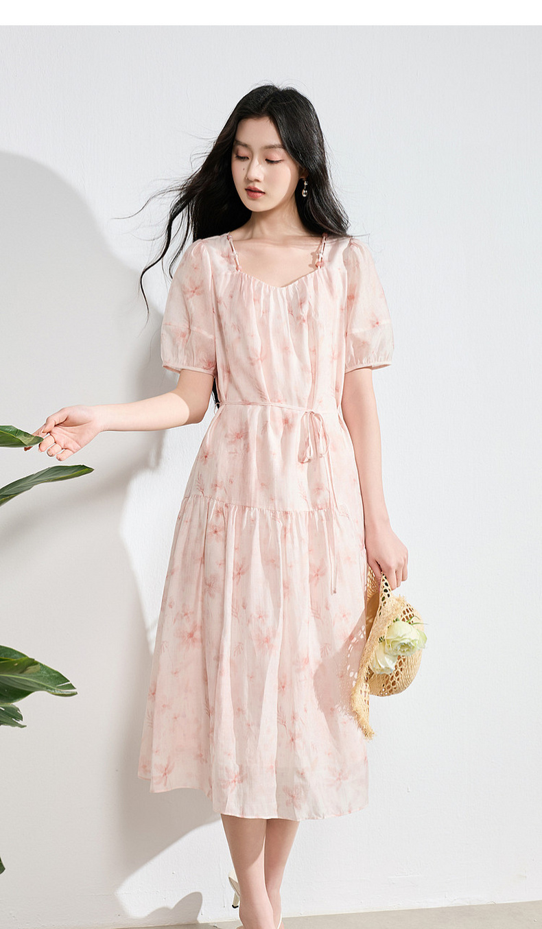 【莱赛尔】三彩2026夏季新款碎花连衣裙短袖A字裙中长S