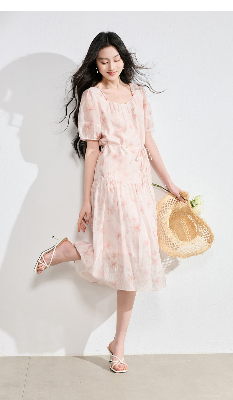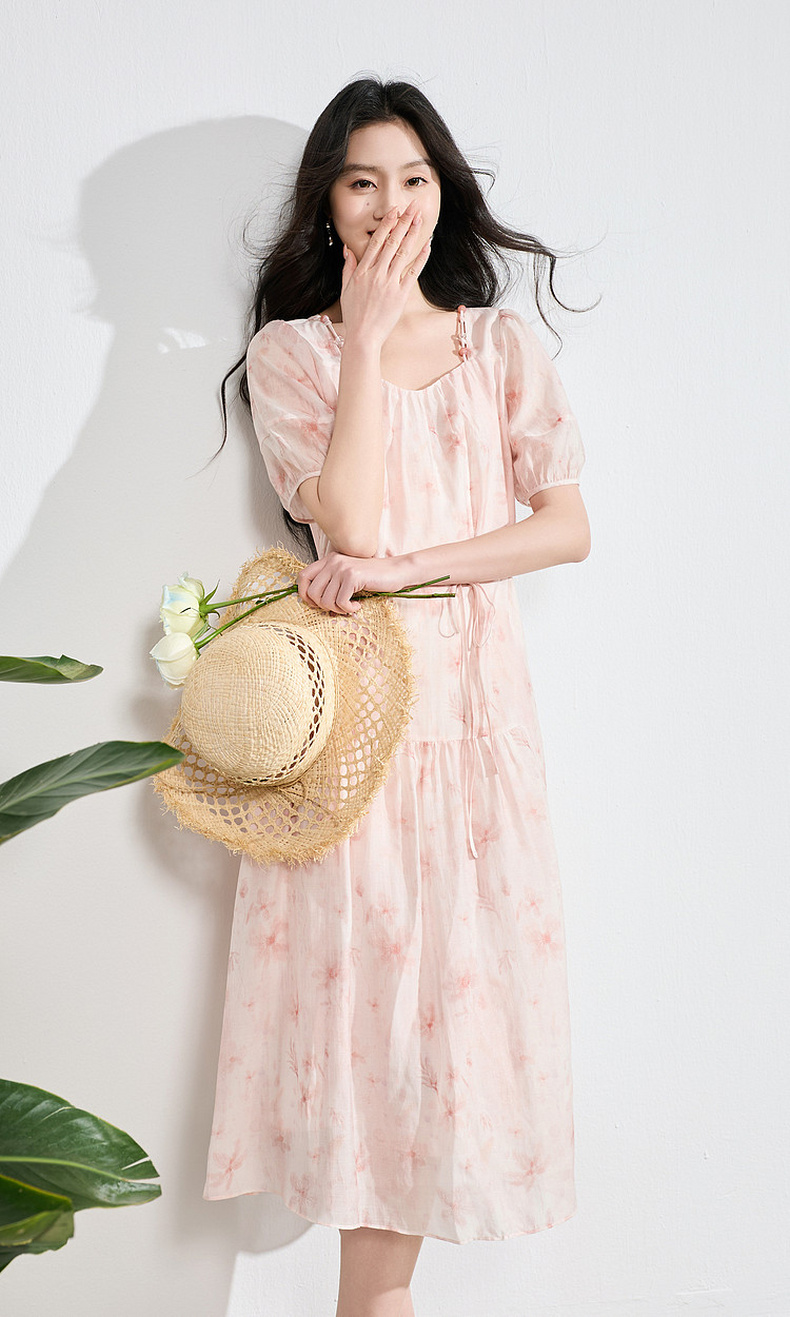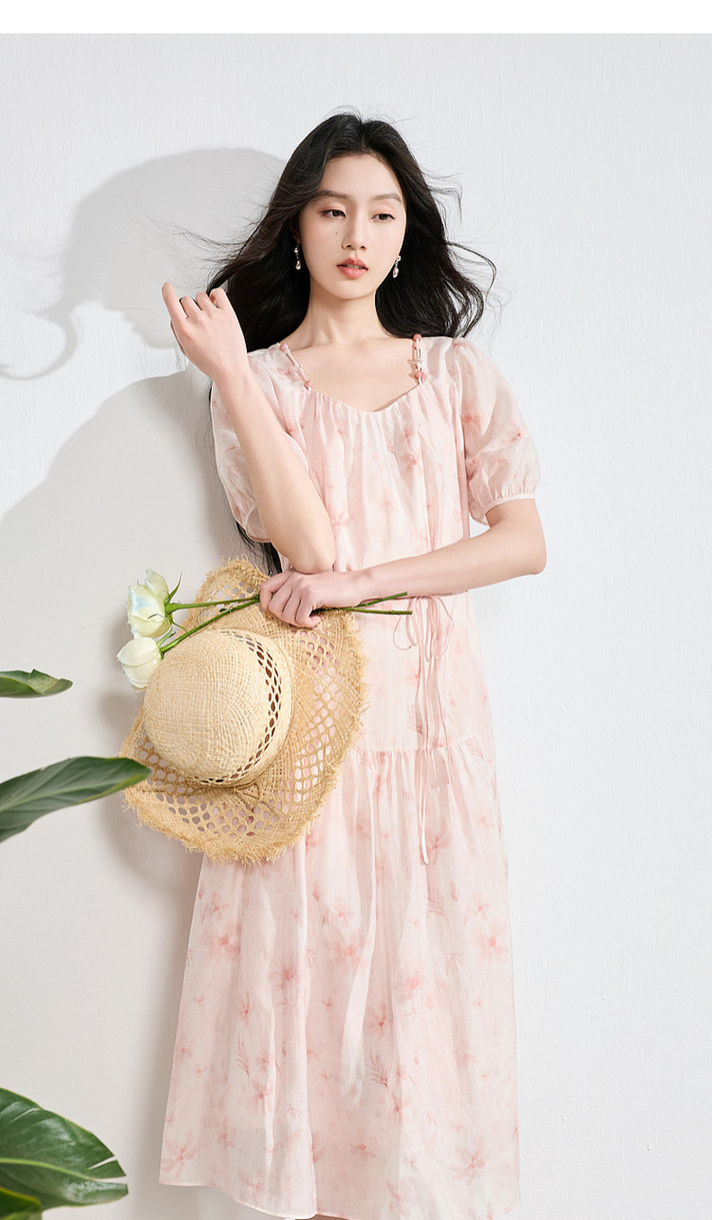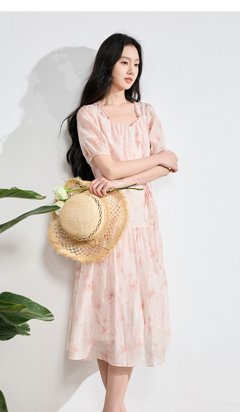 【莱赛尔】三彩2026夏季新款碎花连衣裙短袖A字裙中长S