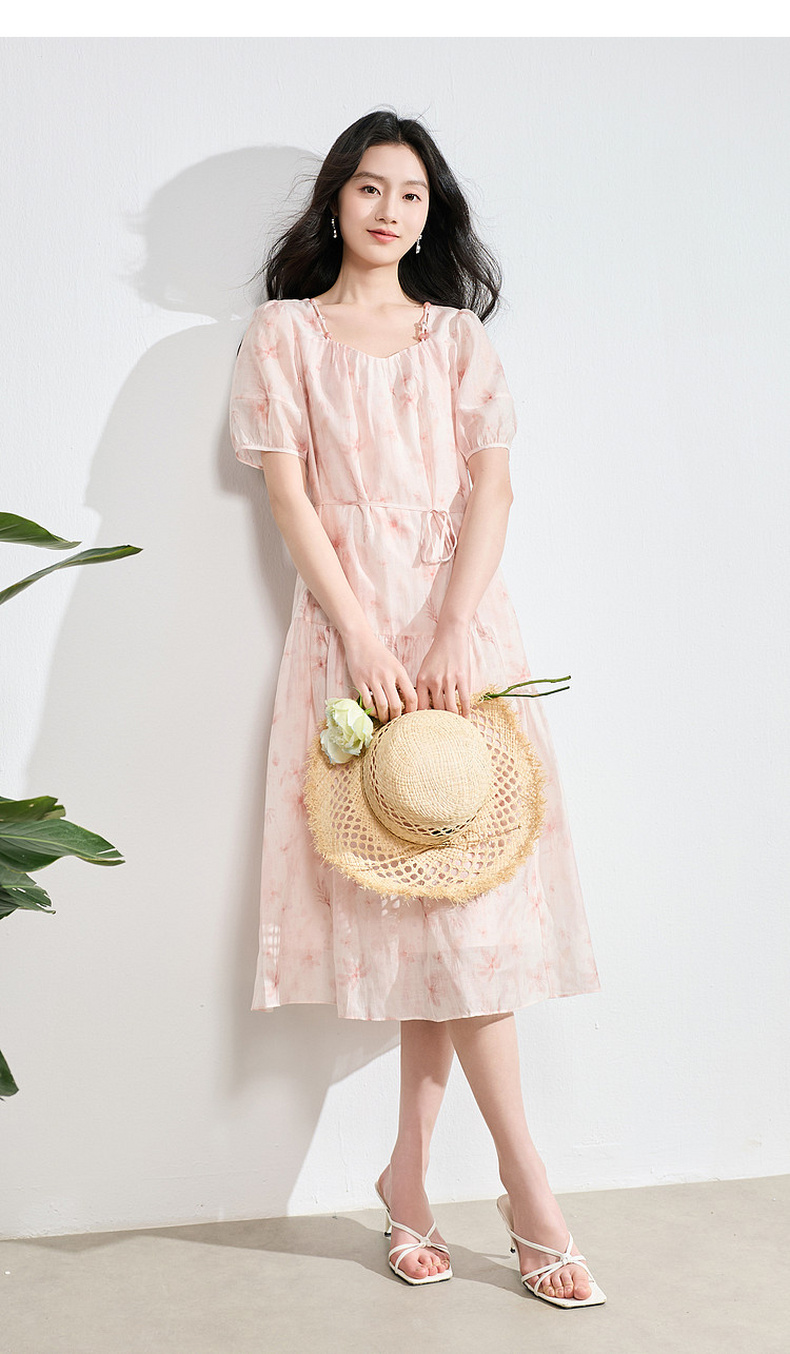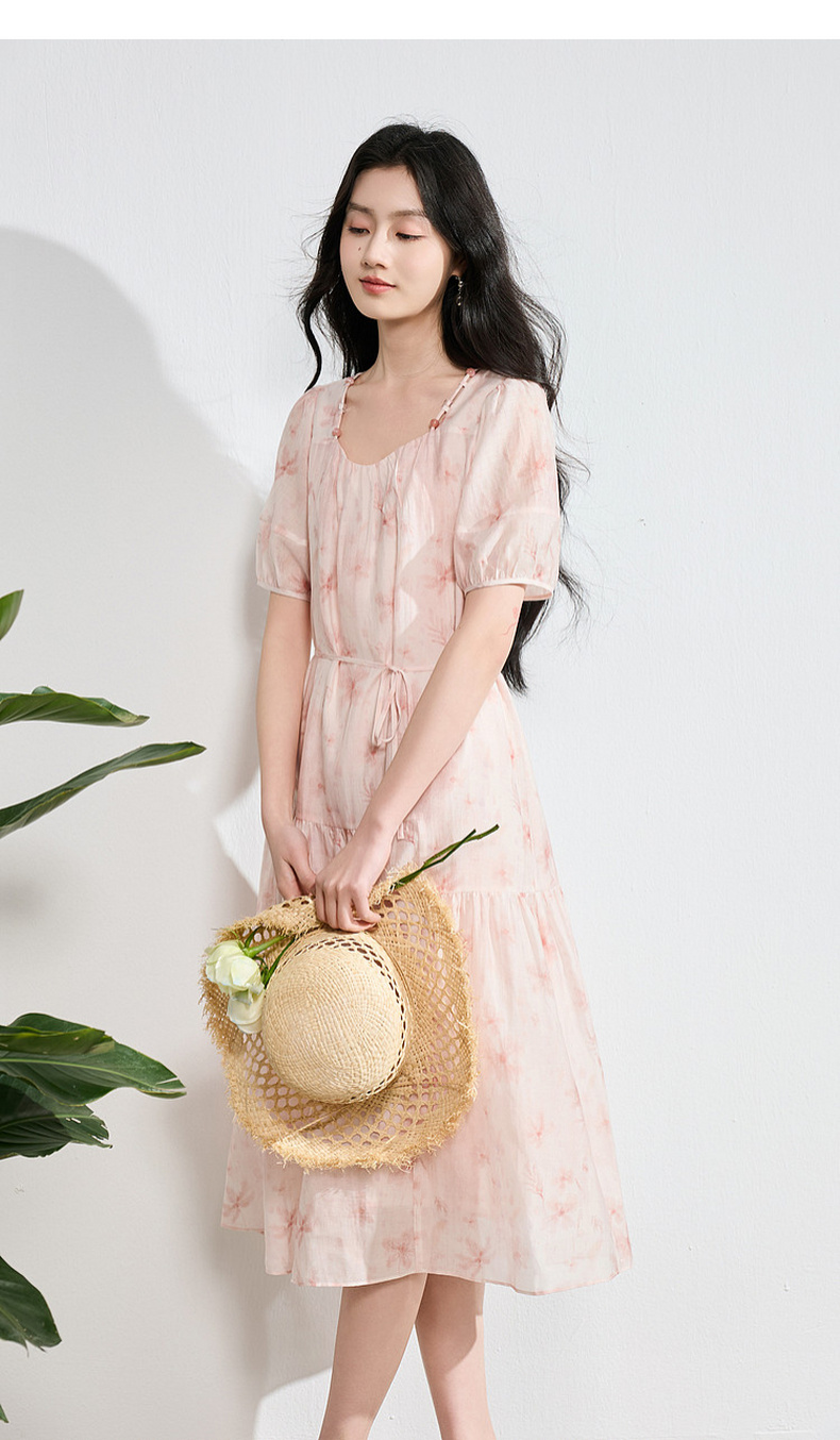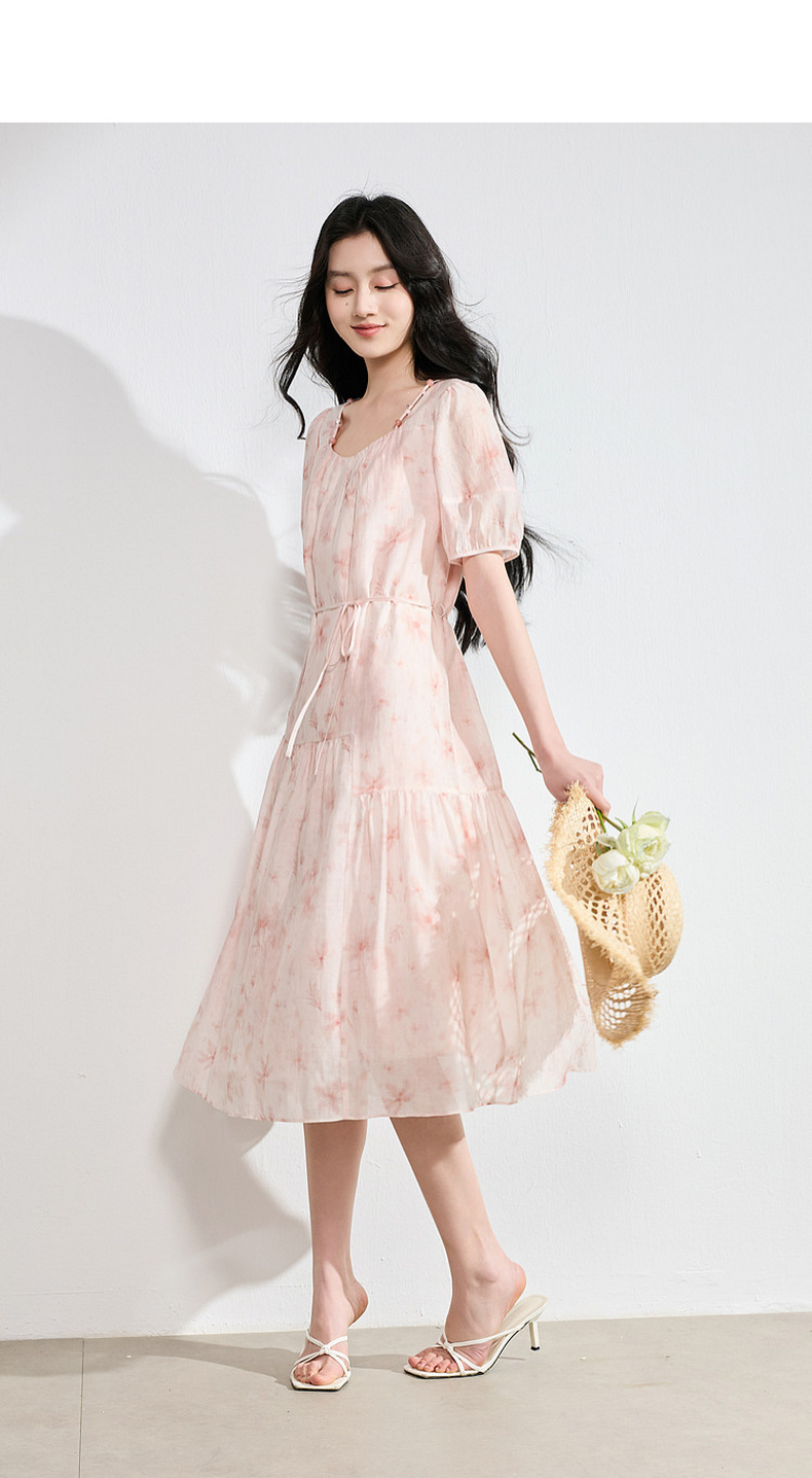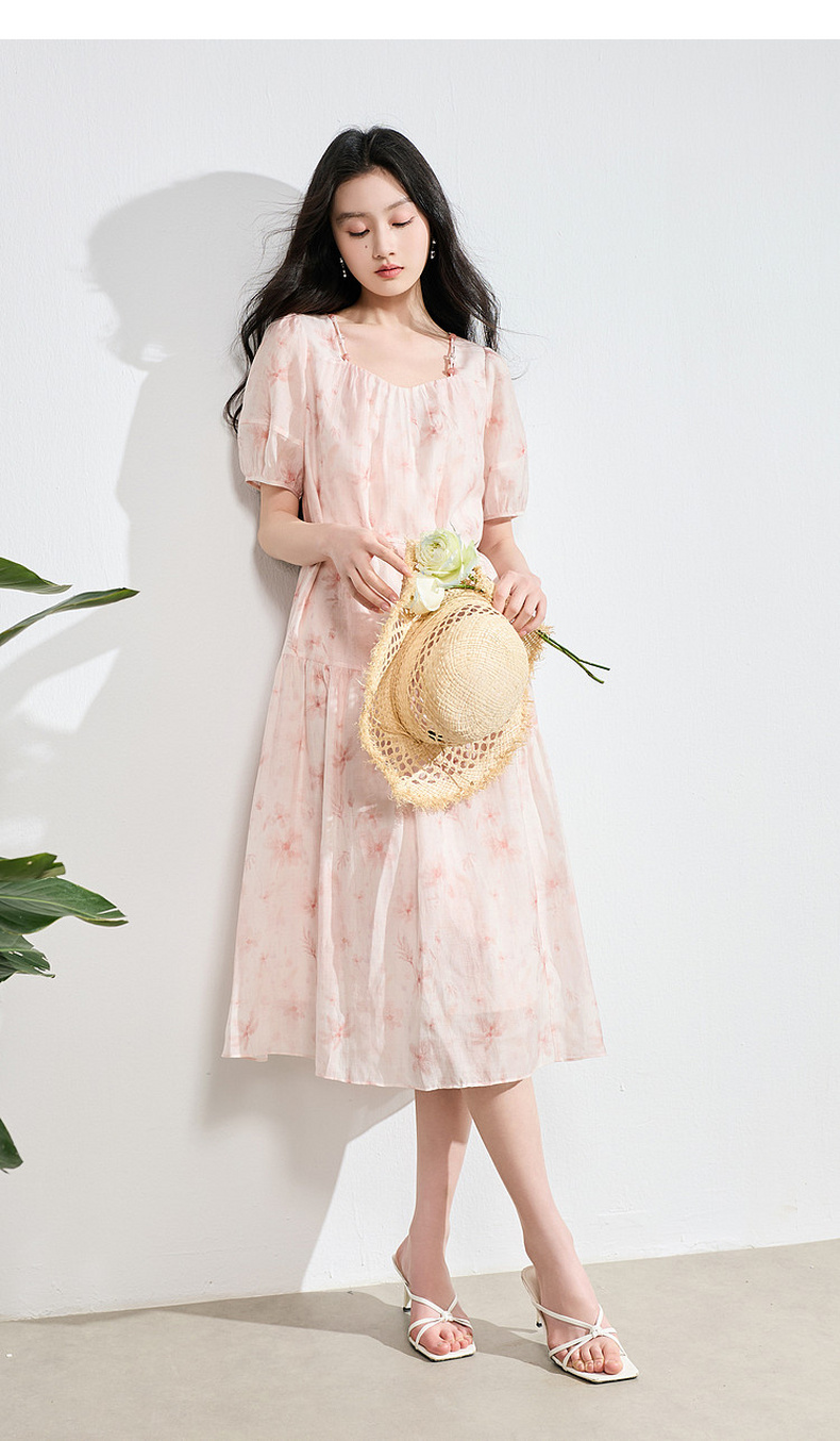 【莱赛尔】三彩2026夏季新款碎花连衣裙短袖A字裙中长S