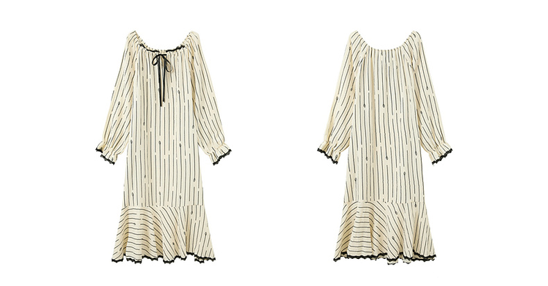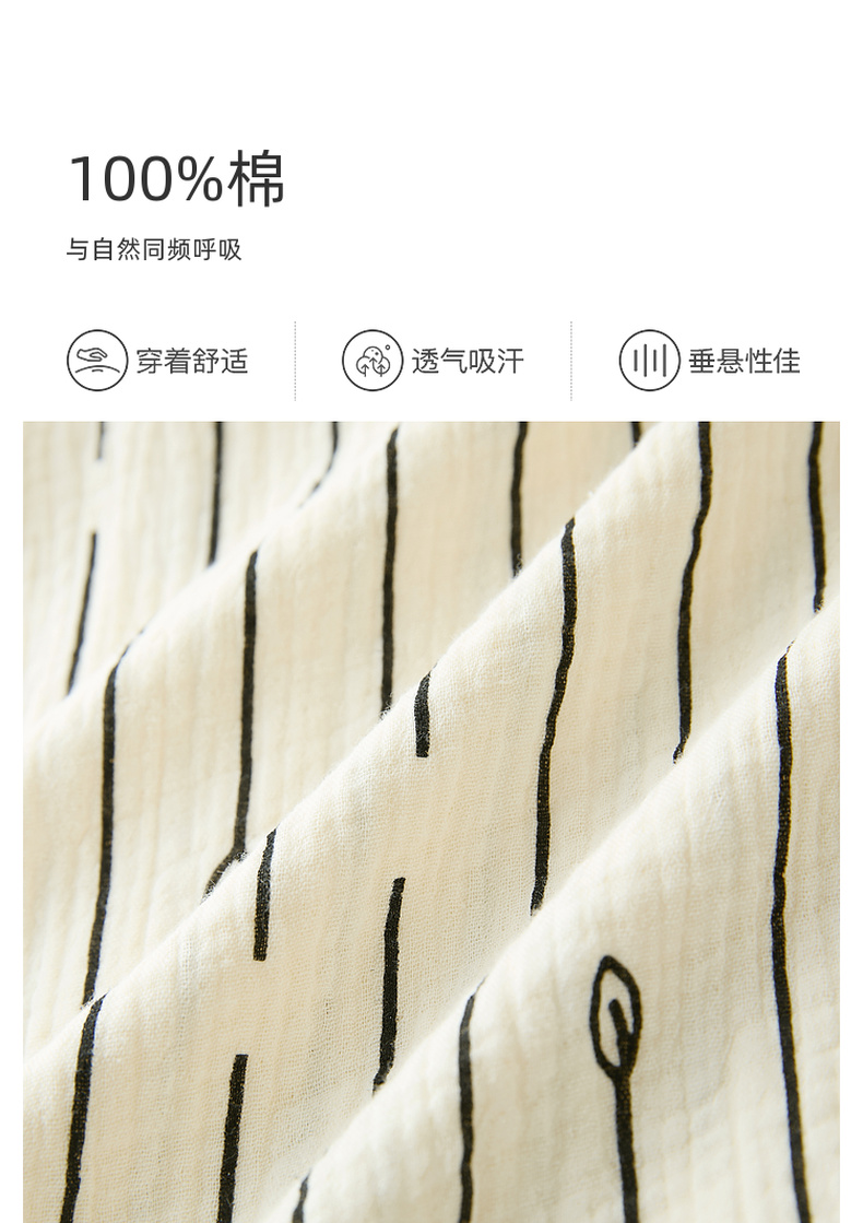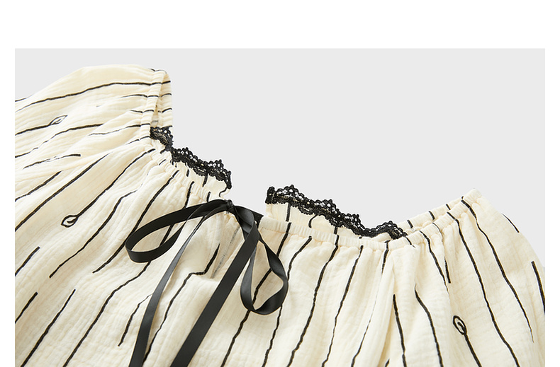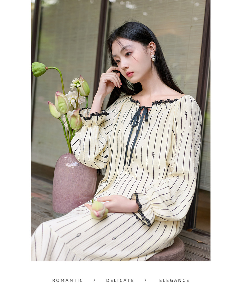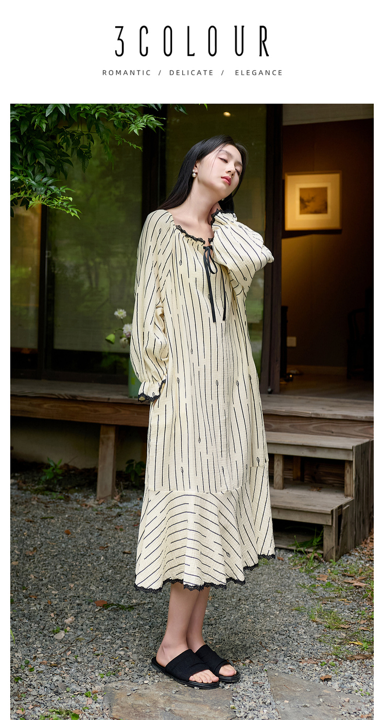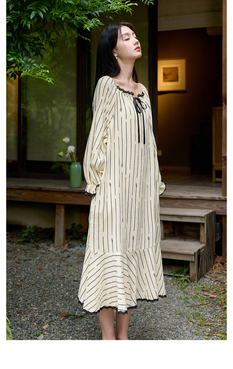 【100棉】三彩2025秋季新款家居服睡裙条纹方领长裙可外穿M