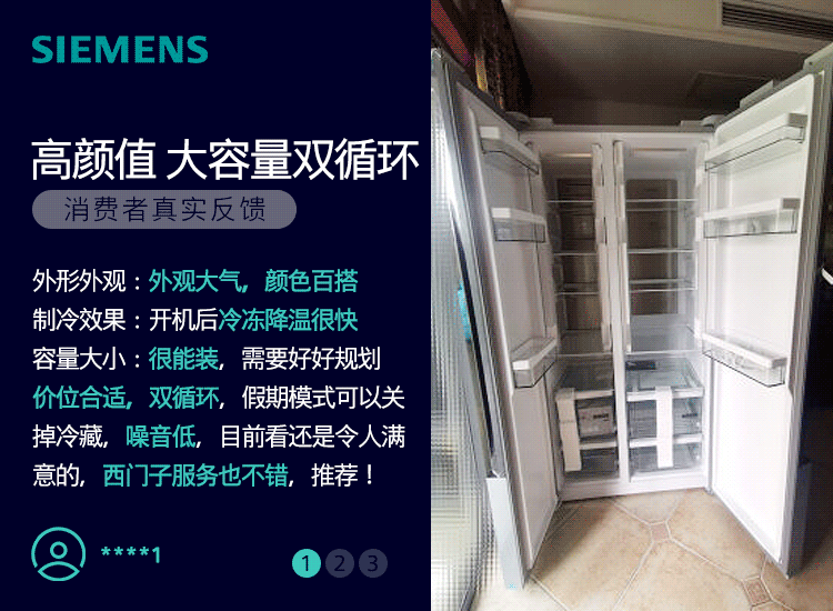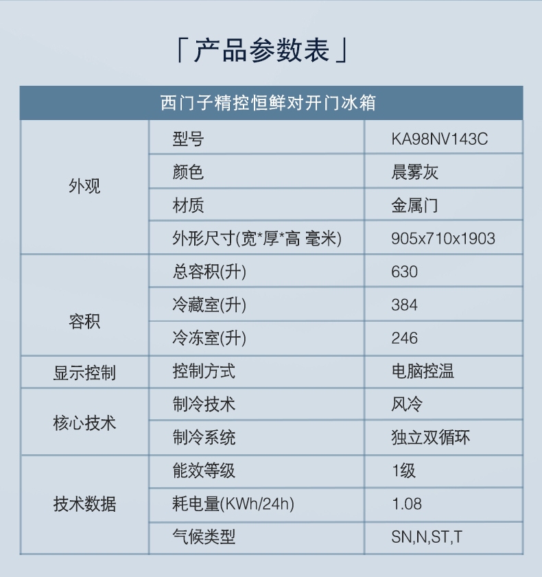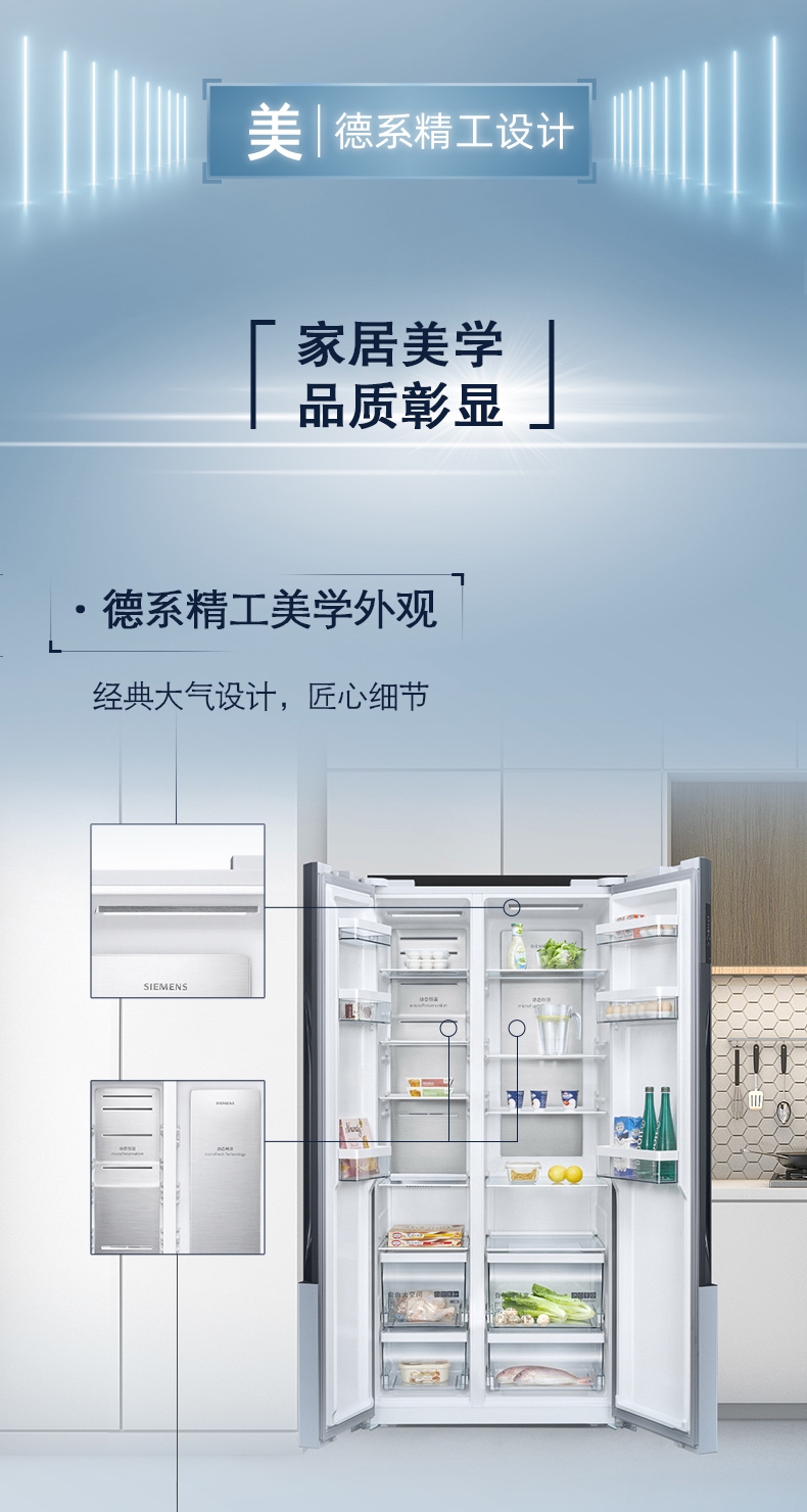 西门子(SIEMENS)630升家用大容量对开门变频恒鲜冰箱双开门 精准控温 风冷无霜 独立双循环 KA98NV143C