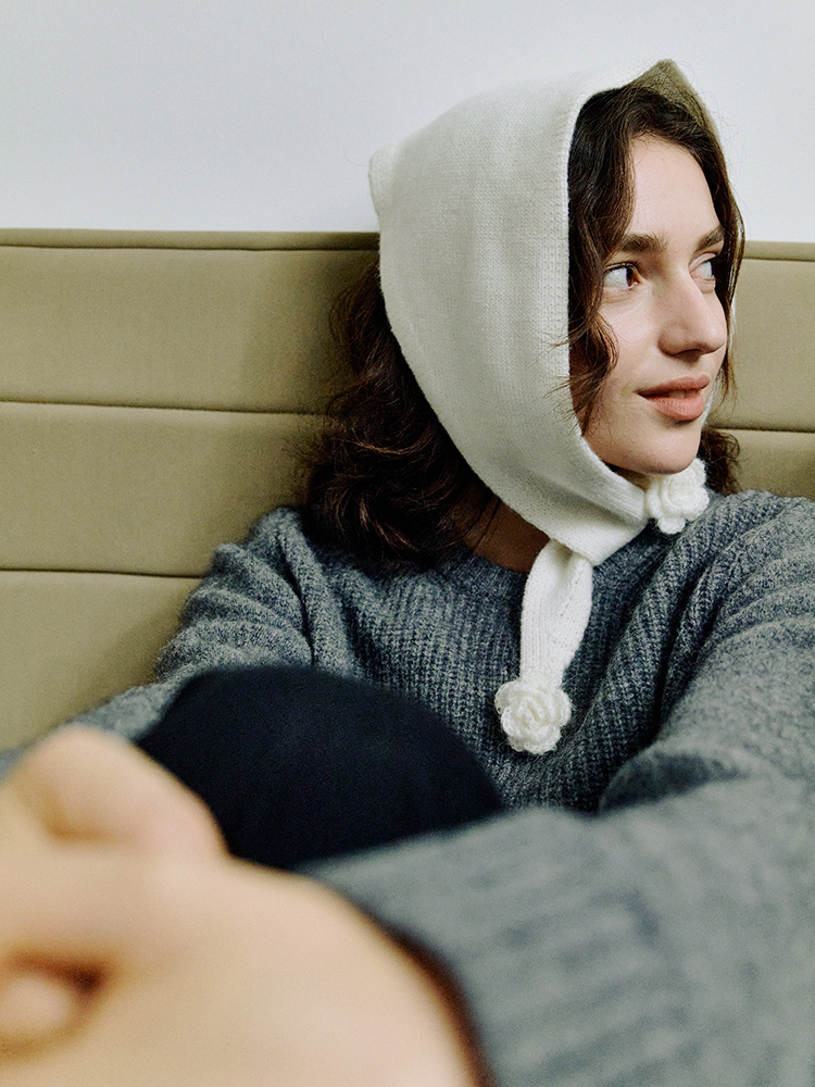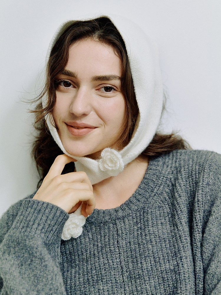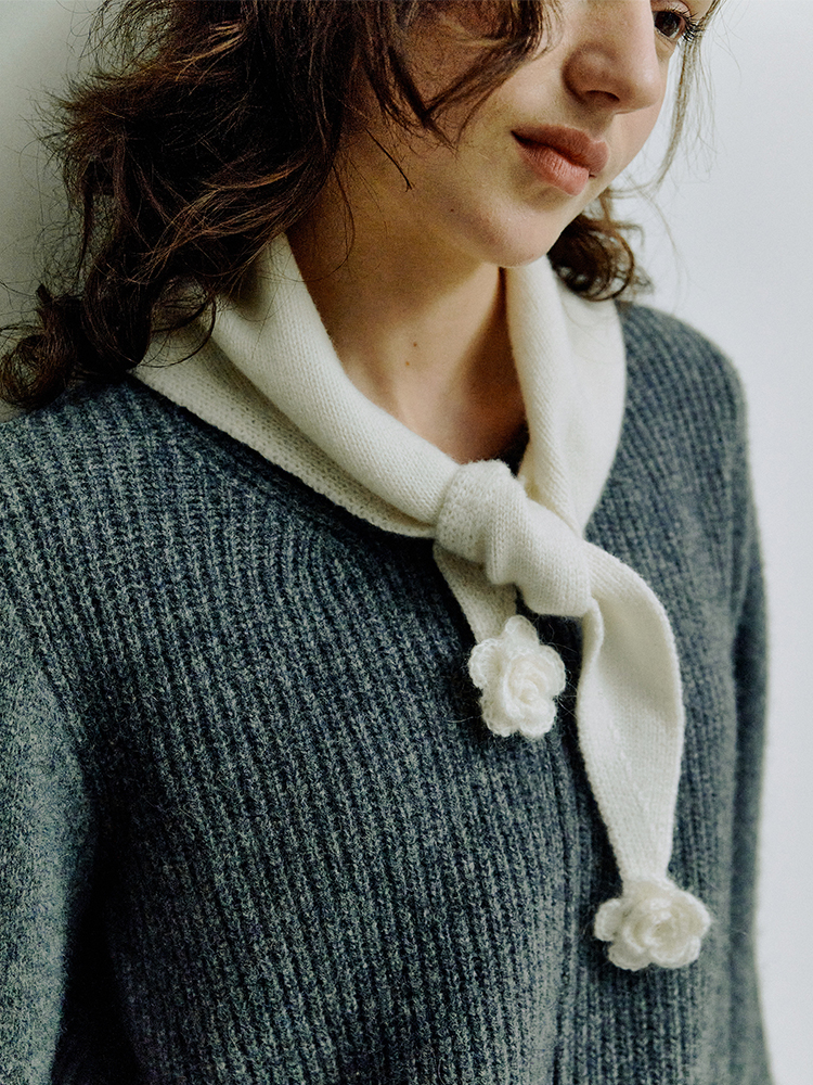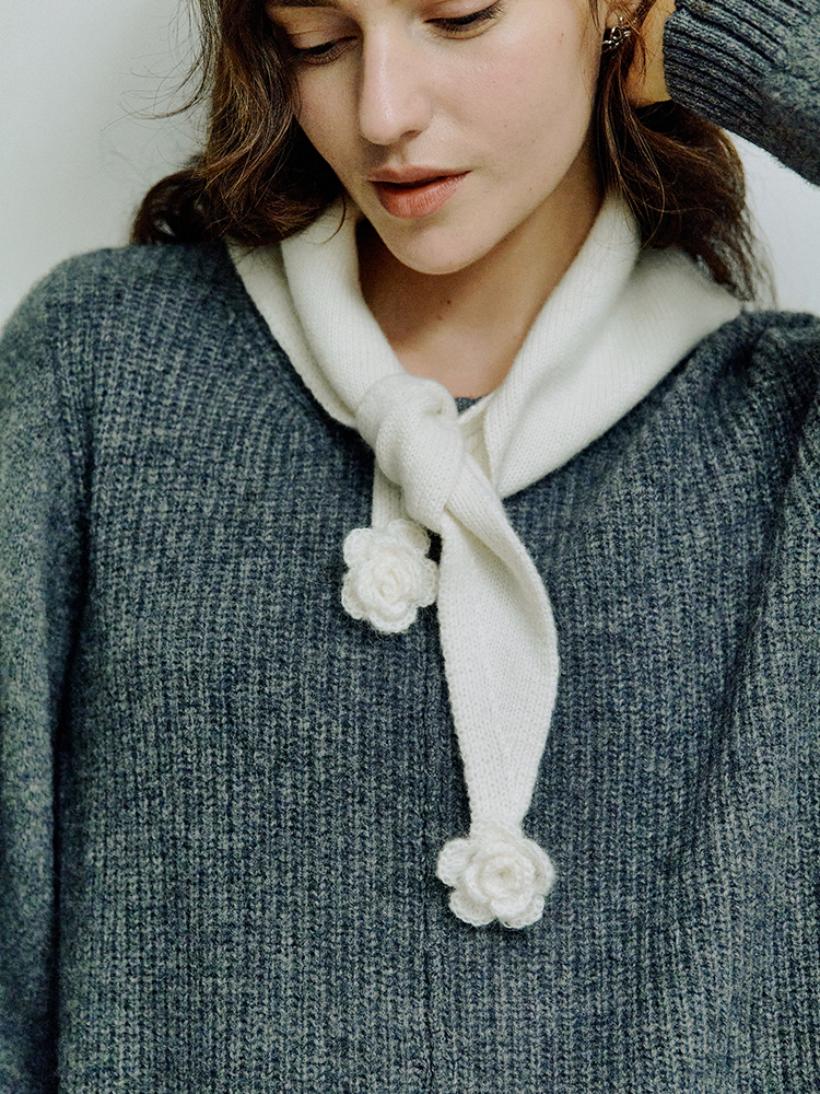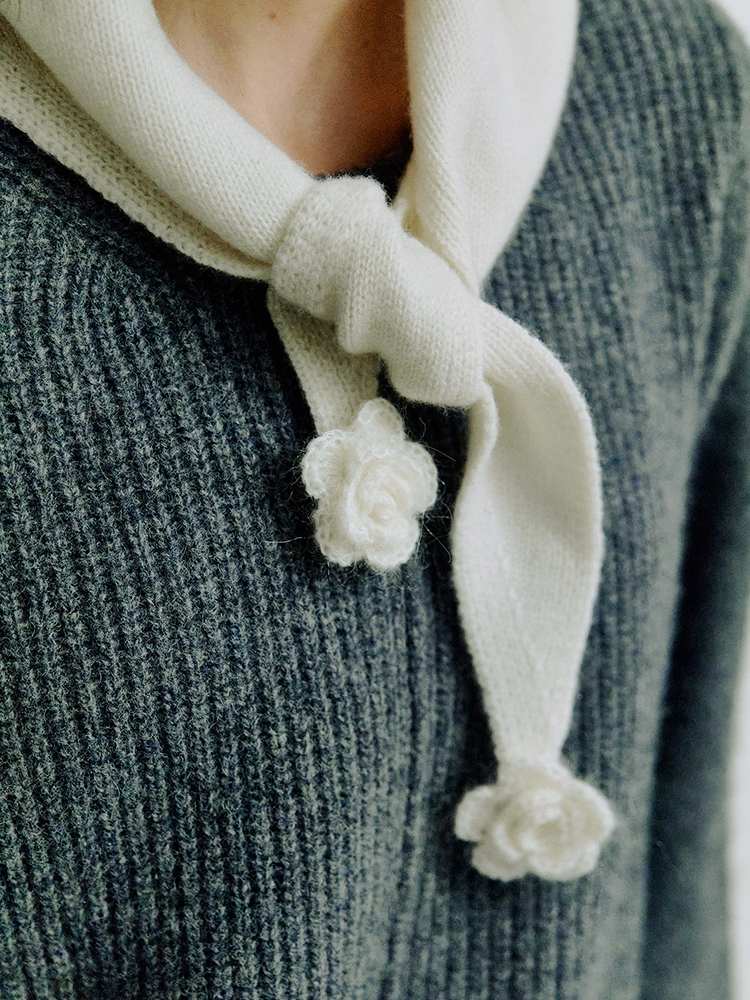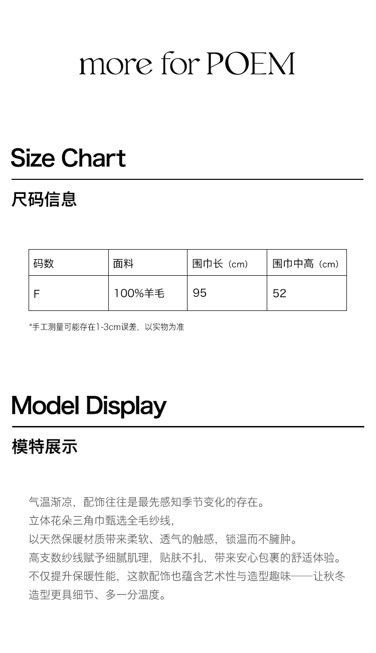 moreforPOEM 25/FW立体花朵三角巾围巾纯羊毛