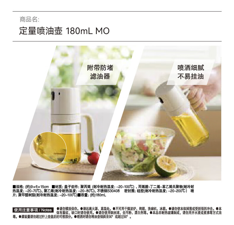 调料瓶厨房食用油喷油瓶定量控油喷油壶180mL