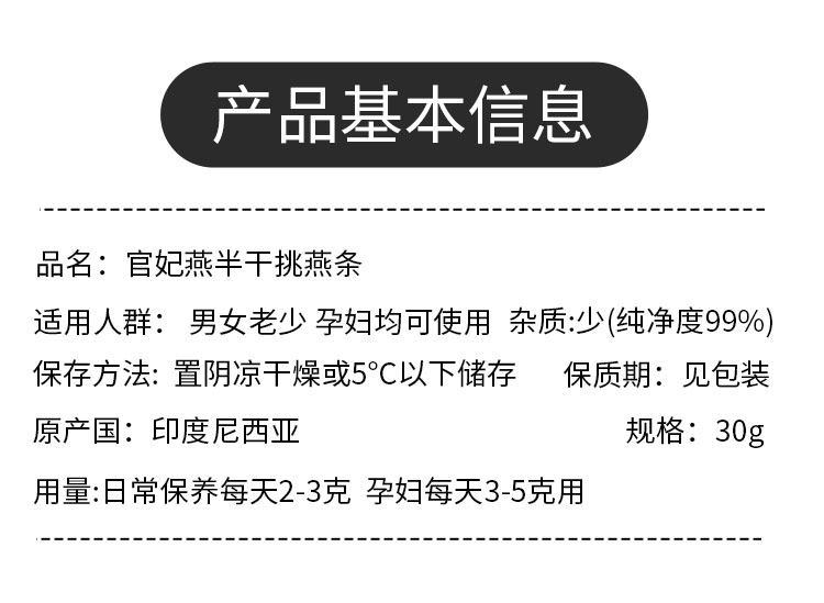 【优质半干挑燕条30克】印尼/马来 原装进口雨期营养翻季头倍“底座干净、低燕角、无漂白”“高净争分享度、高干度、高泡发”官方溯源!!30分钟速炖