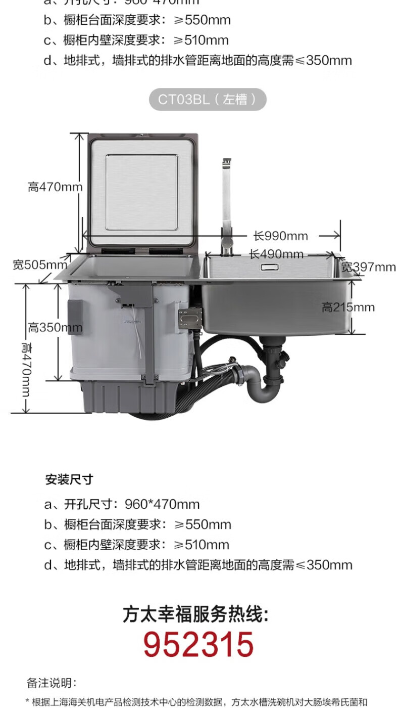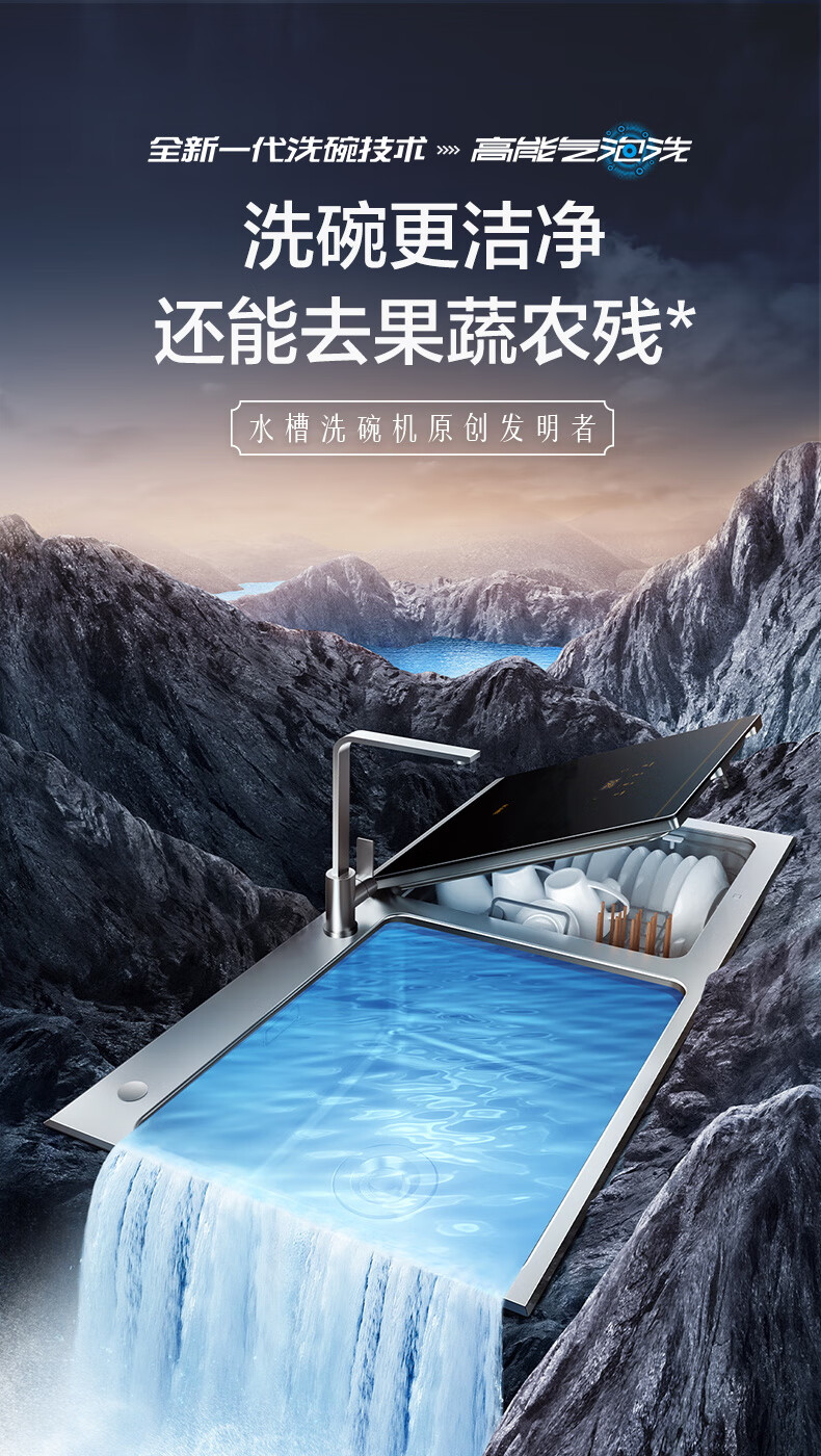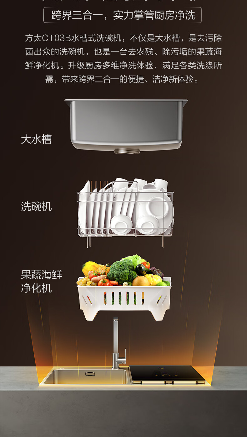 FOTILE方太水槽洗碗机家用 高能气泡洗 升级41升大容量水槽 跨界三合一 加强除菌 洗海鲜果蔬去农残CT03B 下单备注洗碗机位置