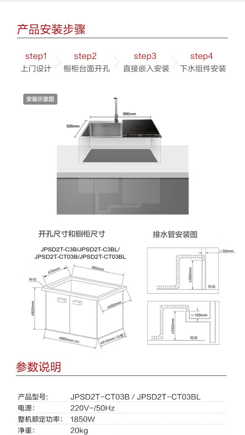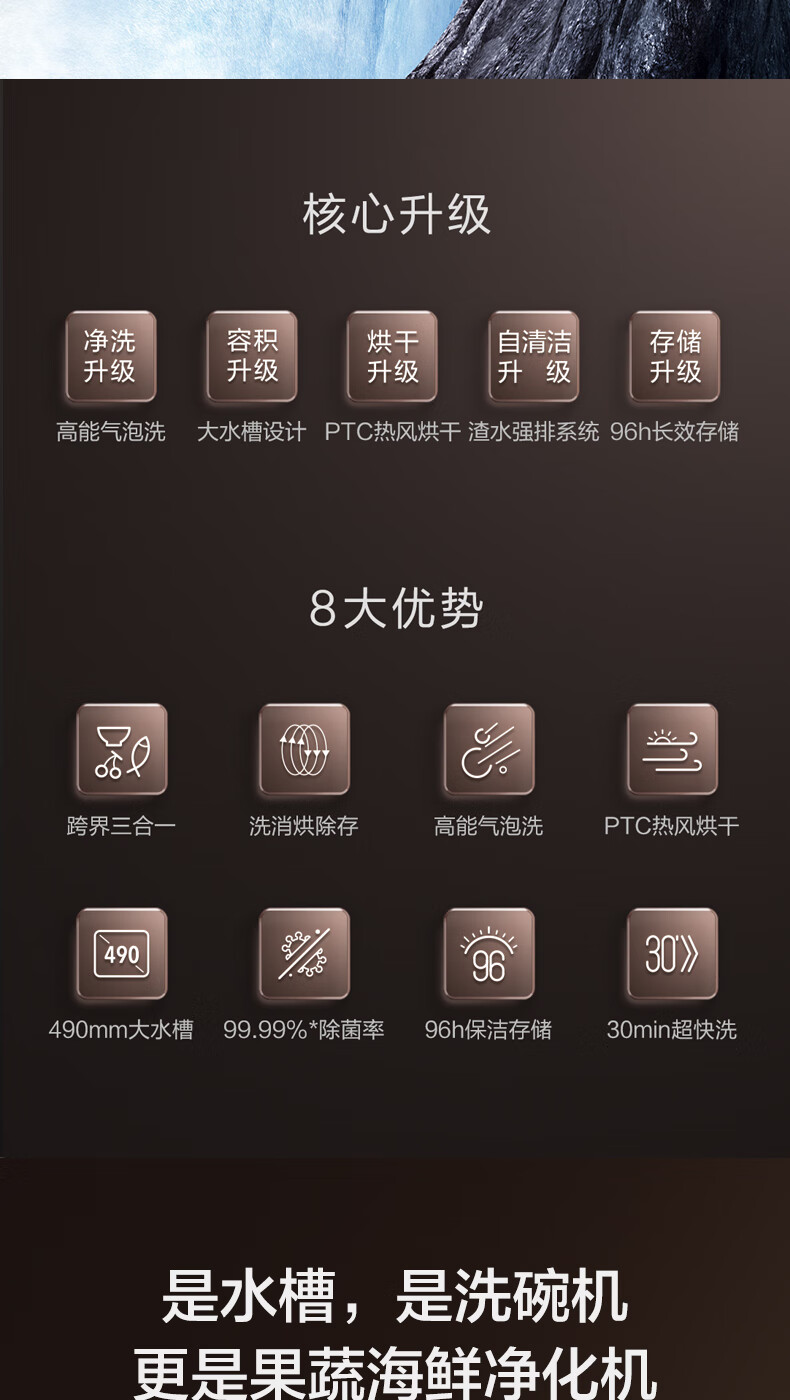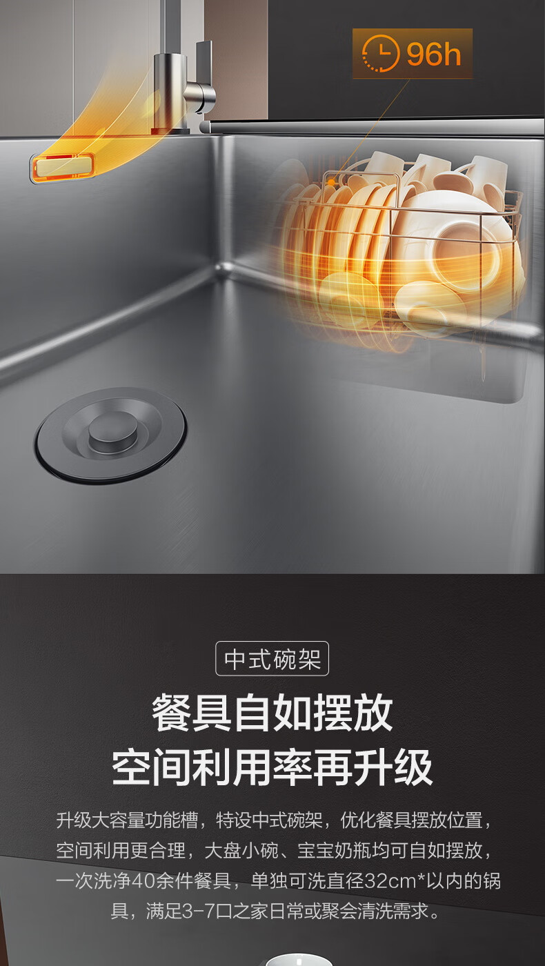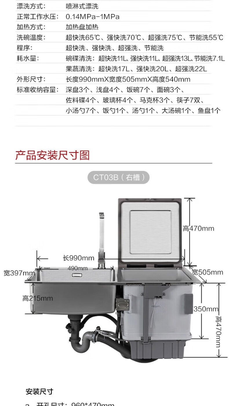 FOTILE方太水槽洗碗机家用 高能气泡洗 升级41升大容量水槽 跨界三合一 加强除菌 洗海鲜果蔬去农残CT03B 下单备注洗碗机位置