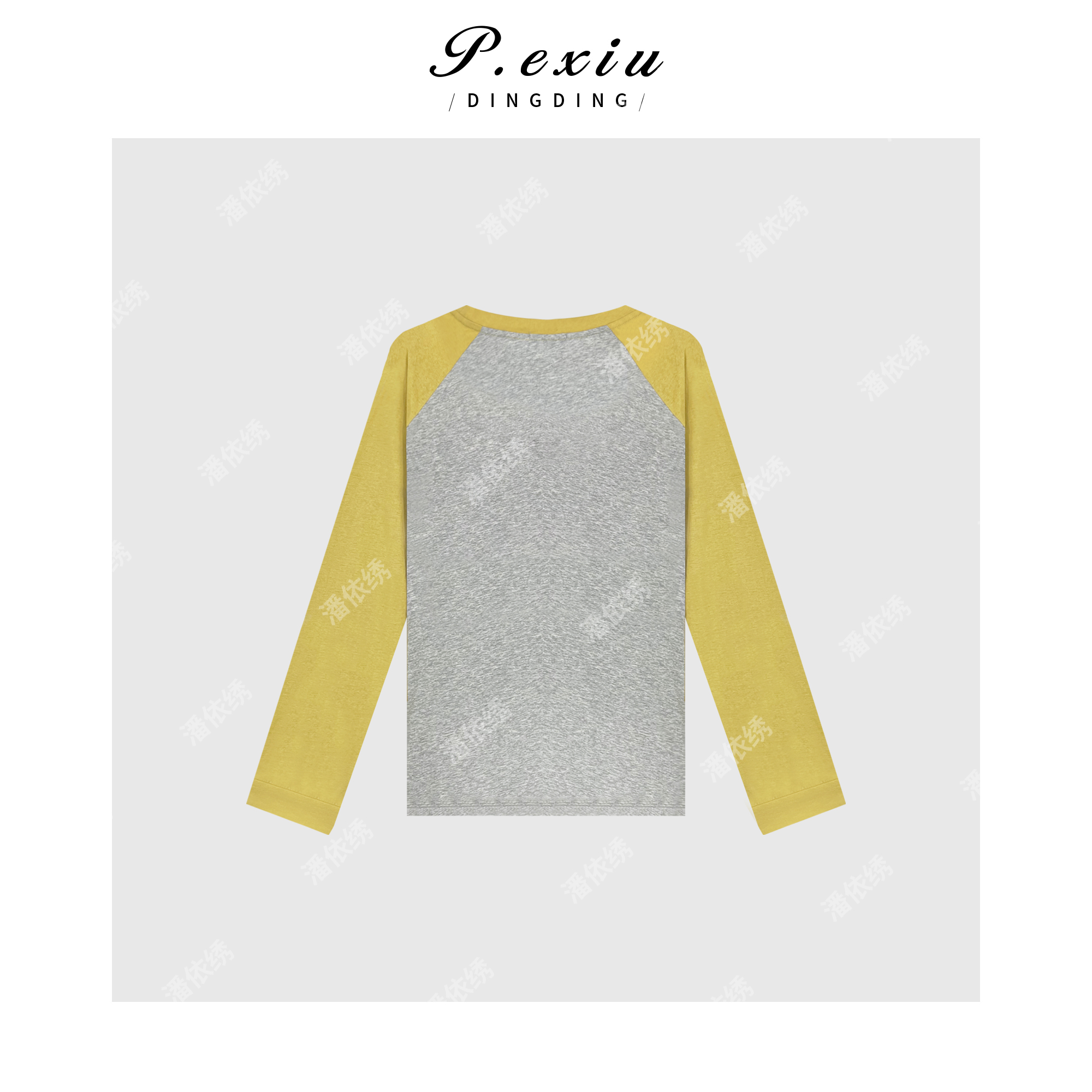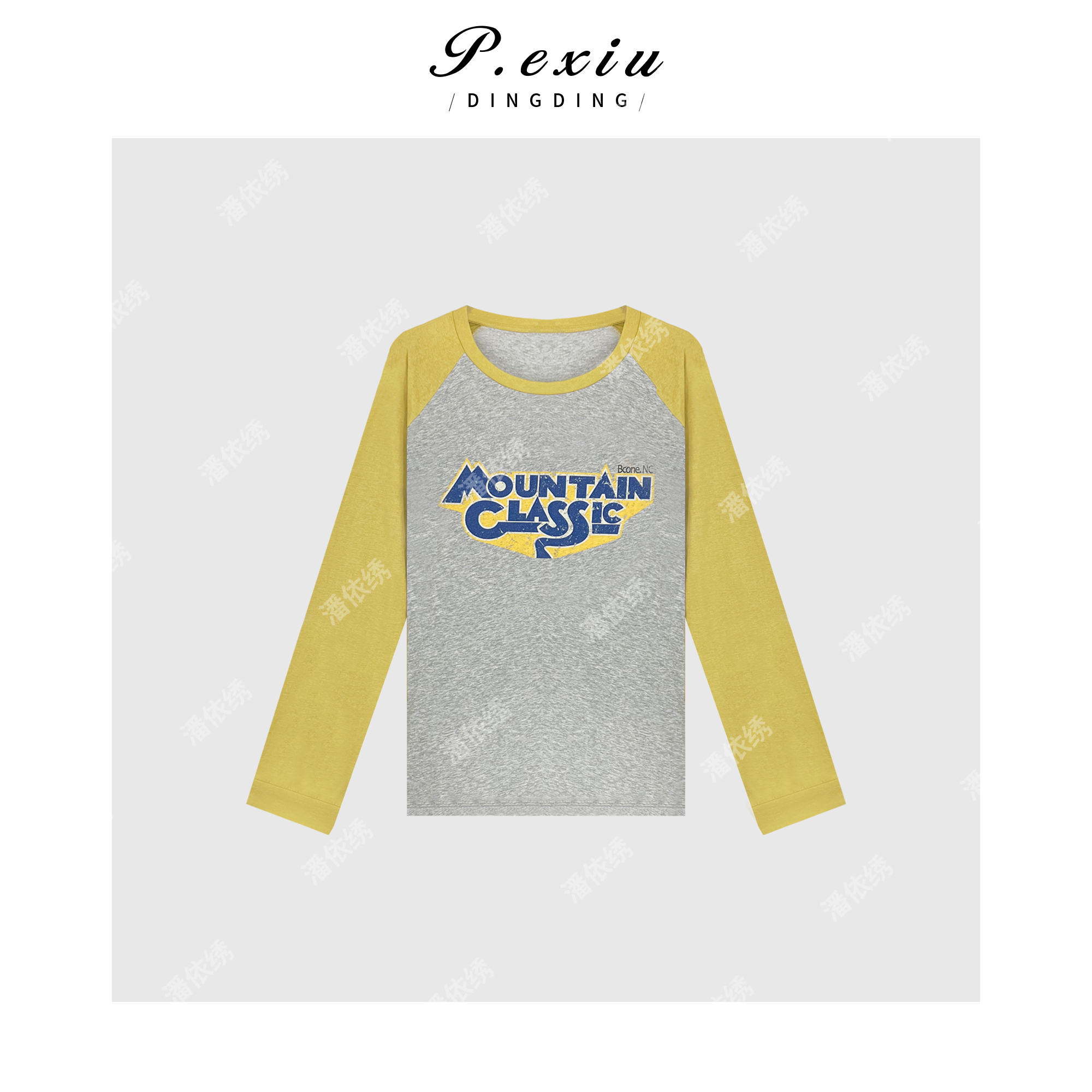 03-2潘依绣丁丁宠粉PanYiXiu/潘依绣【香蕉奶油】美式插肩袖撞色印花长袖T恤 WH00206