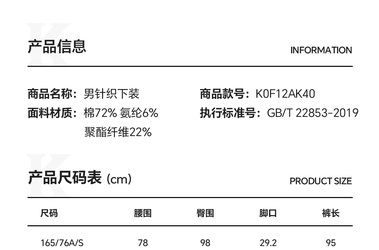 Kappa卡帕背靠背新款运动长裤男款跑步裤直筒休闲裤复古针织裤子K0F12AK40